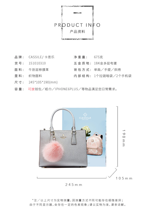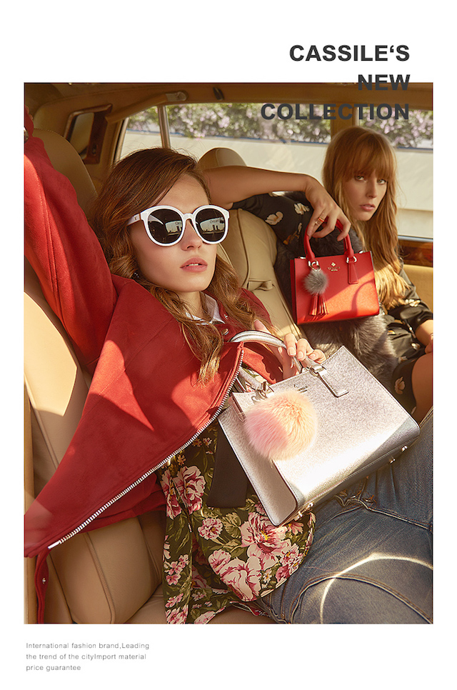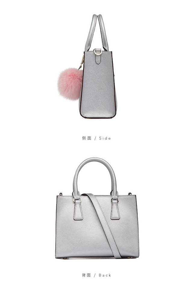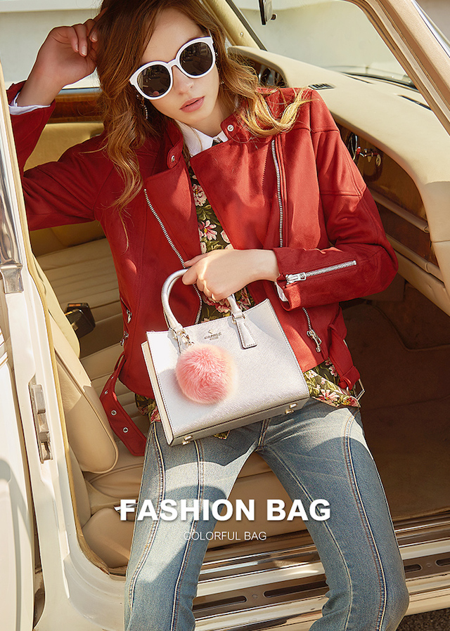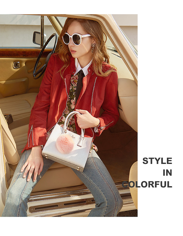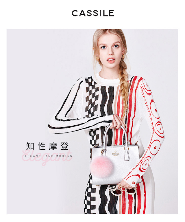 Cassile (cassile) European and American bag cross pattern cowhide fur ball intellectual handbag T171010102B6 orange red