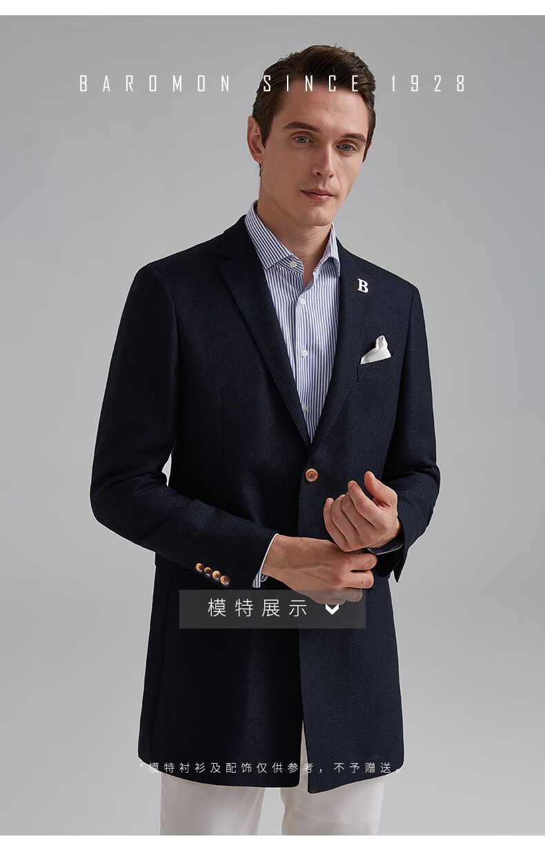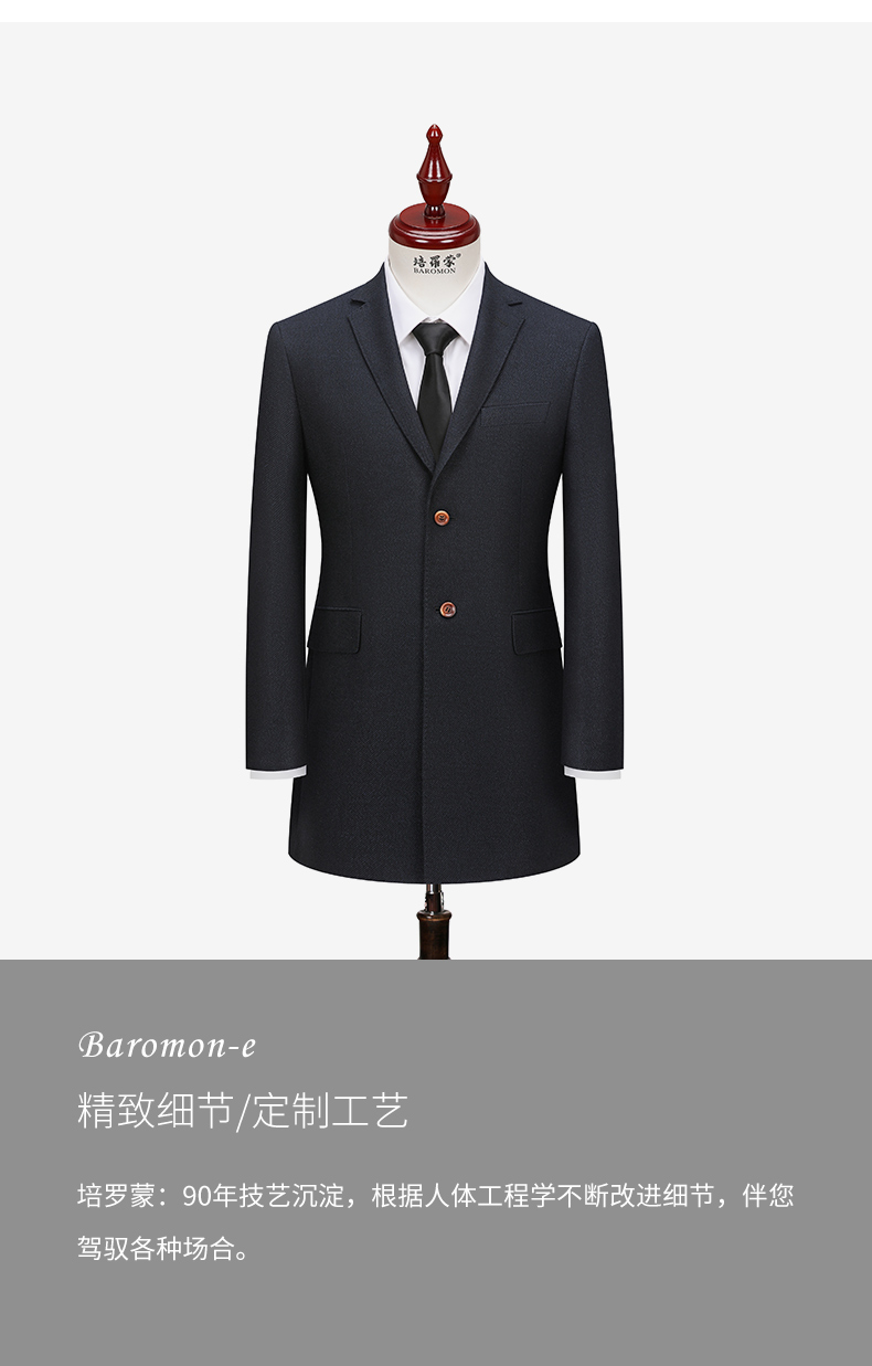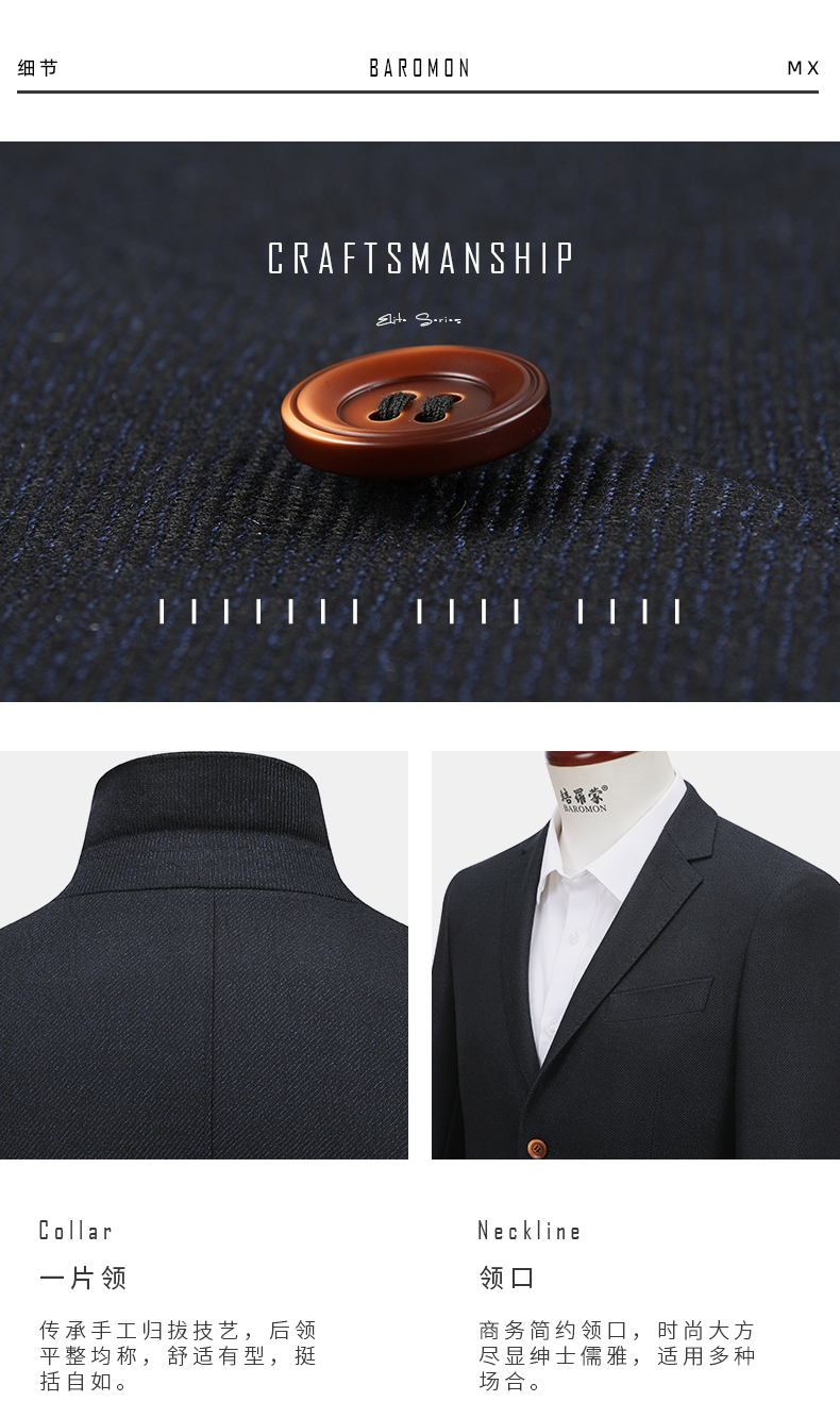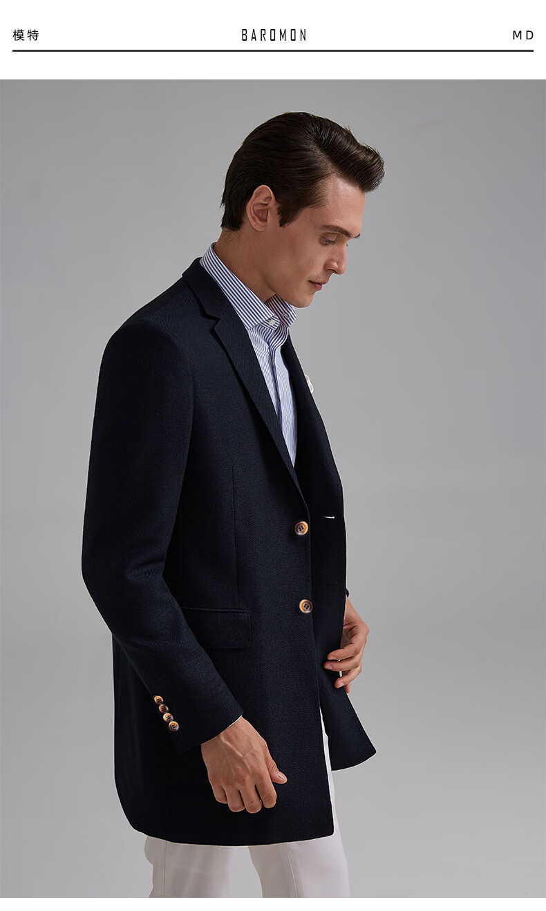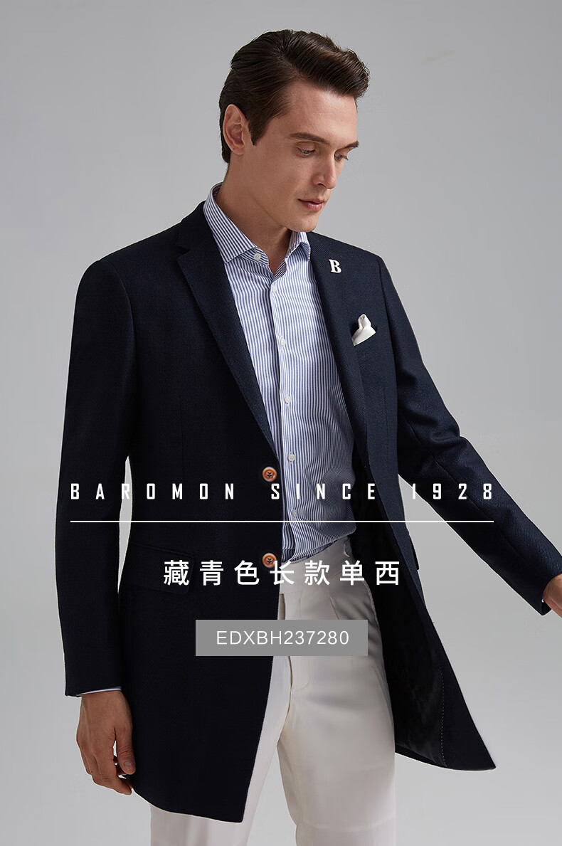 BAROMON anti-wrinkle and iron-free suit men's business casual men's single suit British style long formal jacket for work interview navy blue 180A