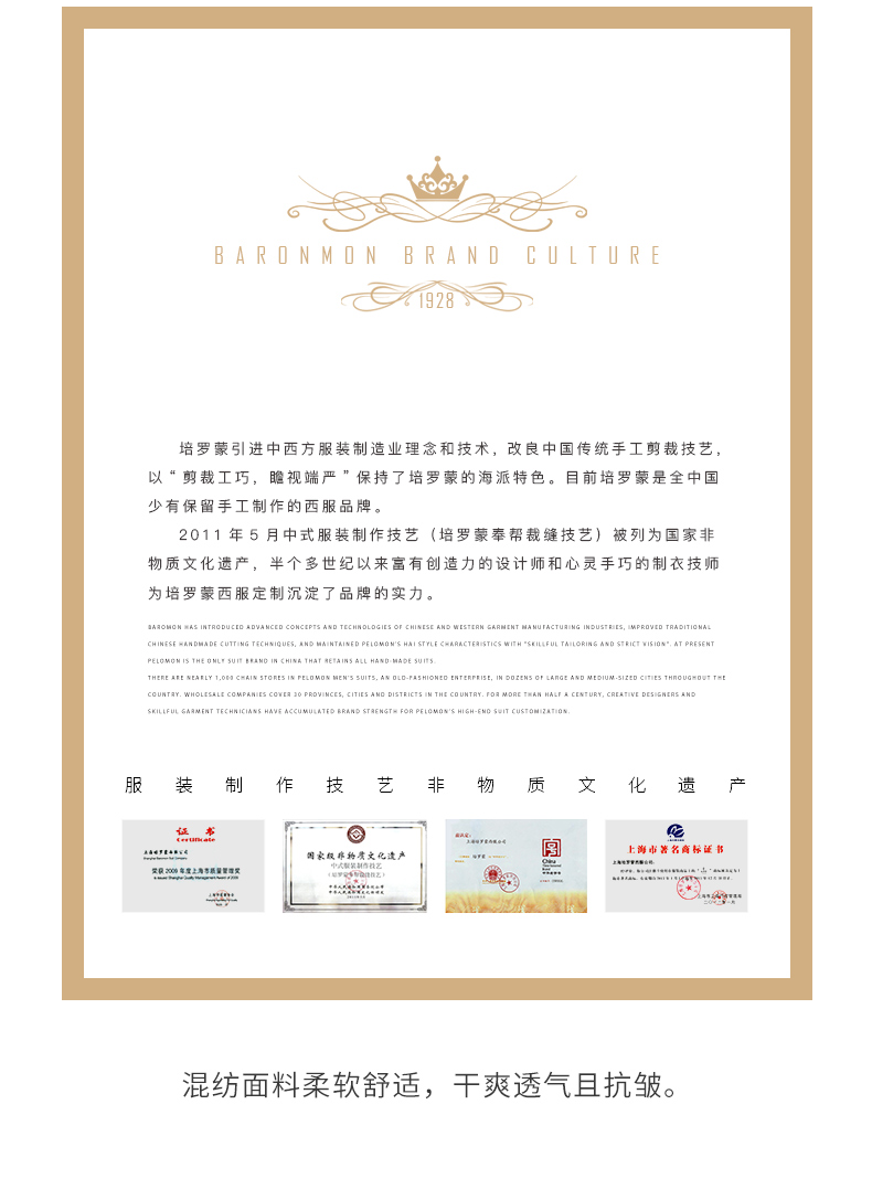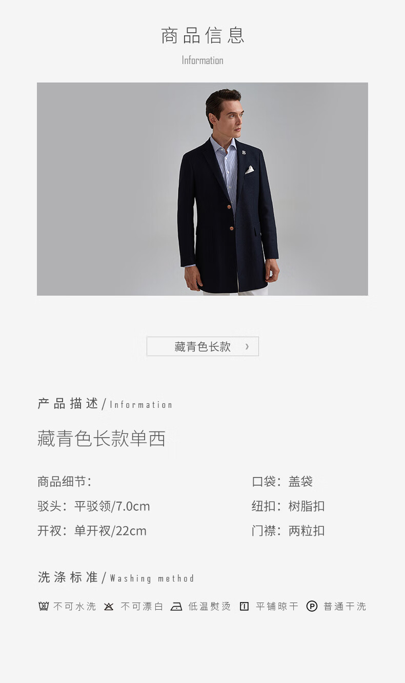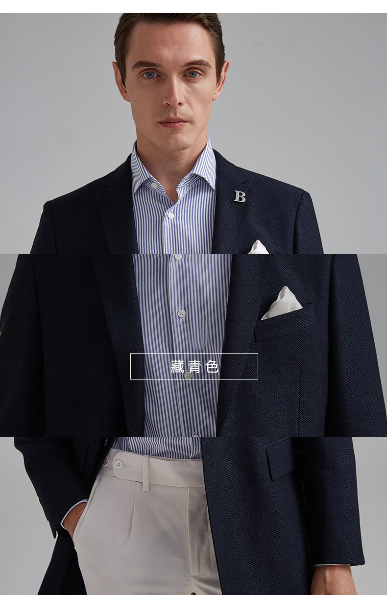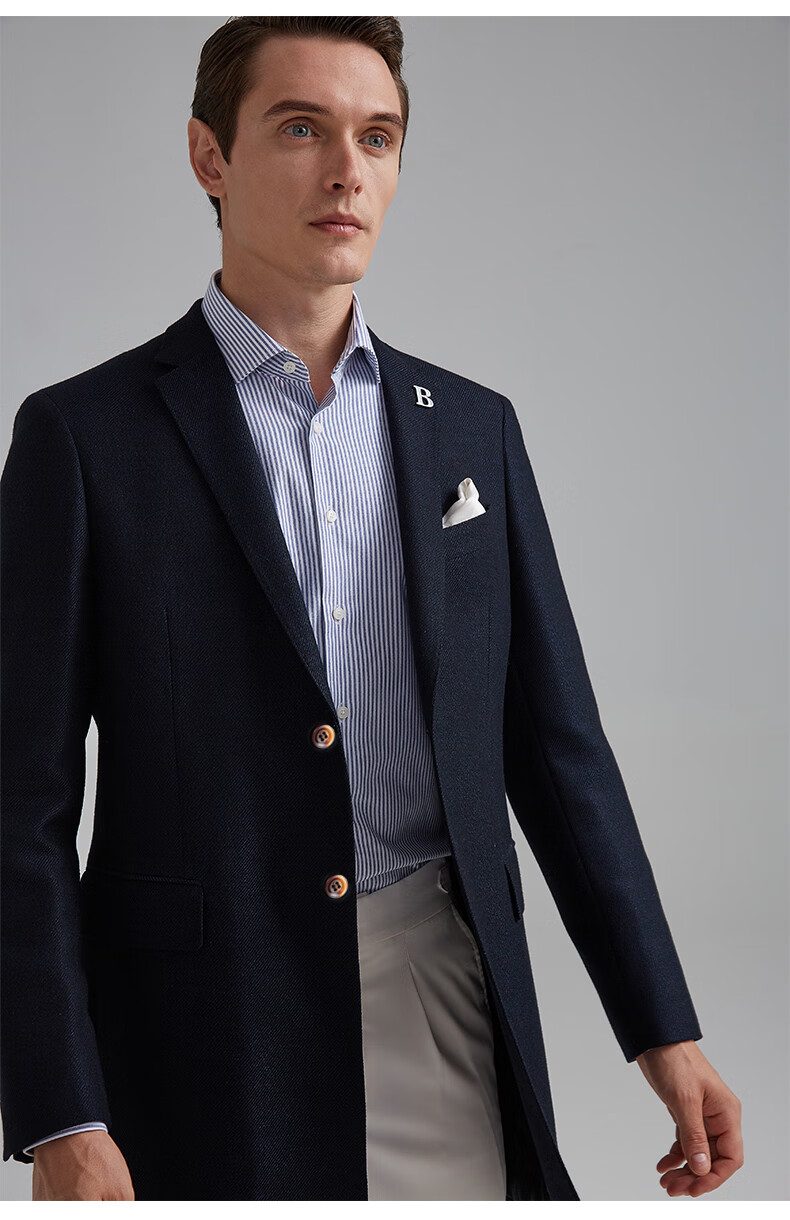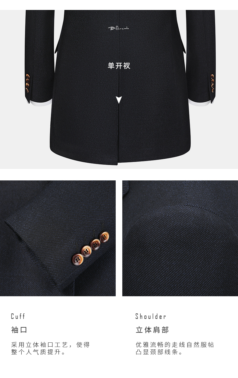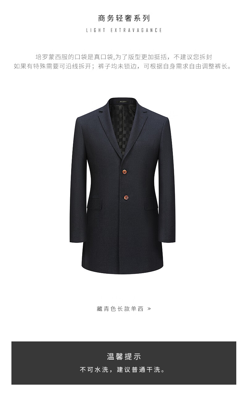 BAROMON anti-wrinkle and iron-free suit men's business casual men's single suit British style long formal jacket for work interview navy blue 180A