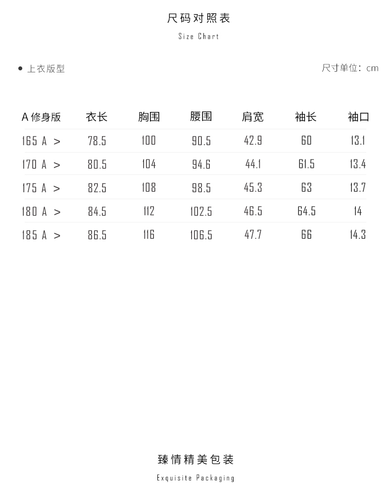 China (cm) 160-165/84-86 165-170 / 88-90 167-172 / 92-96 168-173 / 98-102 170-176 / 106-110