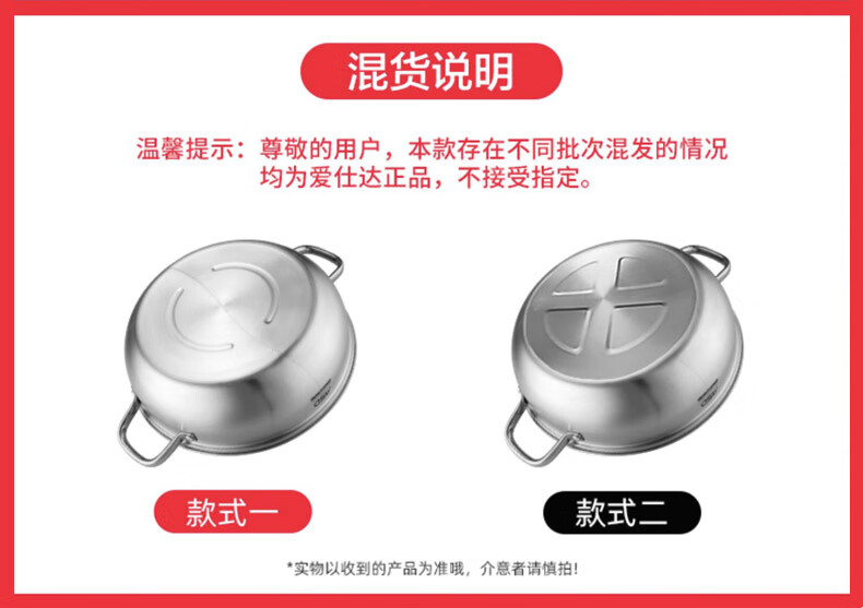 爱仕达(ASD) 火锅304不锈钢火锅家用厨房汤锅涮锅一锅多用燃气明火电磁炉通用 旋风复底鸳鸯火锅 30cm