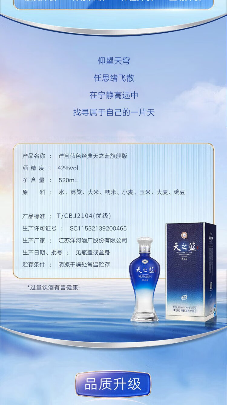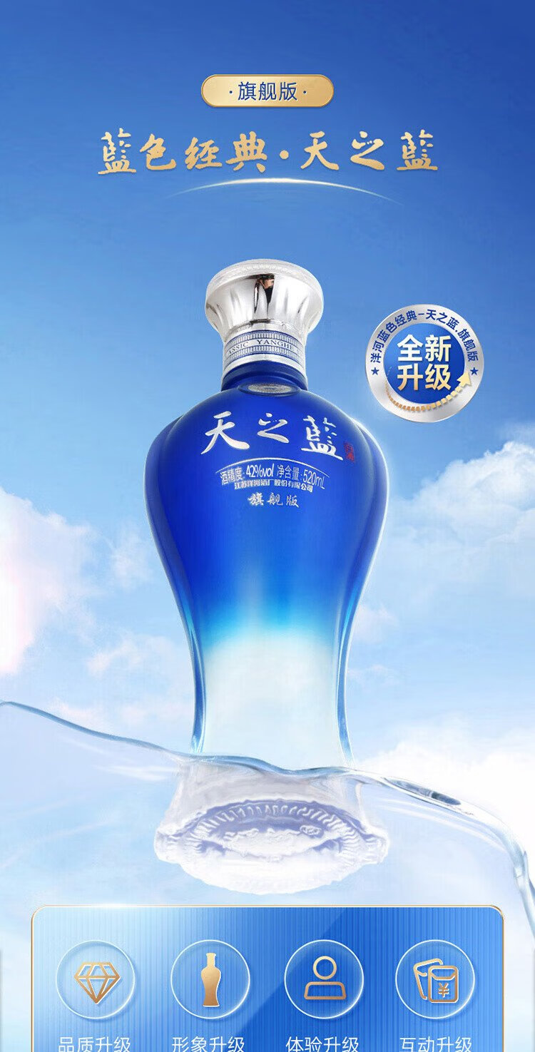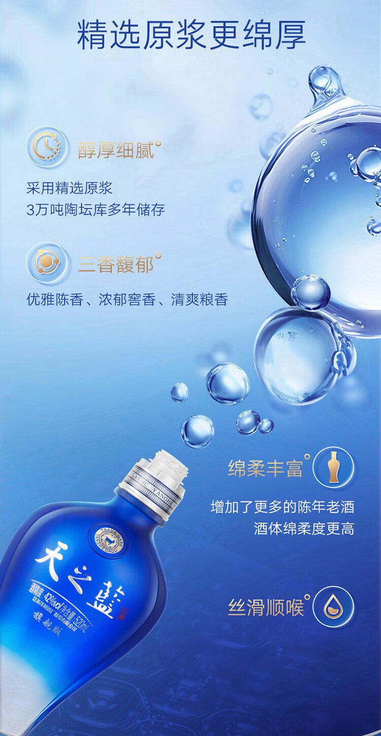 Yanghe Blue Classic Sky Blue 42 degrees 520ml Single Bottle Soft and Strong Flavored White Wine