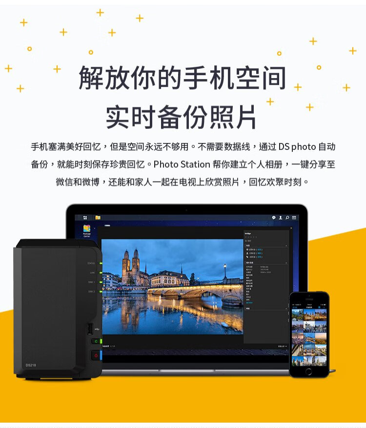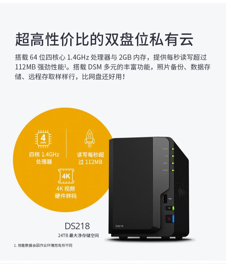 Synology DS218 2-bay quad-core NAS network storage server (no built-in hard drive)