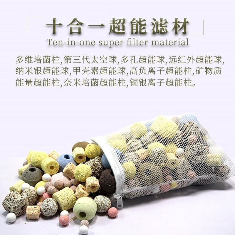 Fish tank filter material 10-in-1 mixed filter material complete set of activated carbon ceramic ring bacterial house culture bacteria water purification 10-in-1 filter material [5Jin[Jin equals 0.5kg]] comes with mesh bag