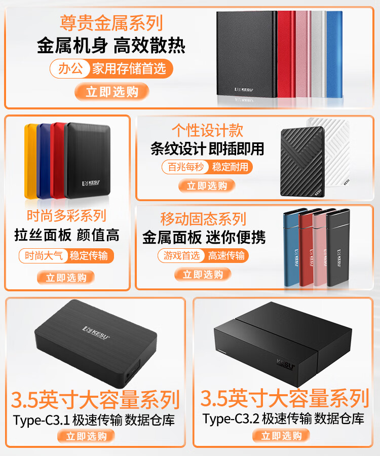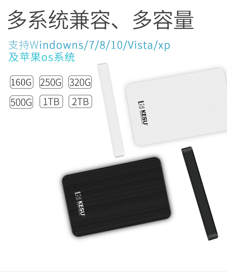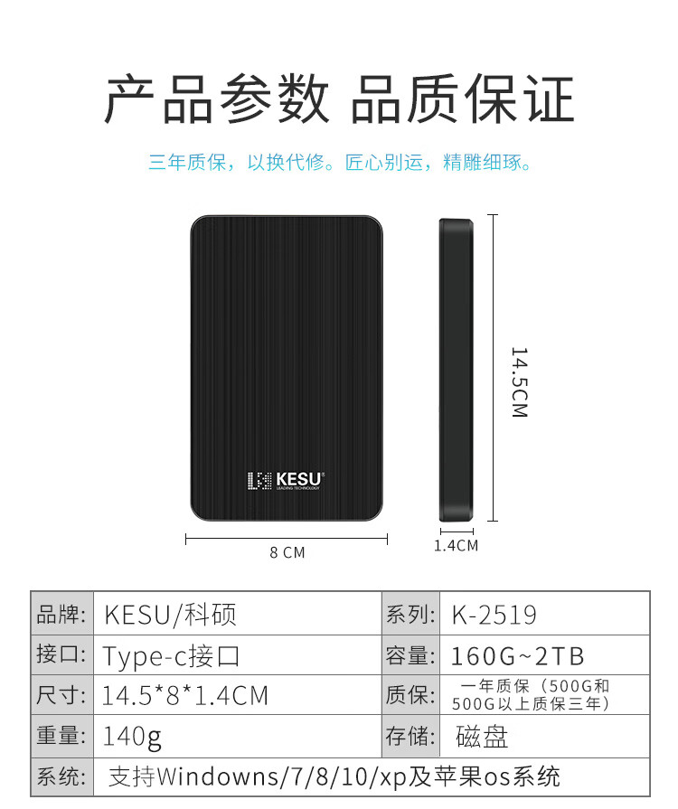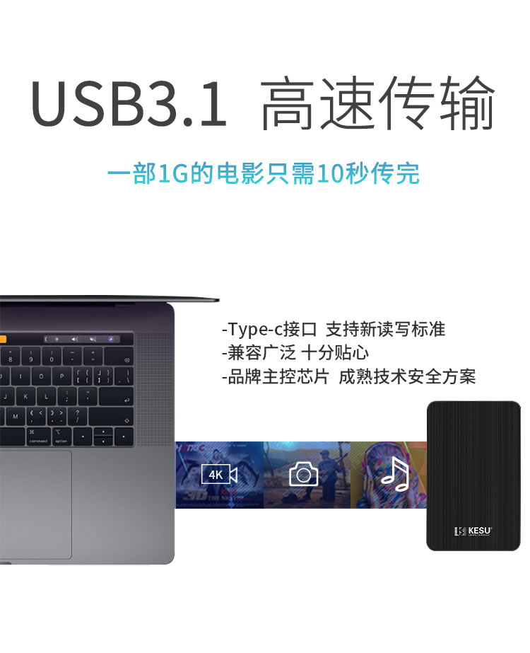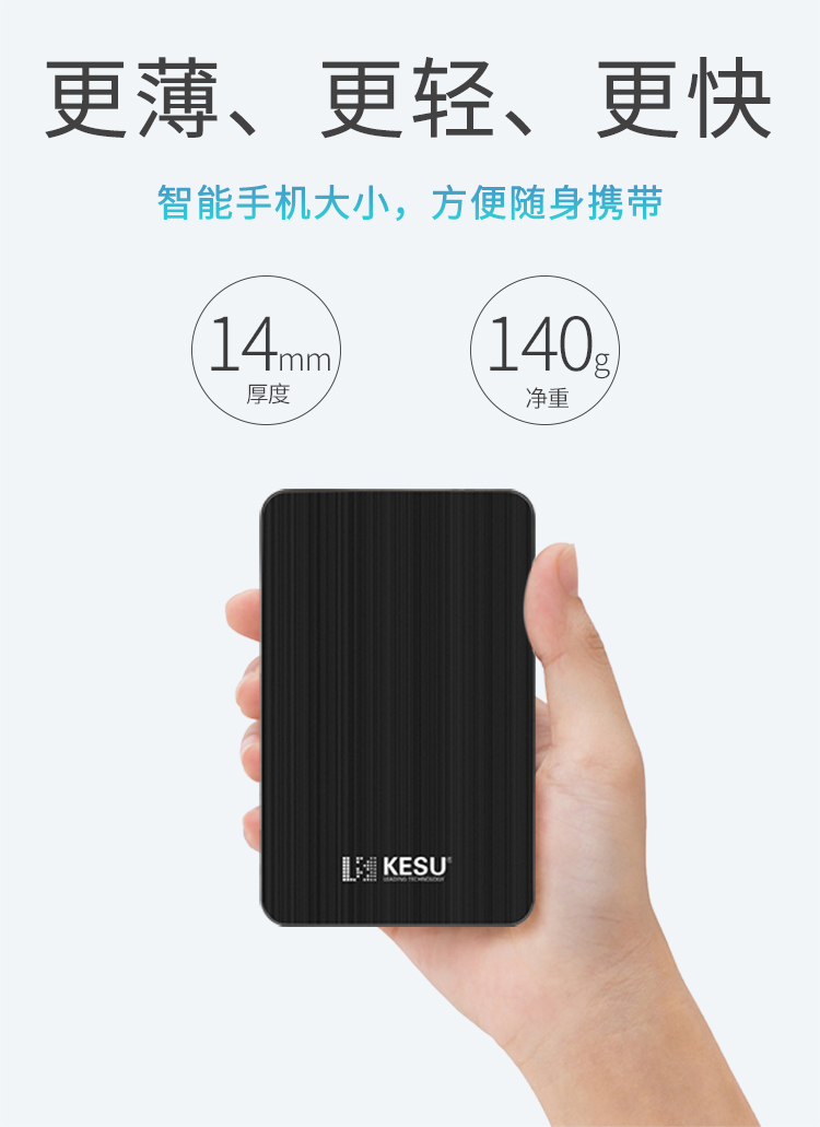 KESU mobile hard drive encryption 2.5-inch type-c USB3.1 mobile computer high-speed storage 500G+ hard drive shockproof bag black
