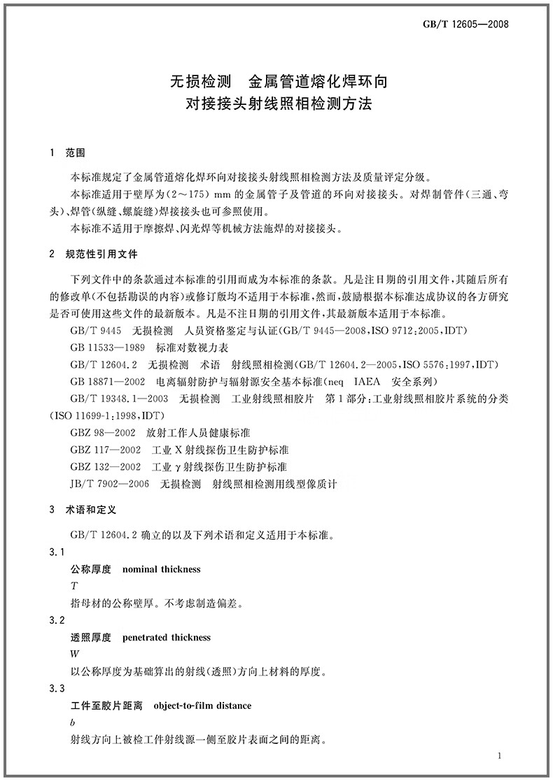 Genuine and new GB/T 12605-2008 Non-destructive testing Radiographic testing method for fusion welded circumferential butt joints of metal pipes China Standards Press
