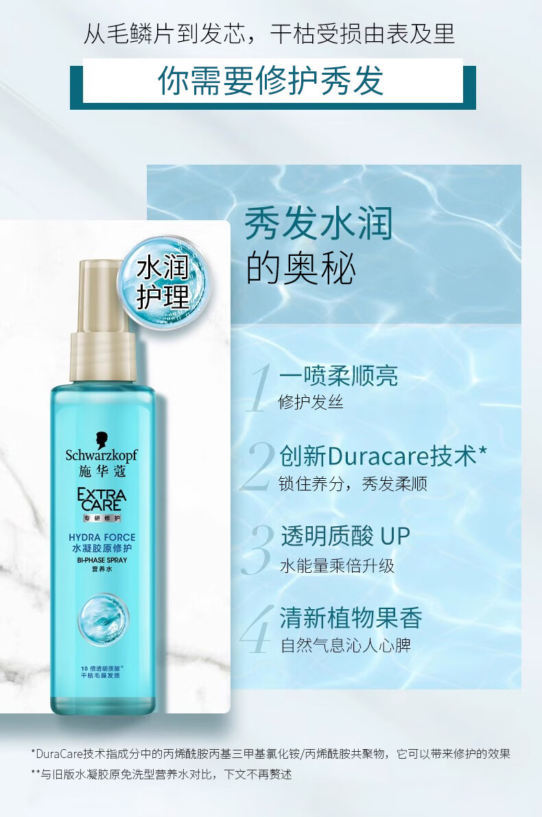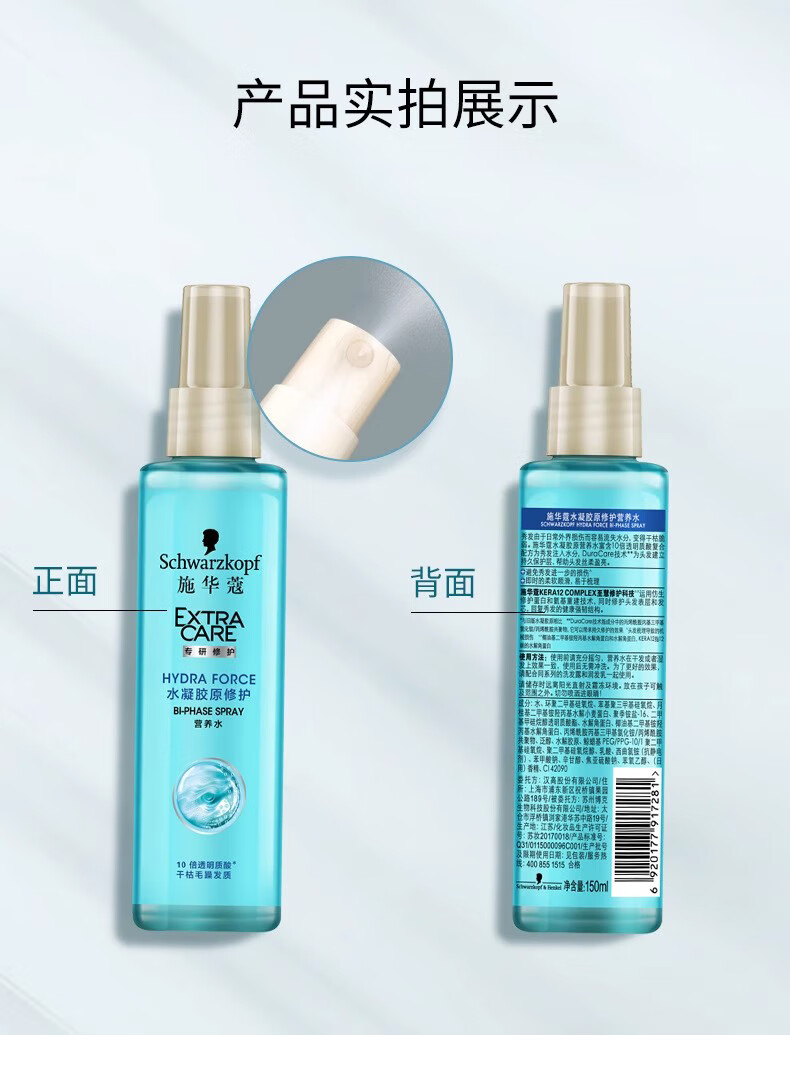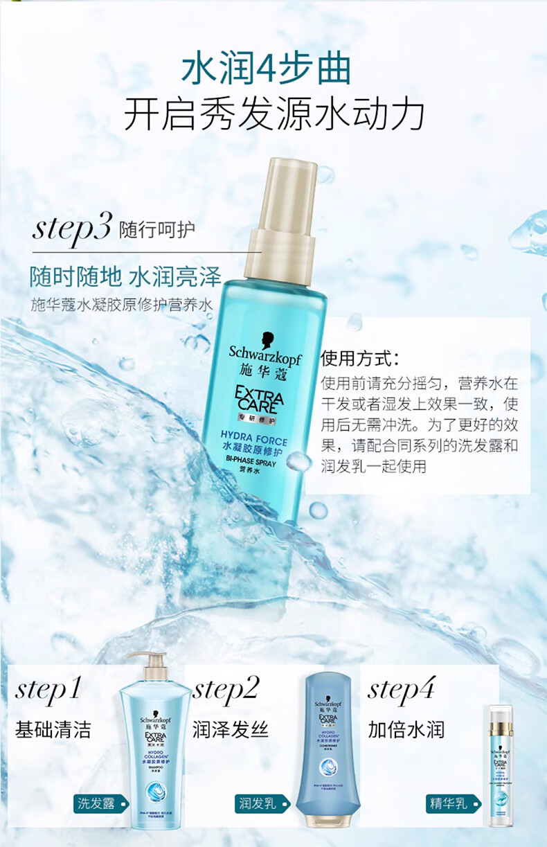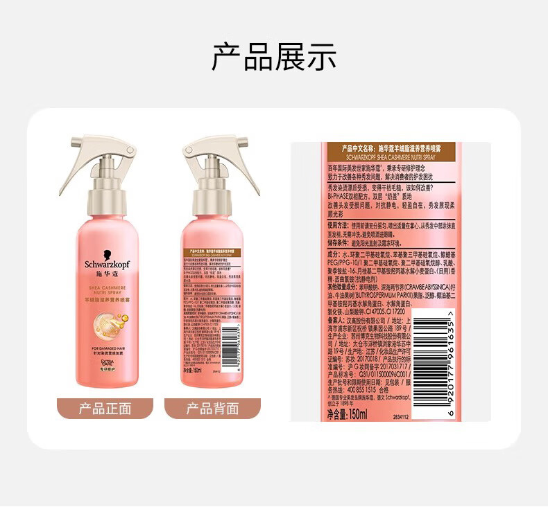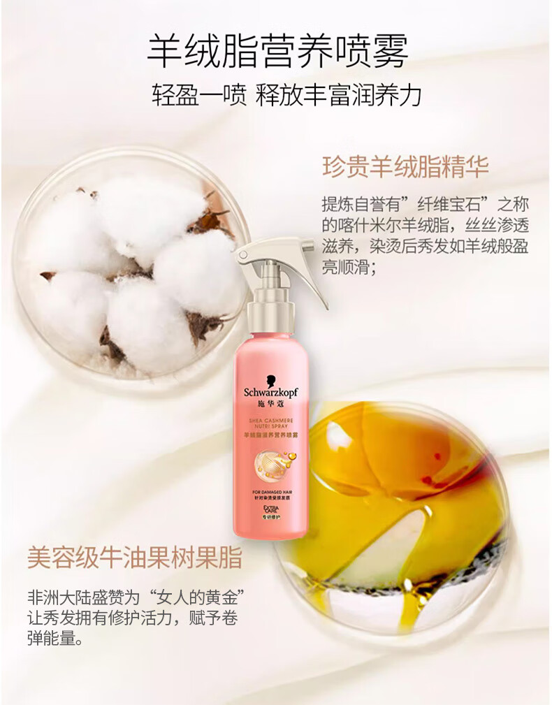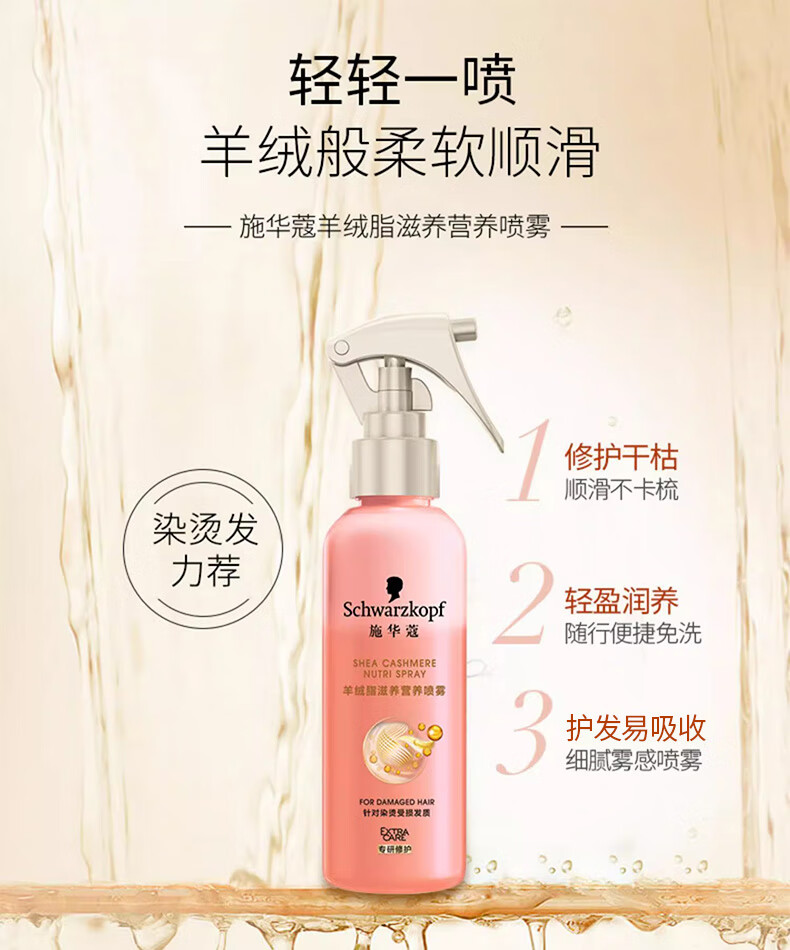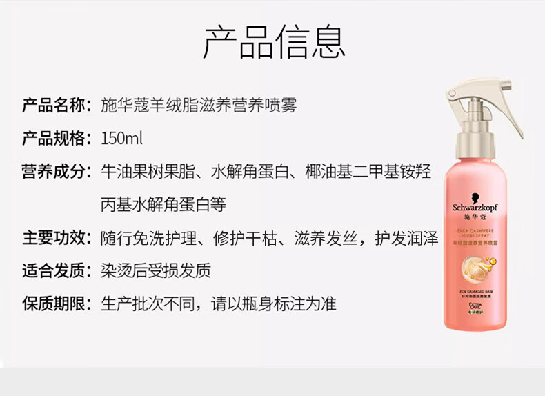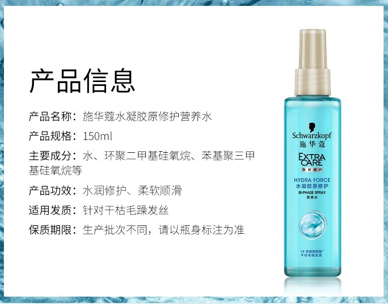 Schwarzkopf cashmere fat nourishing nutrient water 150ml hydrogel original repair nutrient water no-wash repair hair perm and dye damaged hydrogel original nutrient water 150ml*2 bottles dry