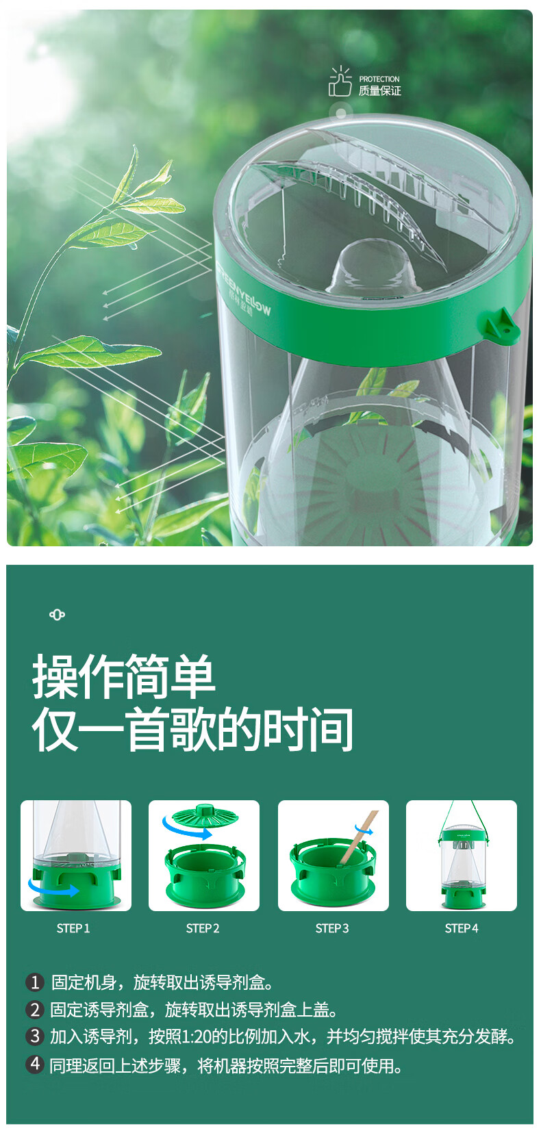 Green Yinglu Fly Artifact Farm Fly Killing Lamp Fly Killer Restaurant Hotel Fly Killing Cage Fly Cage Outdoor Catching Machine Catcher GW007 Large Fly Machine + 2 Packs of Imported Inducer