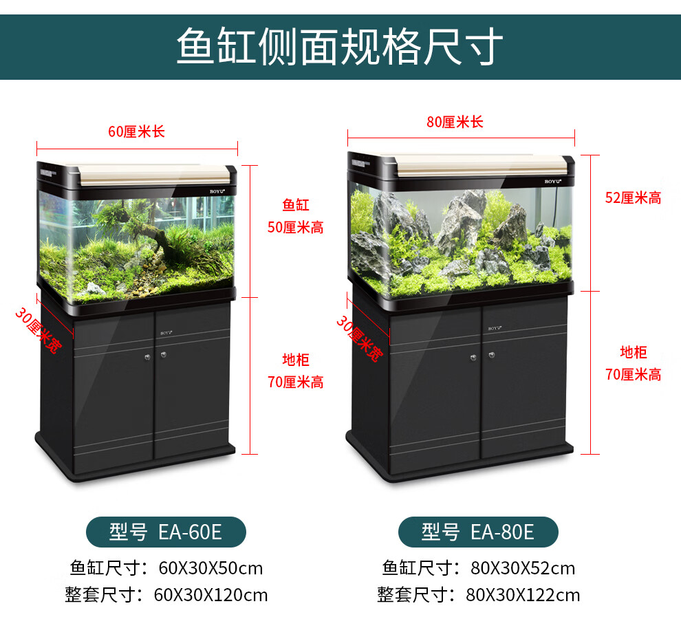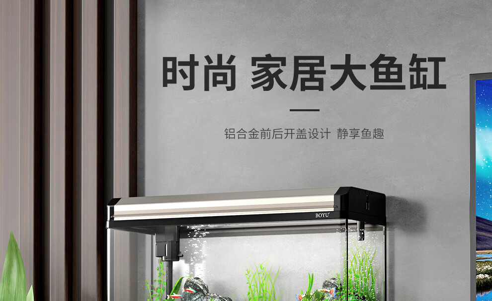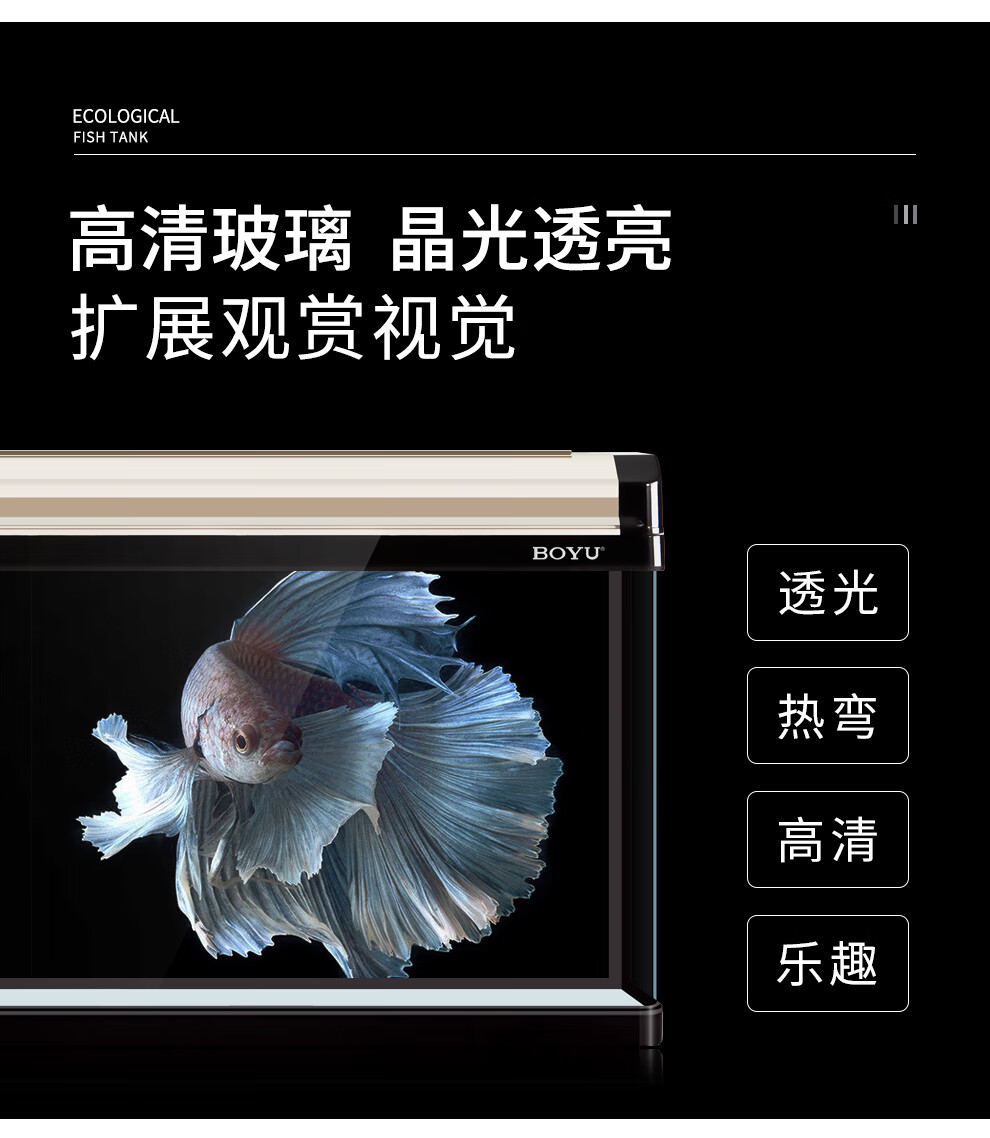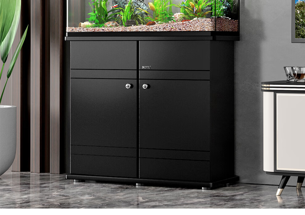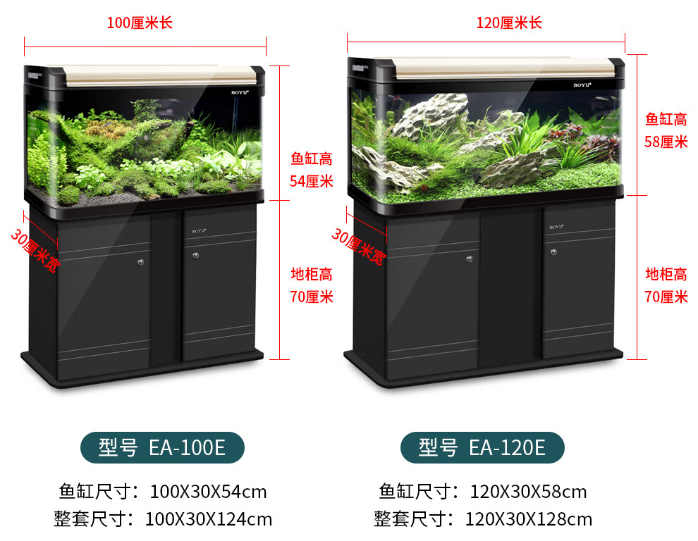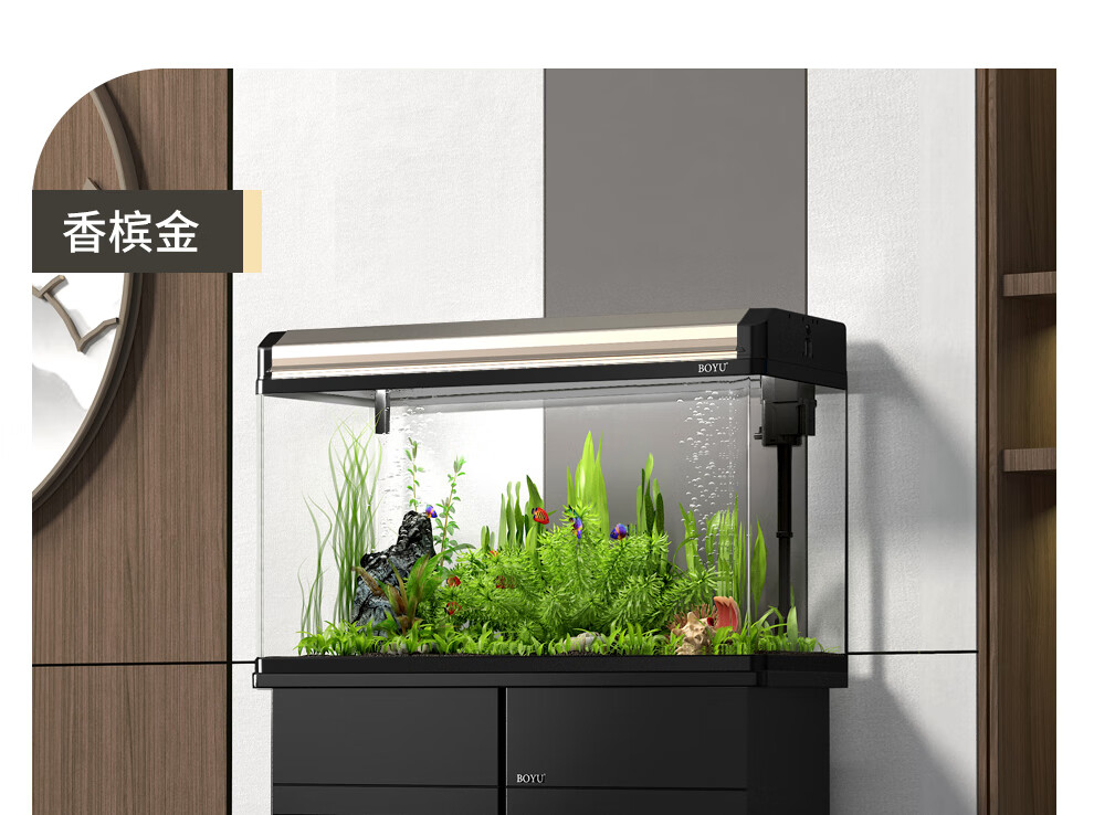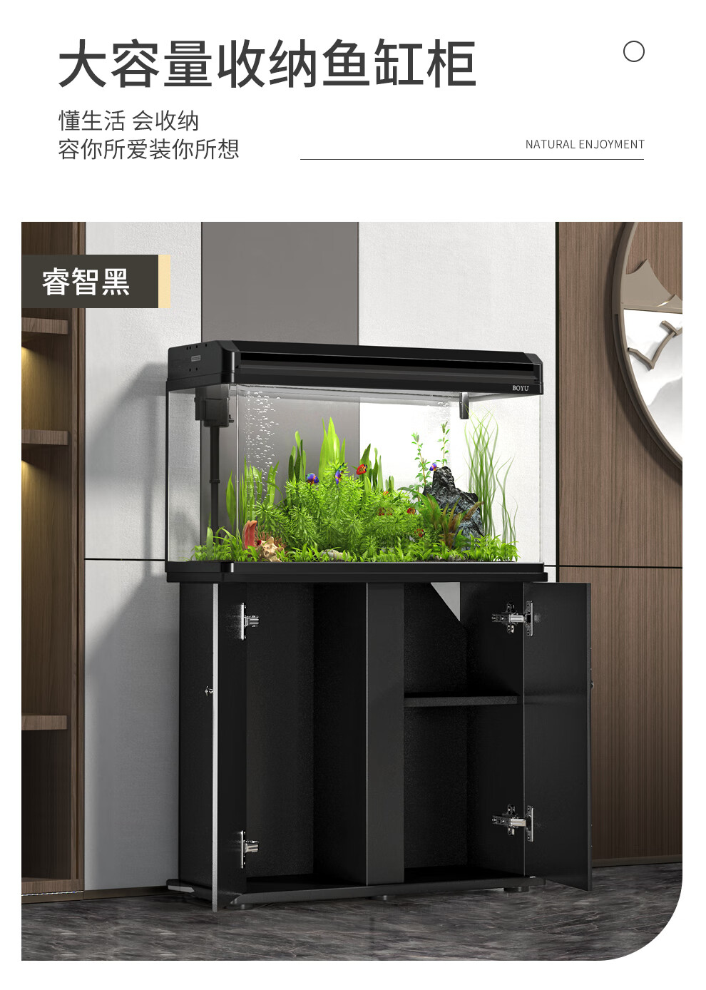 BoYU (BOYU) water-free large fish tank 80 aquarium ecological tank with oxygenation filter Goldfish stream cabinet living room and home use integrated aluminum alloy black luxury package (manufacturer direct hair) (heating rod landscape randomly) 120 long 30 wide 58 high cylinder (ausage filtration) [view cabinet needs to be purchased separately]