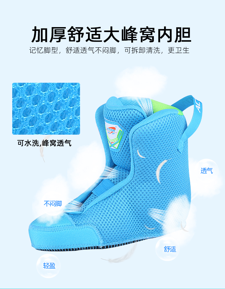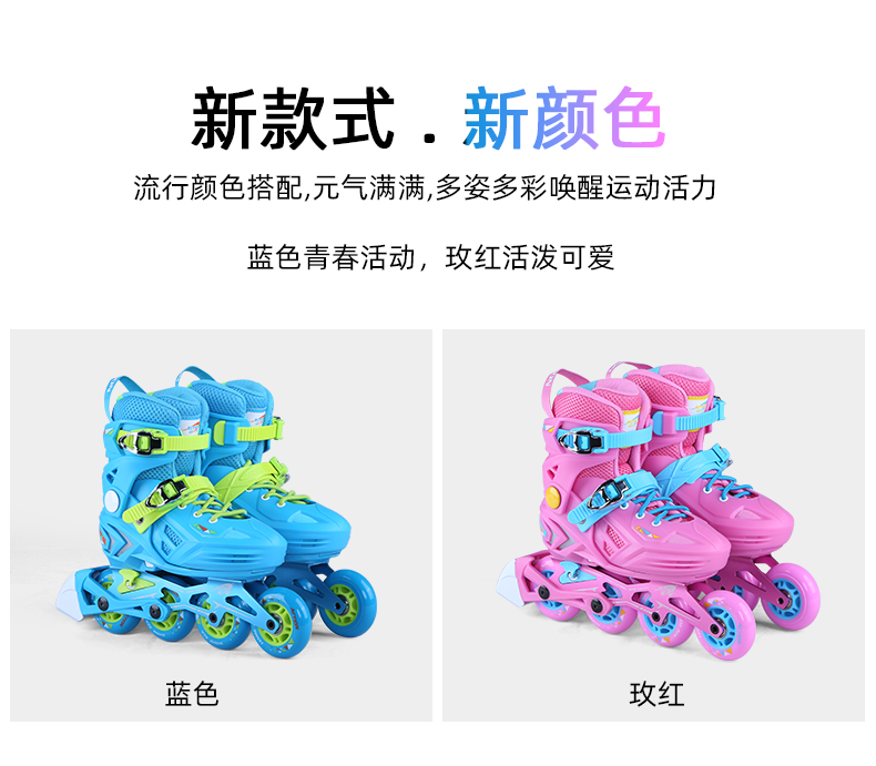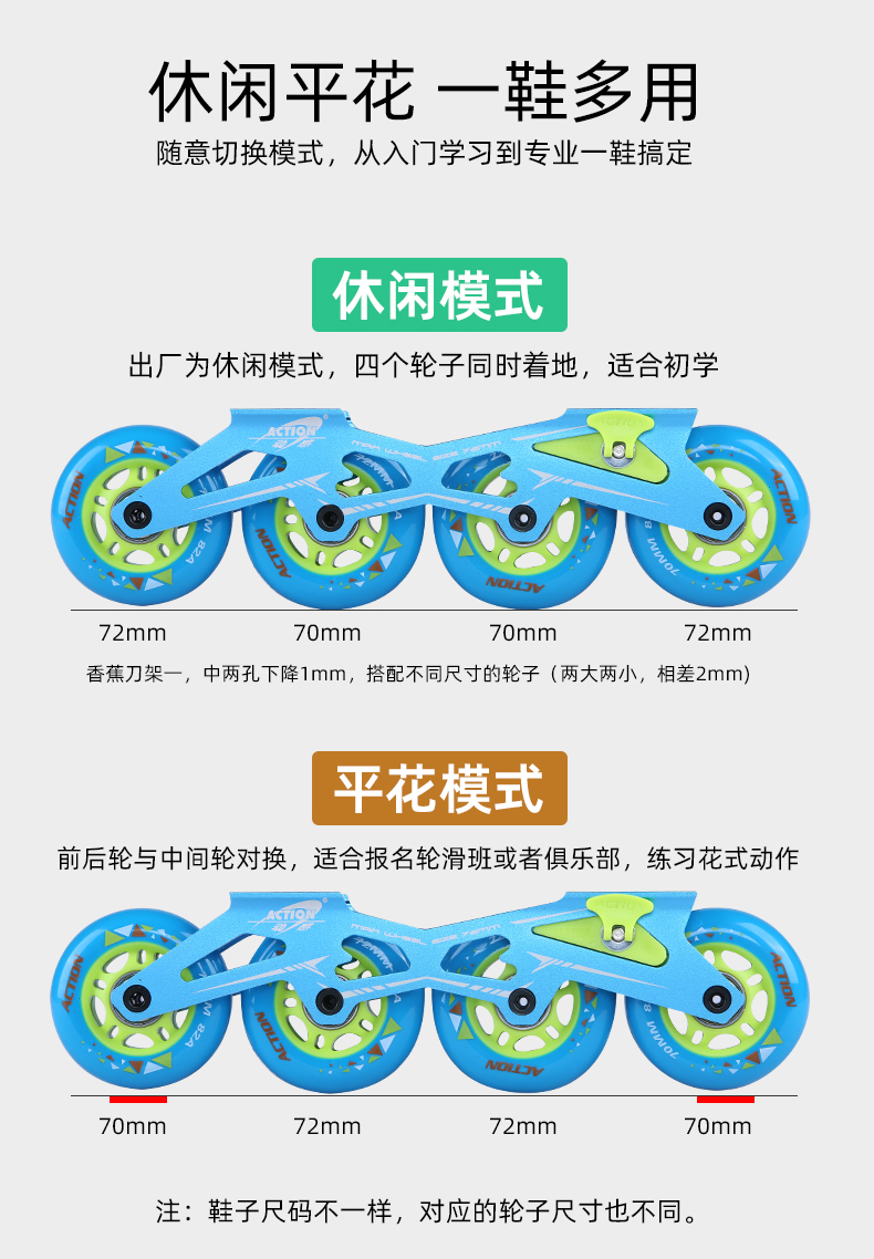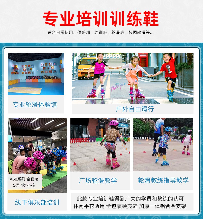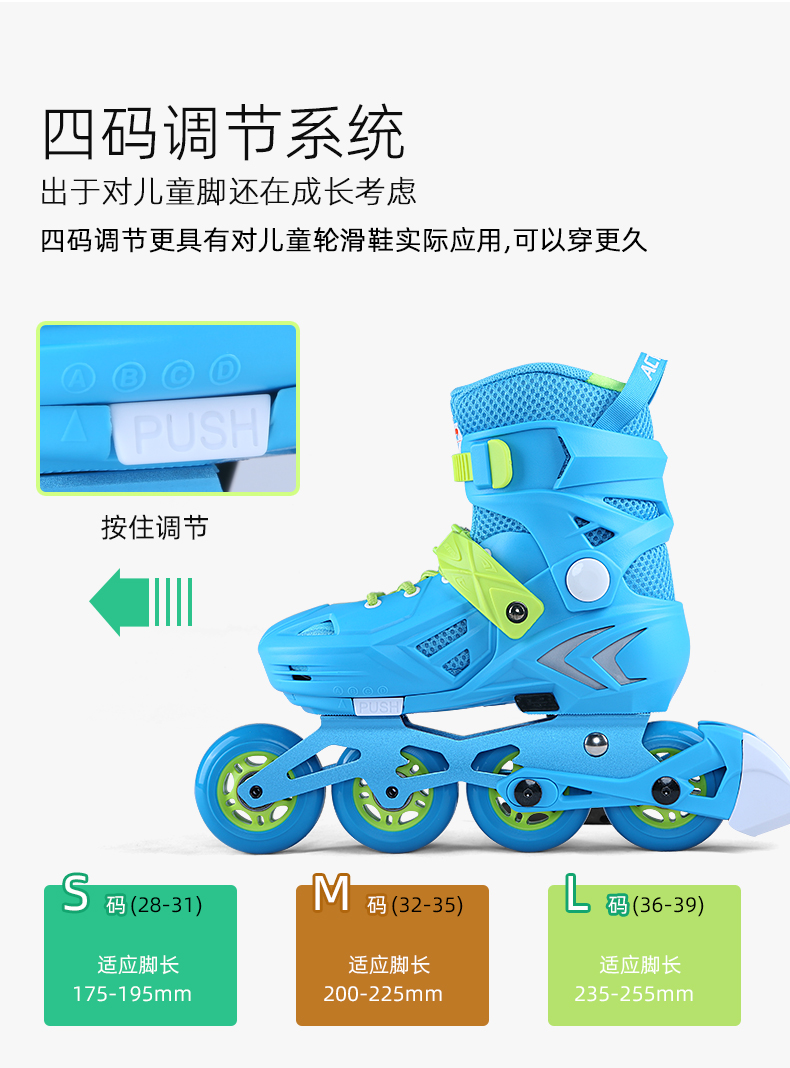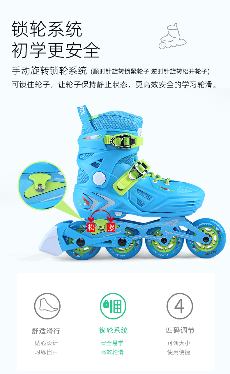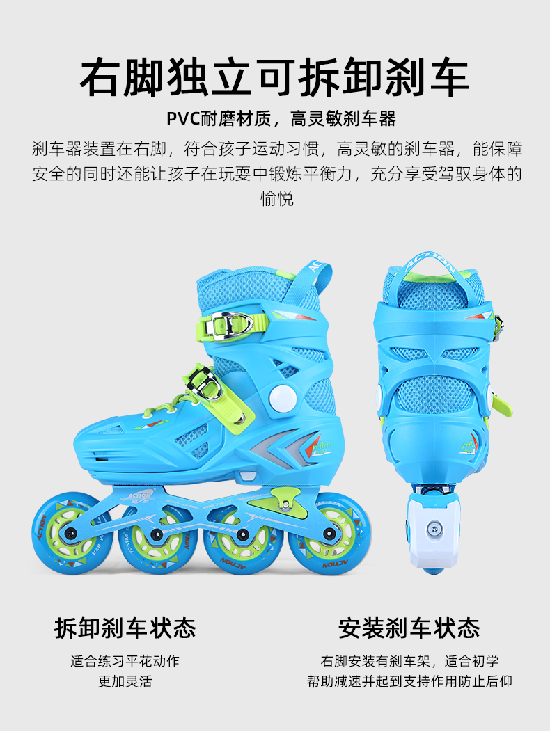 Dynamic (ACTION) skates for children, beginners' fancy shoes, adjustable size roller skates for boys and girls, locking wheel flat roller skates, full set of roller skates, light and shadow blue, set of 2 shoes + 912 helmet + turtle protective gear + bag L 36-39 size