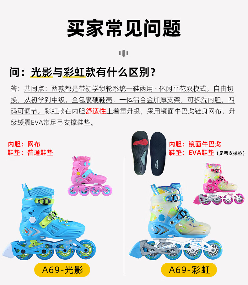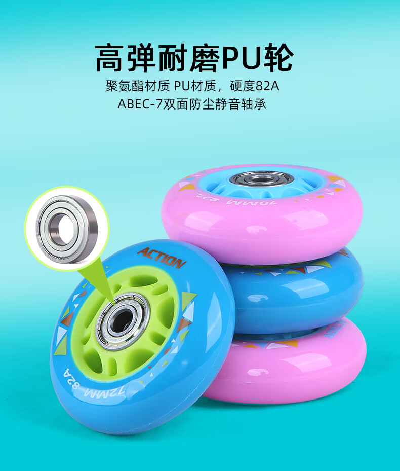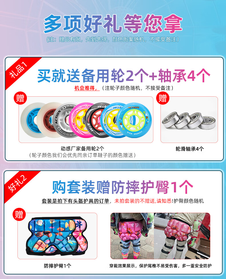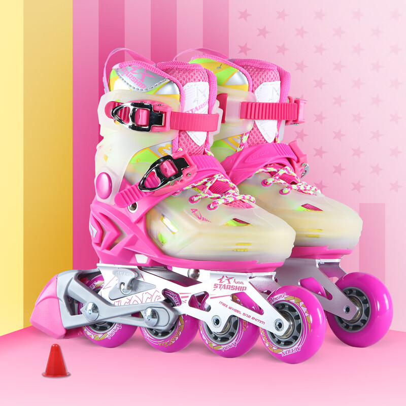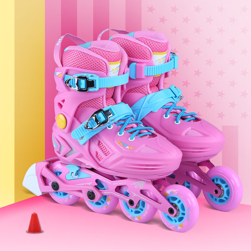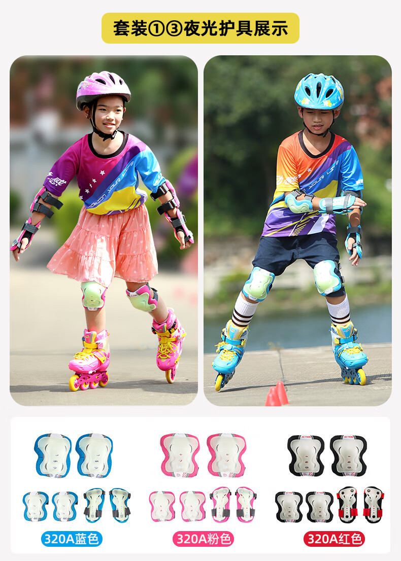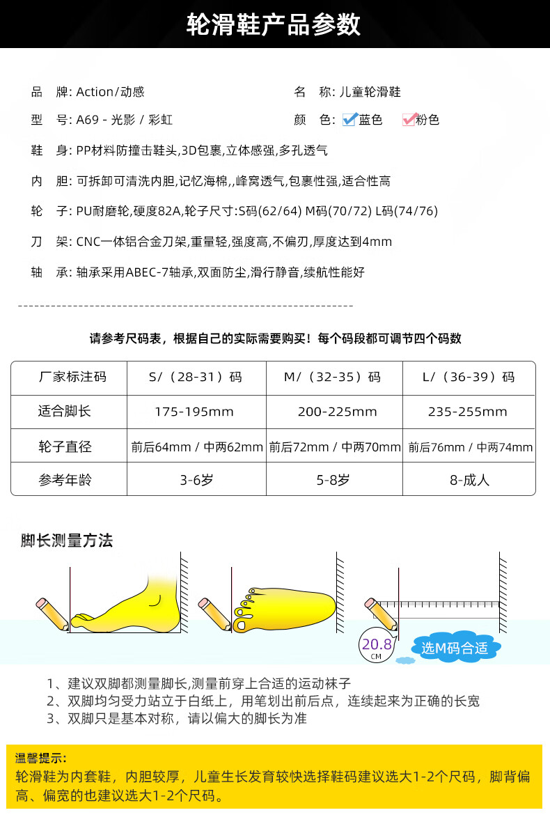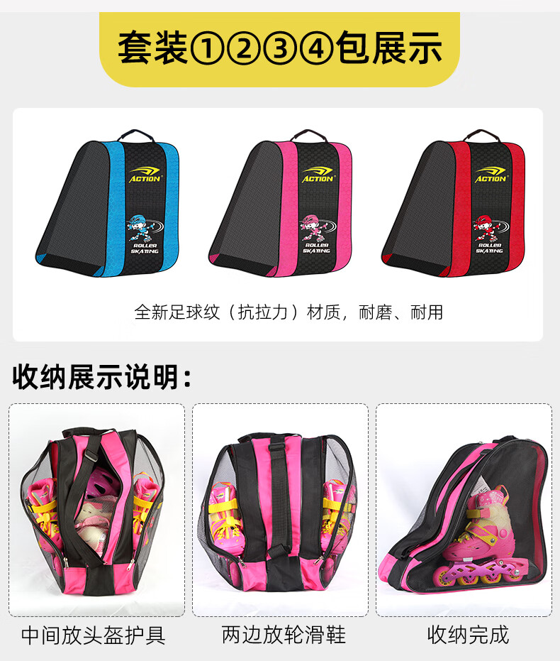 Dynamic (ACTION) skates for children, beginners' fancy shoes, adjustable size roller skates for boys and girls, locking wheel flat roller skates, full set of roller skates, light and shadow blue, set of 2 shoes + 912 helmet + turtle protective gear + bag L 36-39 size