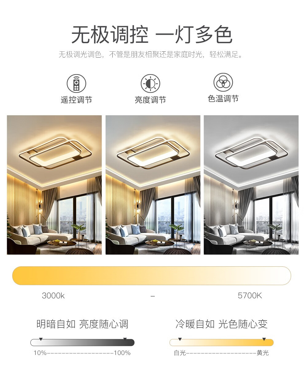 NVC LED ceiling lamp package, simple and elegant living room lamp, smart Nordic fashion bedroom and restaurant lighting, whole house Huanyu 52W intelligent control RA95 round bedroom lamp