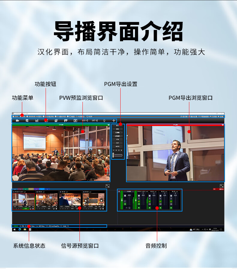 JiaTV 9900plus director station switcher live broadcast all-in-one sports event education e-commerce recording and broadcast virtual keying video push and pull high-definition live room 4K director station 9900PLUS (HD 4-channel) 17.3-inch large screen
