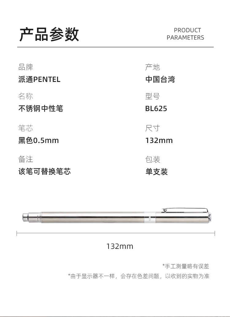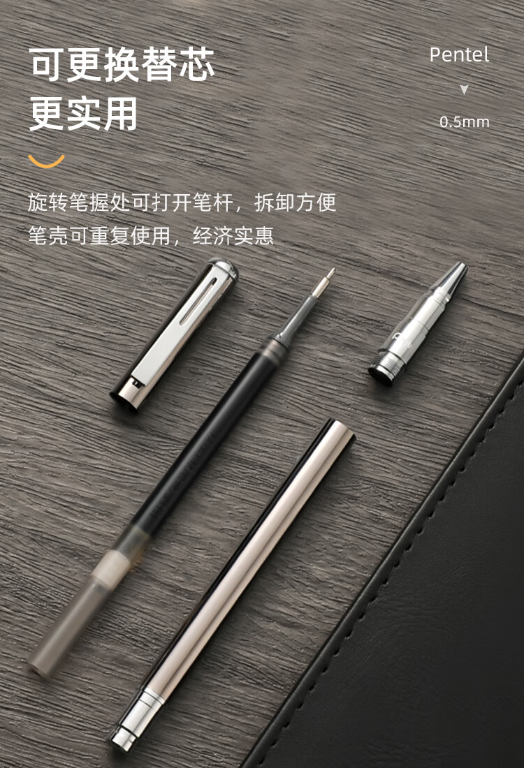 Pentel BL625 business gel pen 0.5mm high-end metal office financial water pen quick-drying signature pen gold single pack