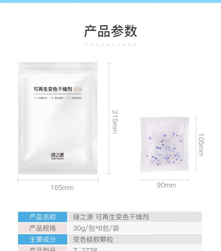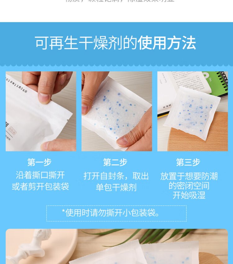 Green Source Dehumidification Color Changing Gel 8 bags Desiccant Hui Nantian Dehumidification Bag Indoor Wardrobe Clothes Moisture-proof Agent Bag