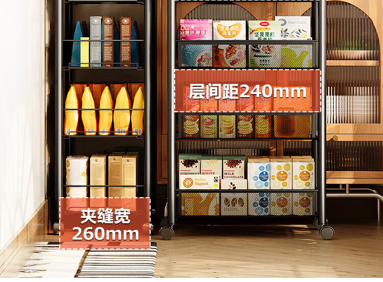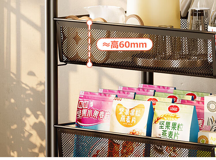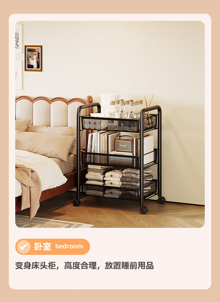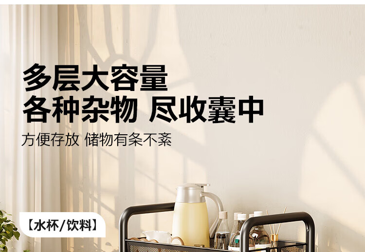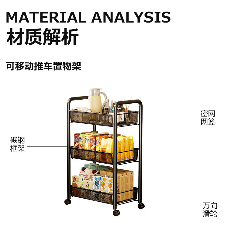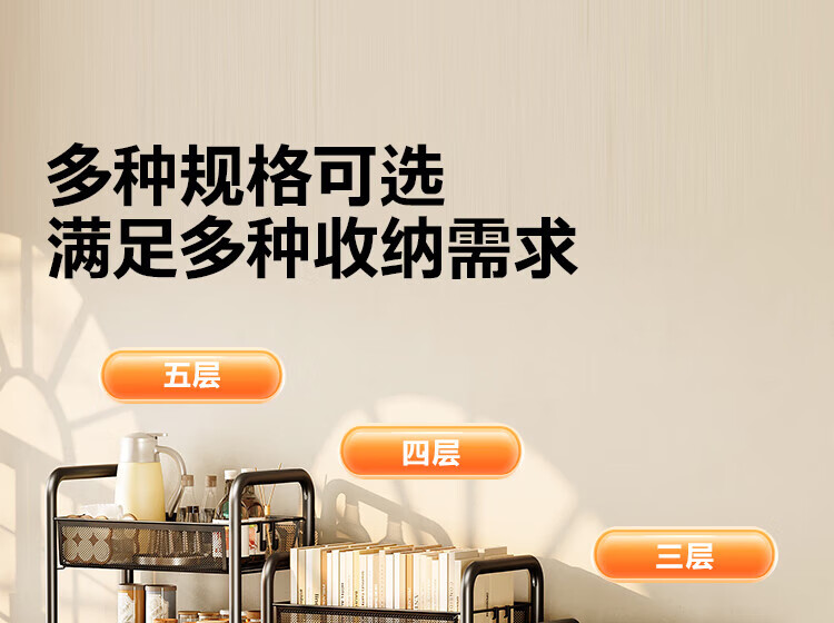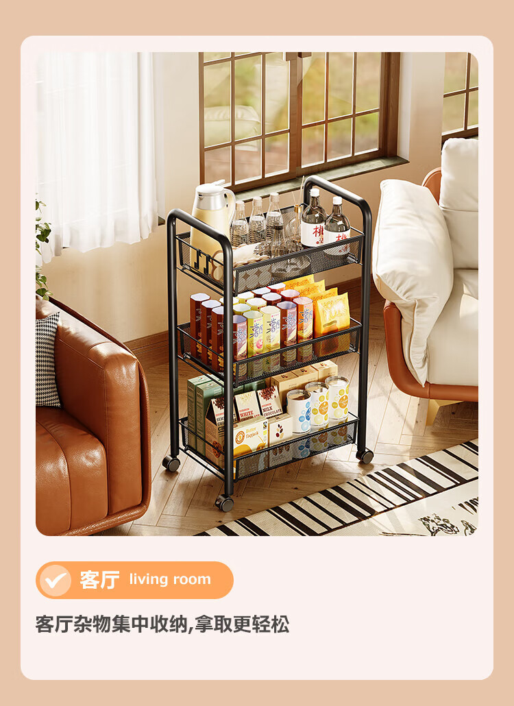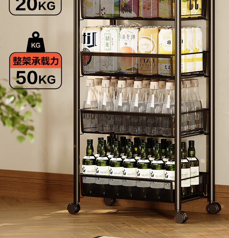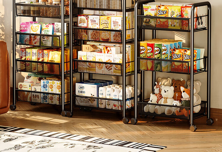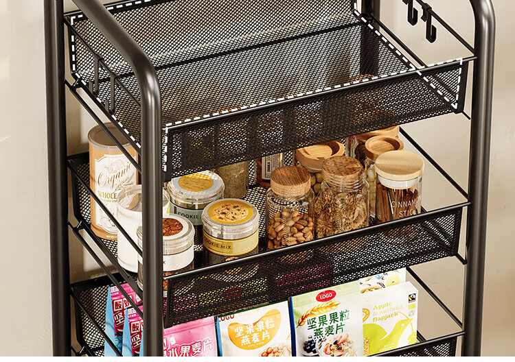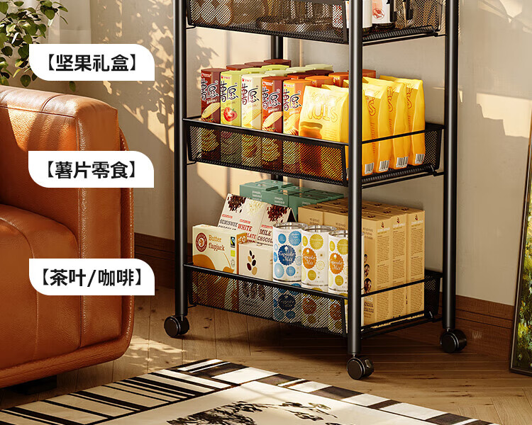 Yicai Nianhua Kitchen Storage Rack Floor-standing Storage Rack Mobile Storage Trolley Vegetable Rack Multi-layer Snack Rack 1056-BK