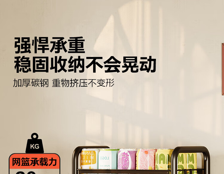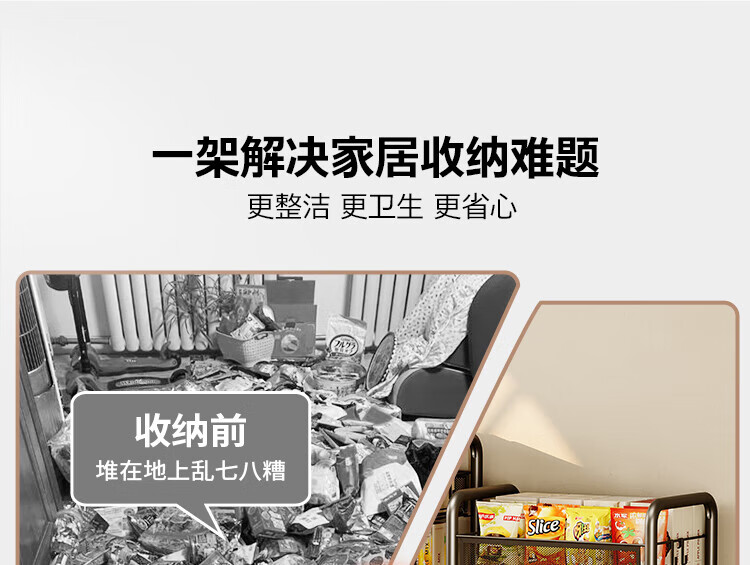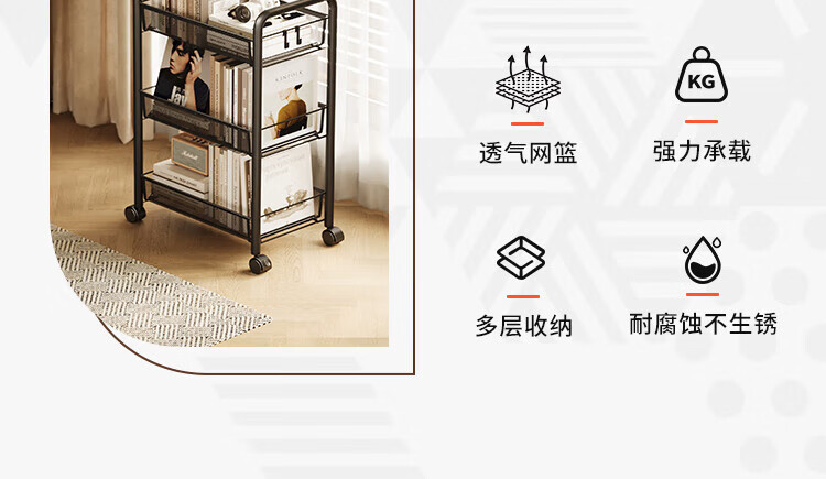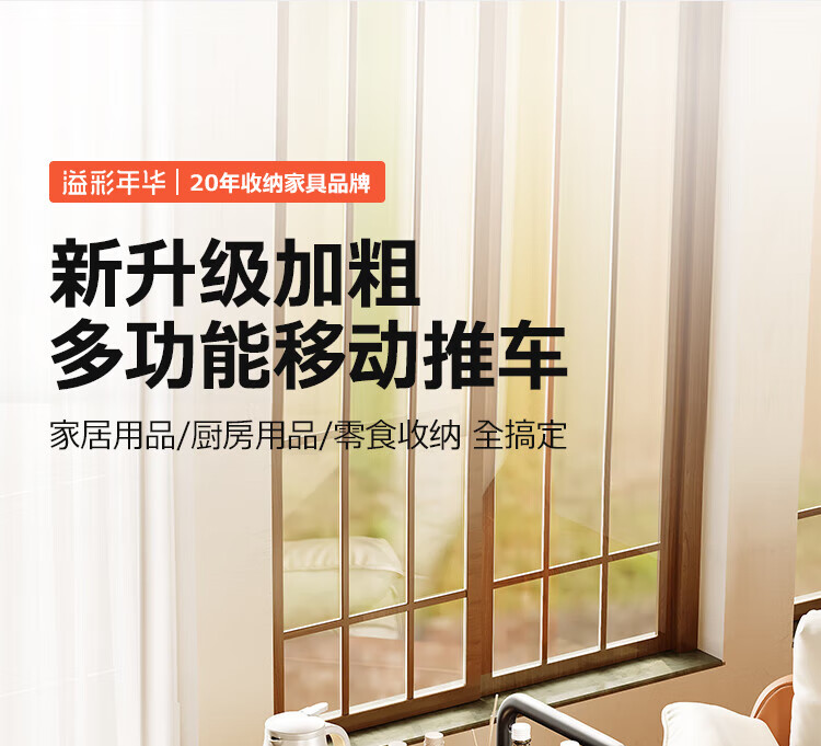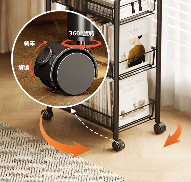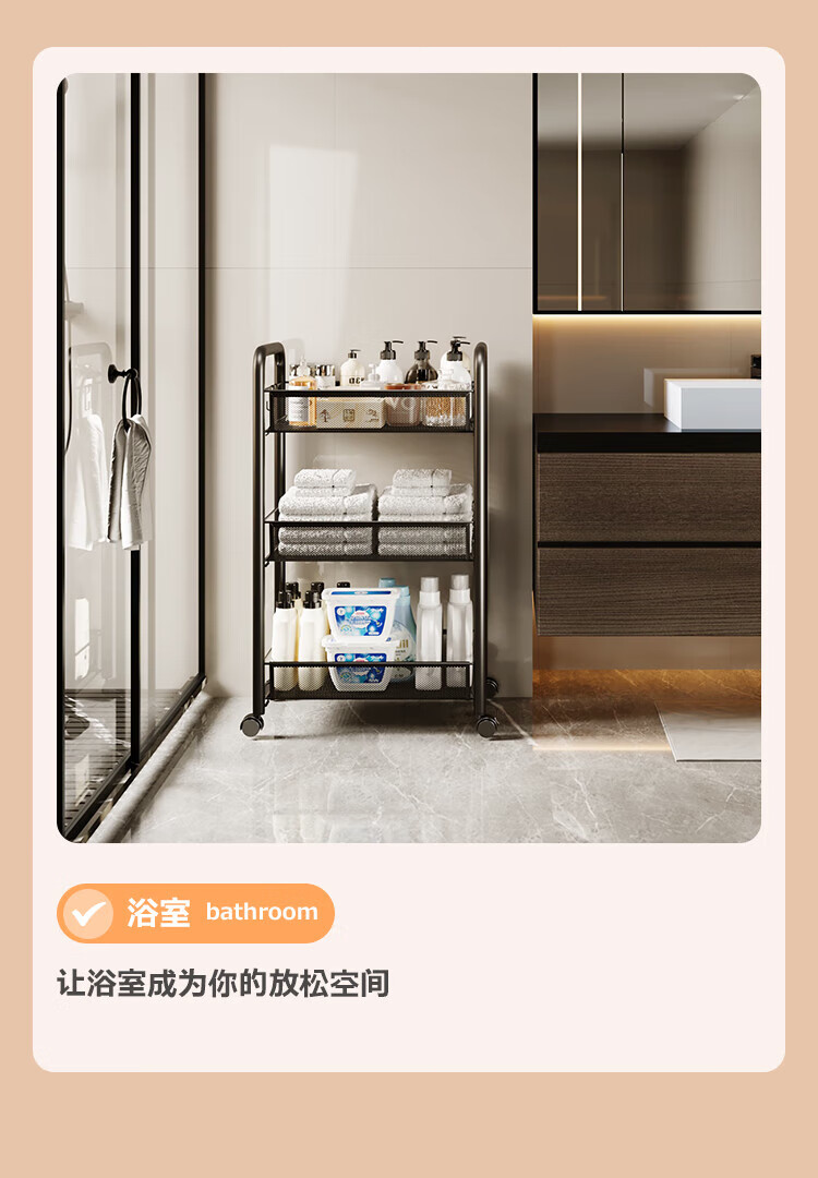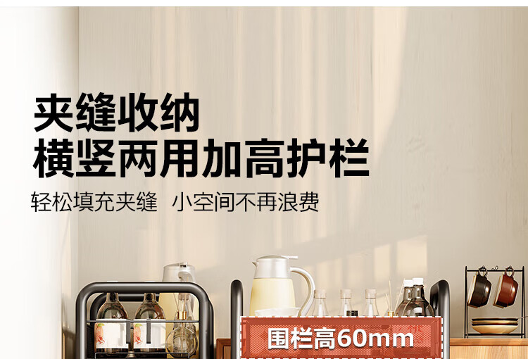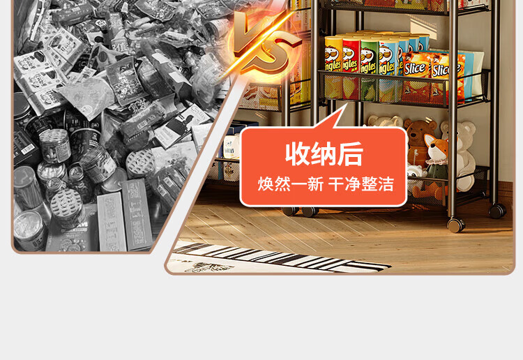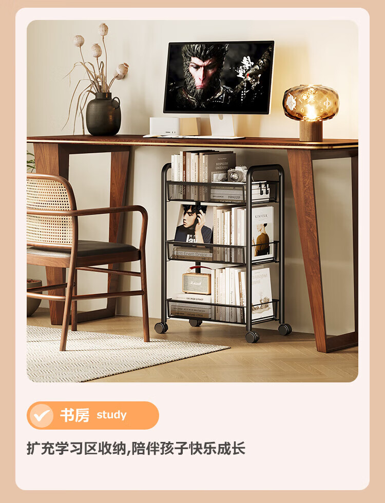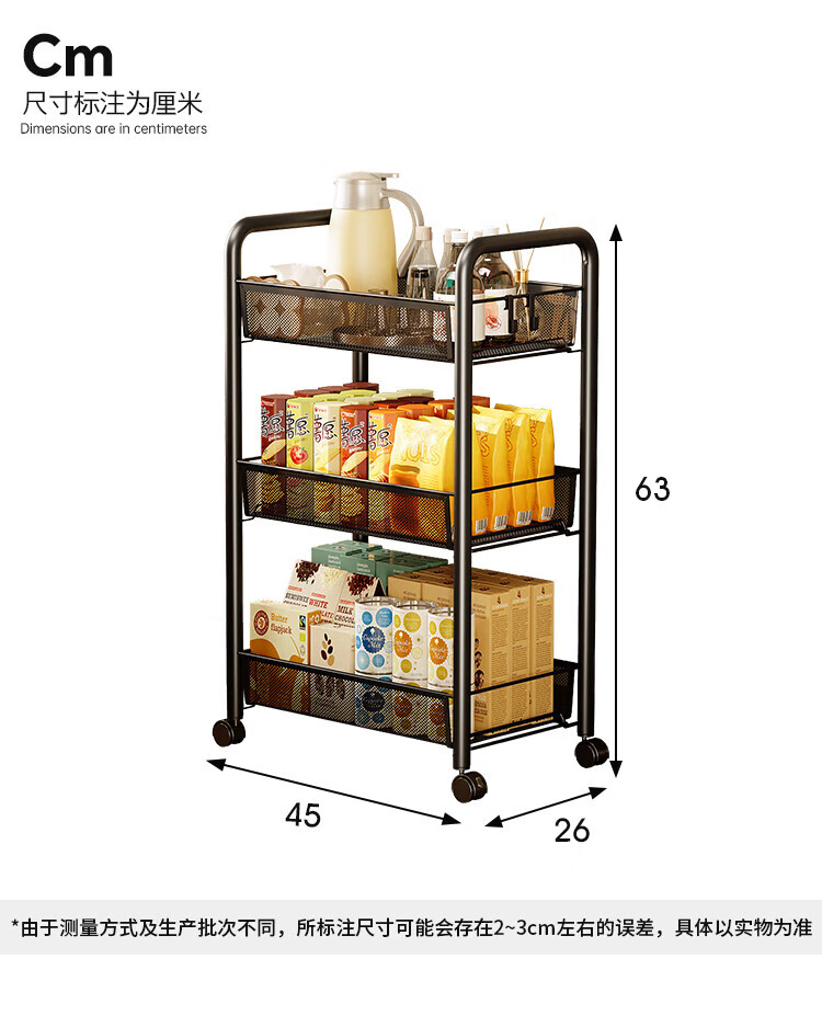Yicai Nianhua Kitchen Storage Rack Floor-standing Storage Rack Mobile Storage Trolley Vegetable Rack Multi-layer Snack Rack 1056-BK
