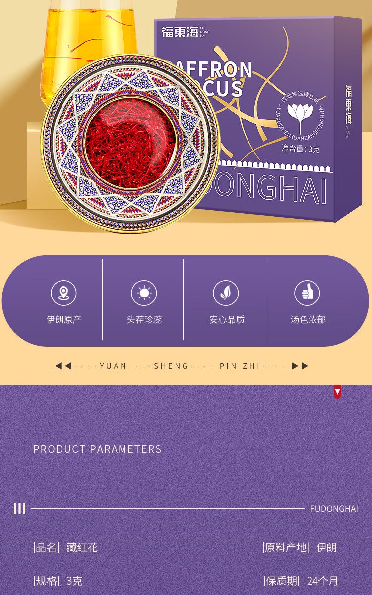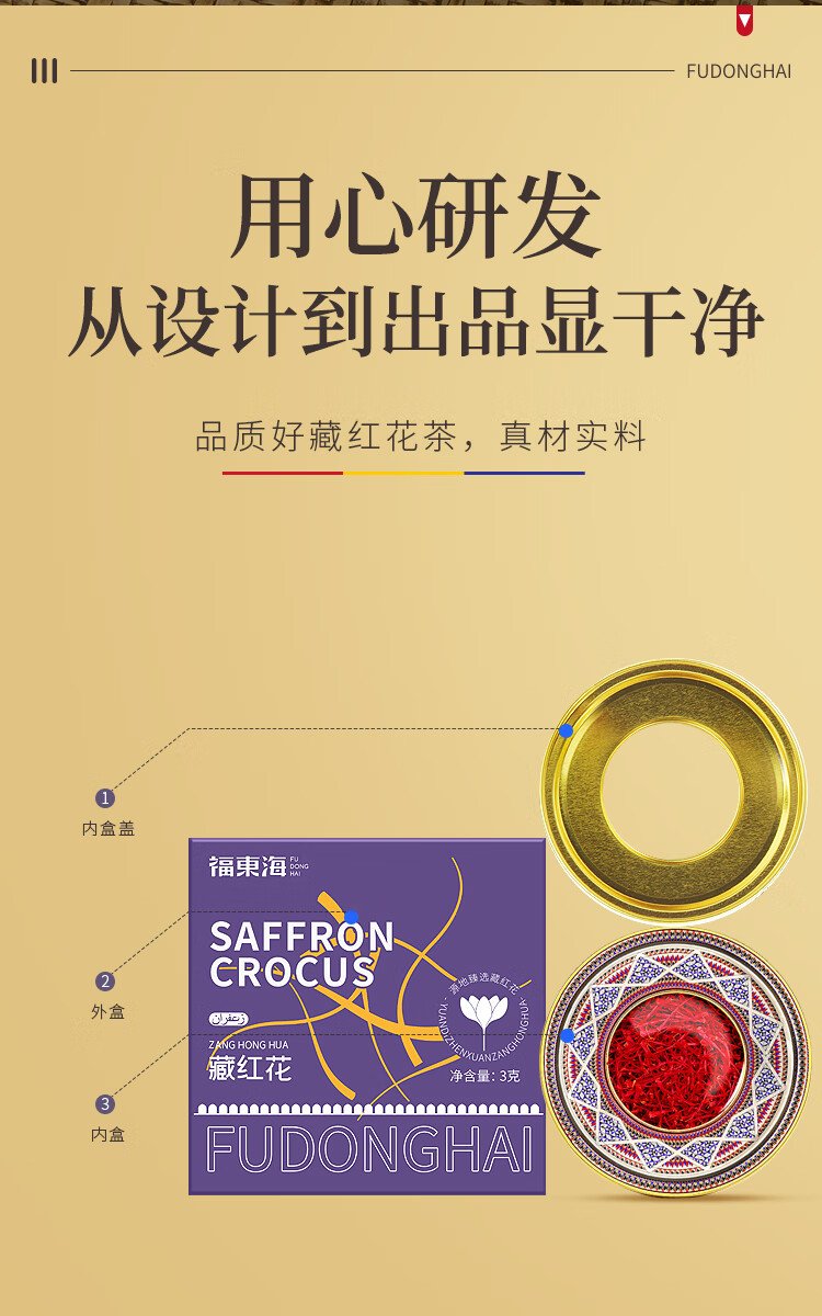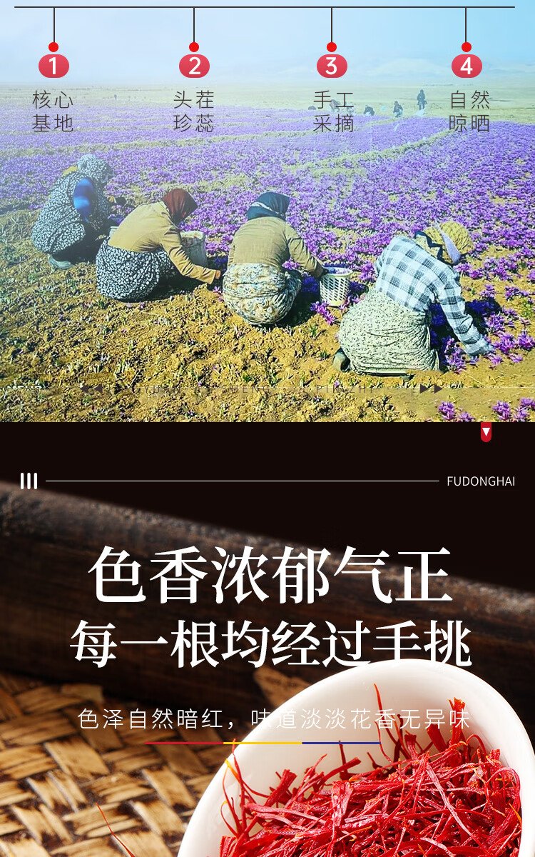 Fudonghai A5 special grade Iranian saffron 3g Qixi Festival gift safflower full length silk saffron health nourishing soaked in water