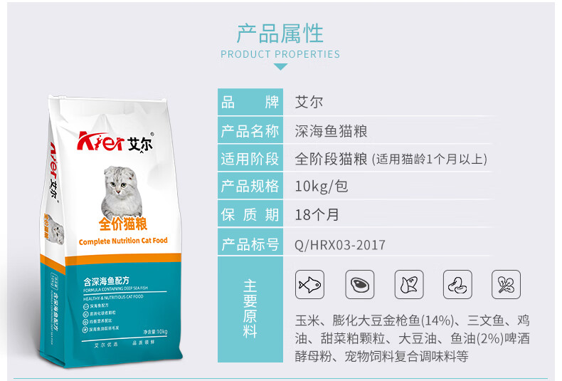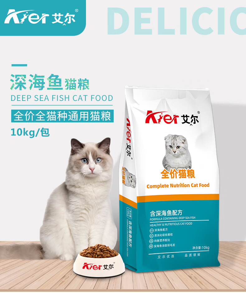 Aier cat food, adult cat food, full-stage universal cat food, deep-sea fish 3 packs + beef salmon 2 packs
