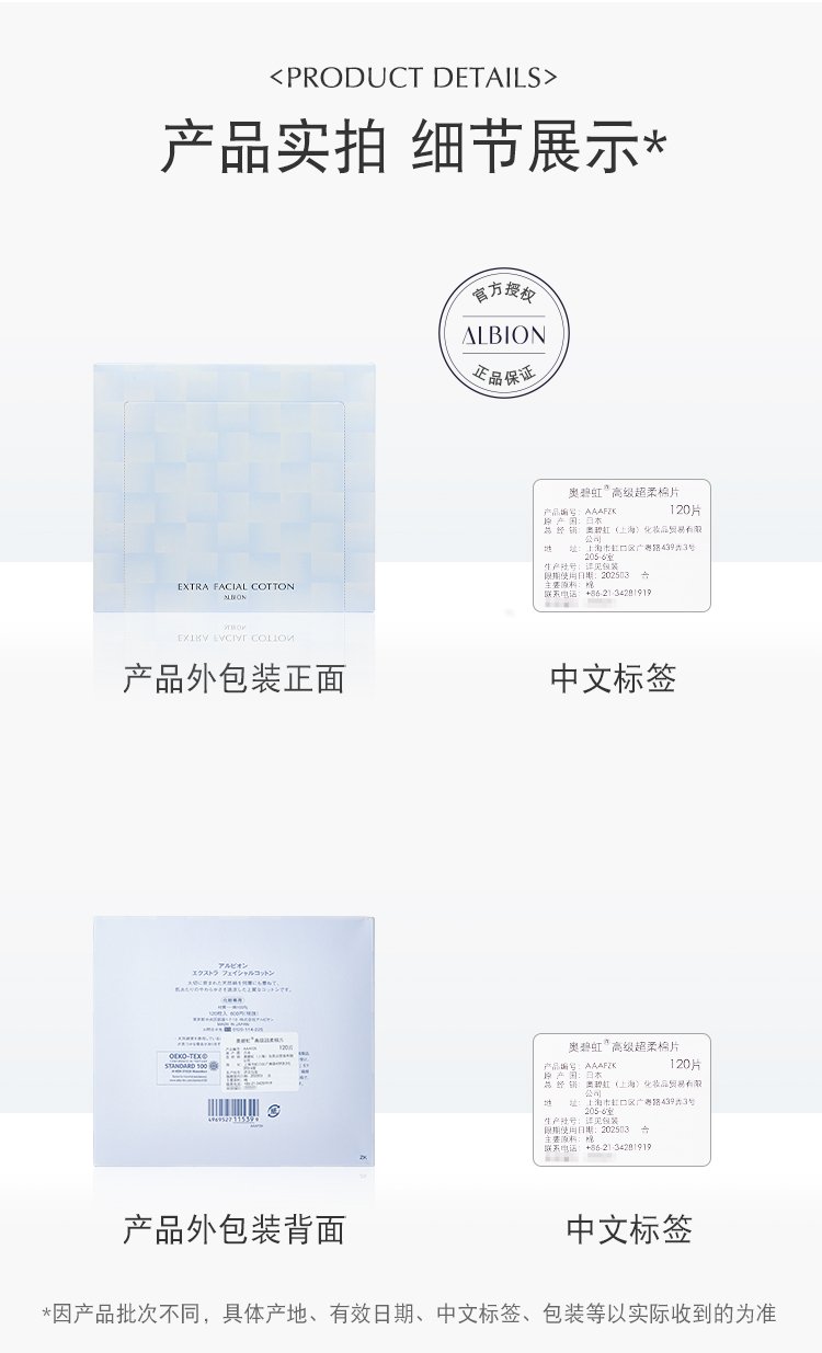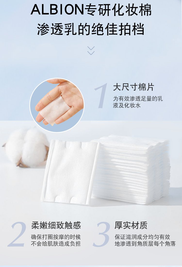 ALBION high-end ultra-soft cotton pad 120 pieces of makeup remover cotton face, eyes and lips, optimized absorption and healthy water