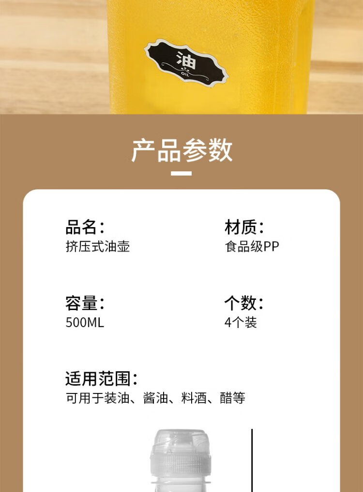 Baiji scream oil bottle 500ml*4 squeeze sauce bottle vinegar pot soy sauce bottle spray bottle seasoning storage squeeze bottle