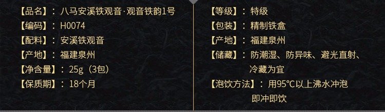 Bama Tea Oolong Tea Tieyun Anxi Tieguanyin Fragancia Grado especial 25g Té de degustación en caja