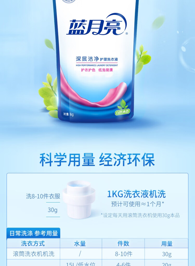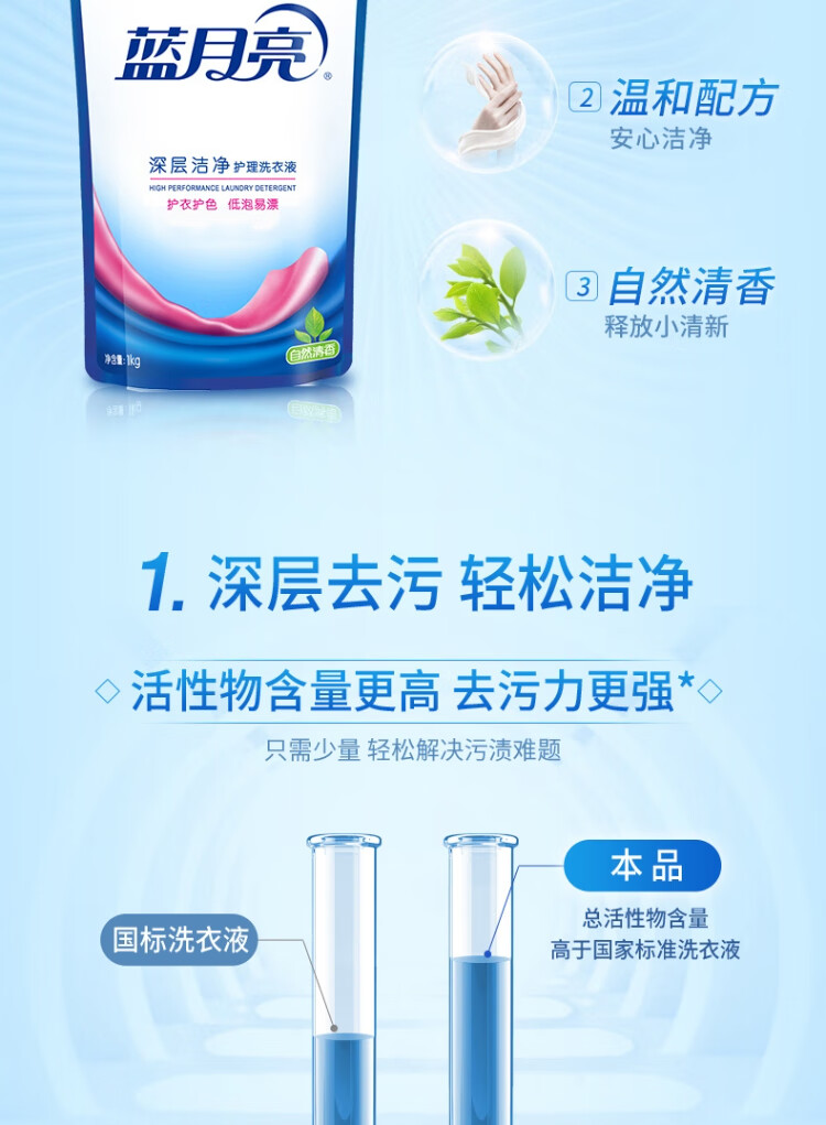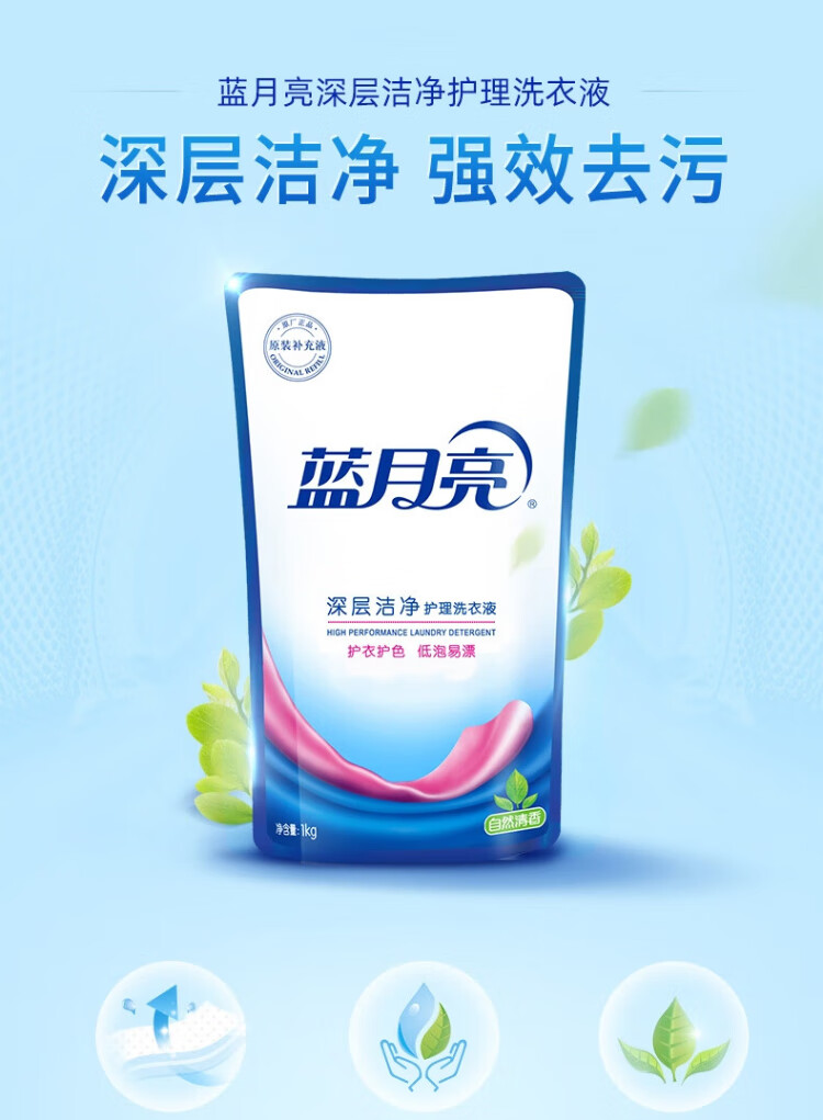 Blue Moon Deep Cleansing Laundry Detergent Natural Fragrance 1kg Bag Refill Powerful Decontamination