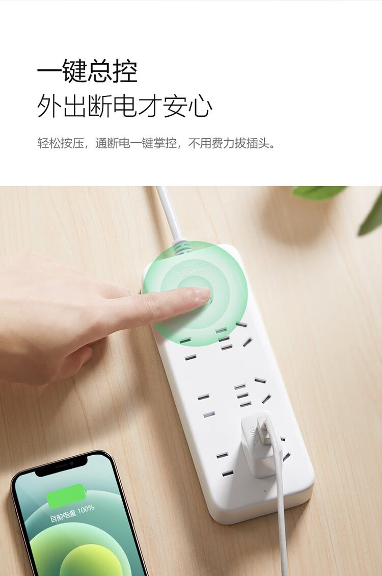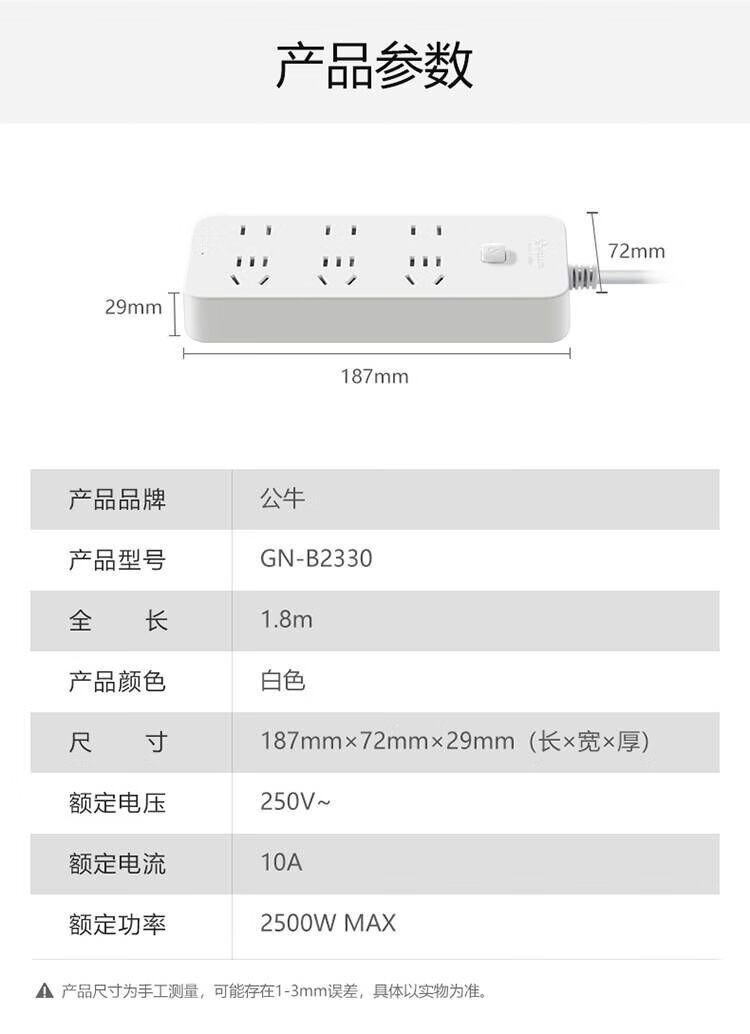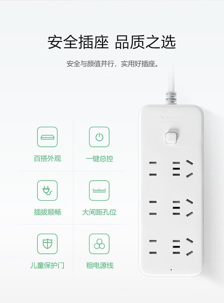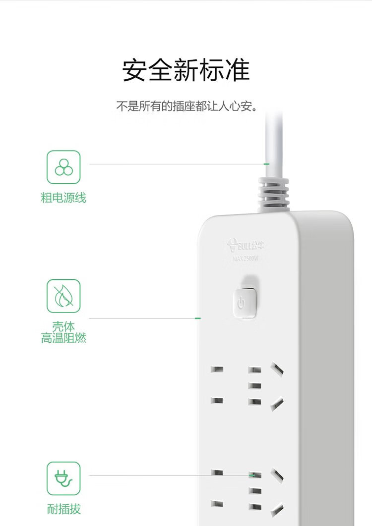 Bull (BULL) socket/wire board/plug/plug/plug/connector/wire board/drag board 3C certification 6-position general control switch total length 1.8 meters GN-B2330