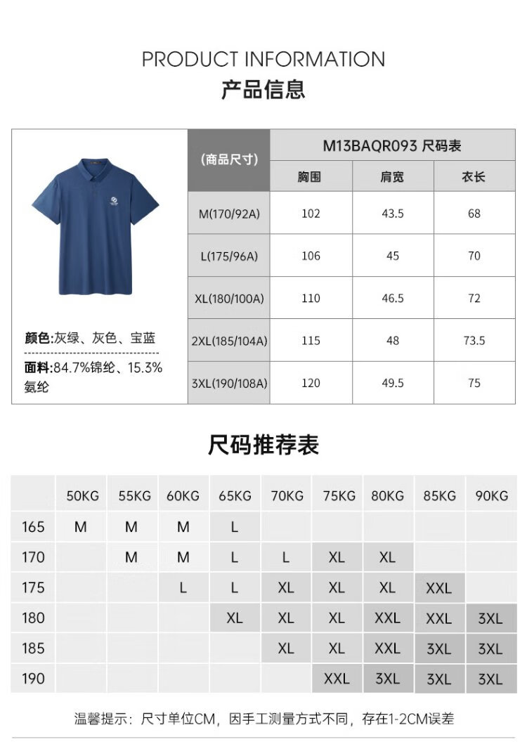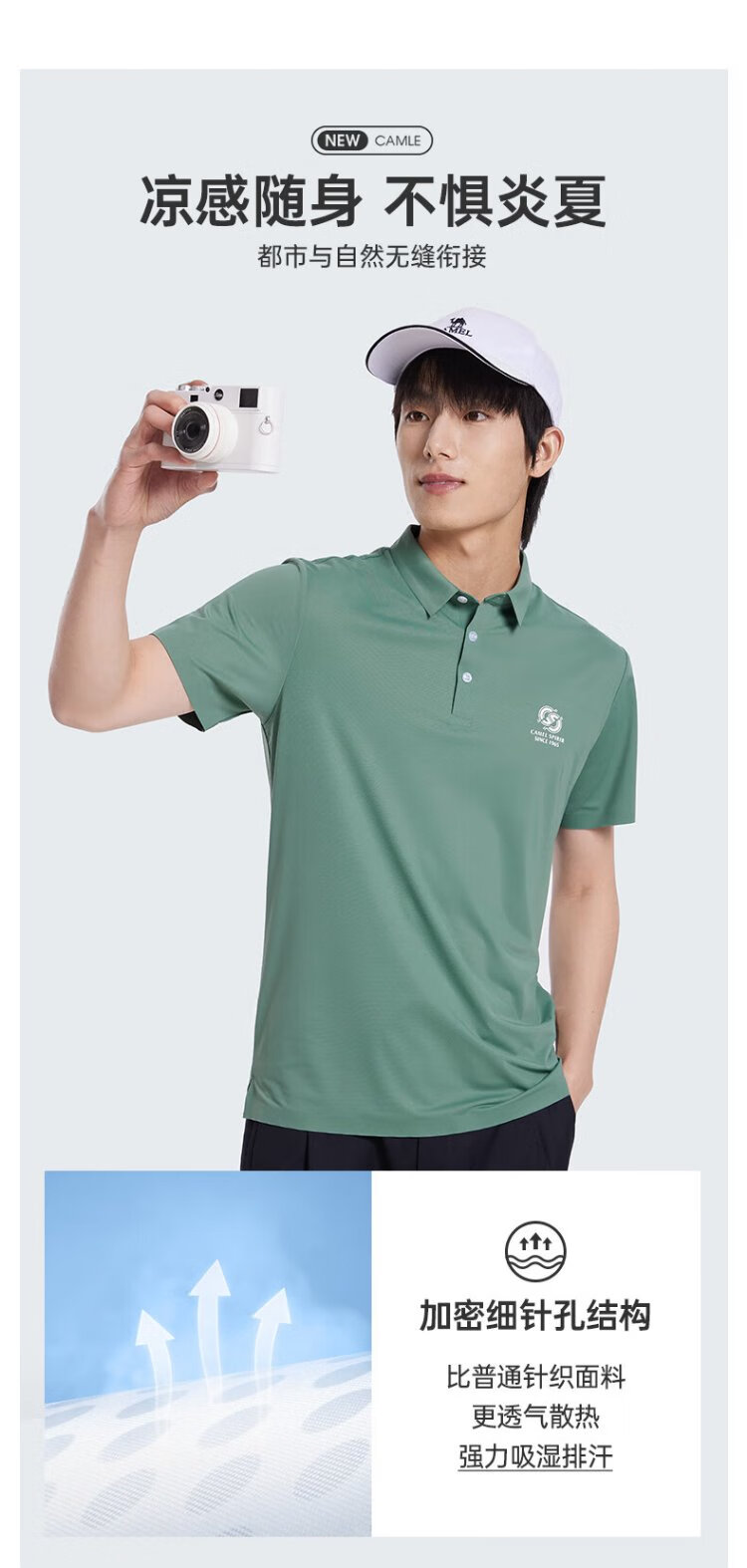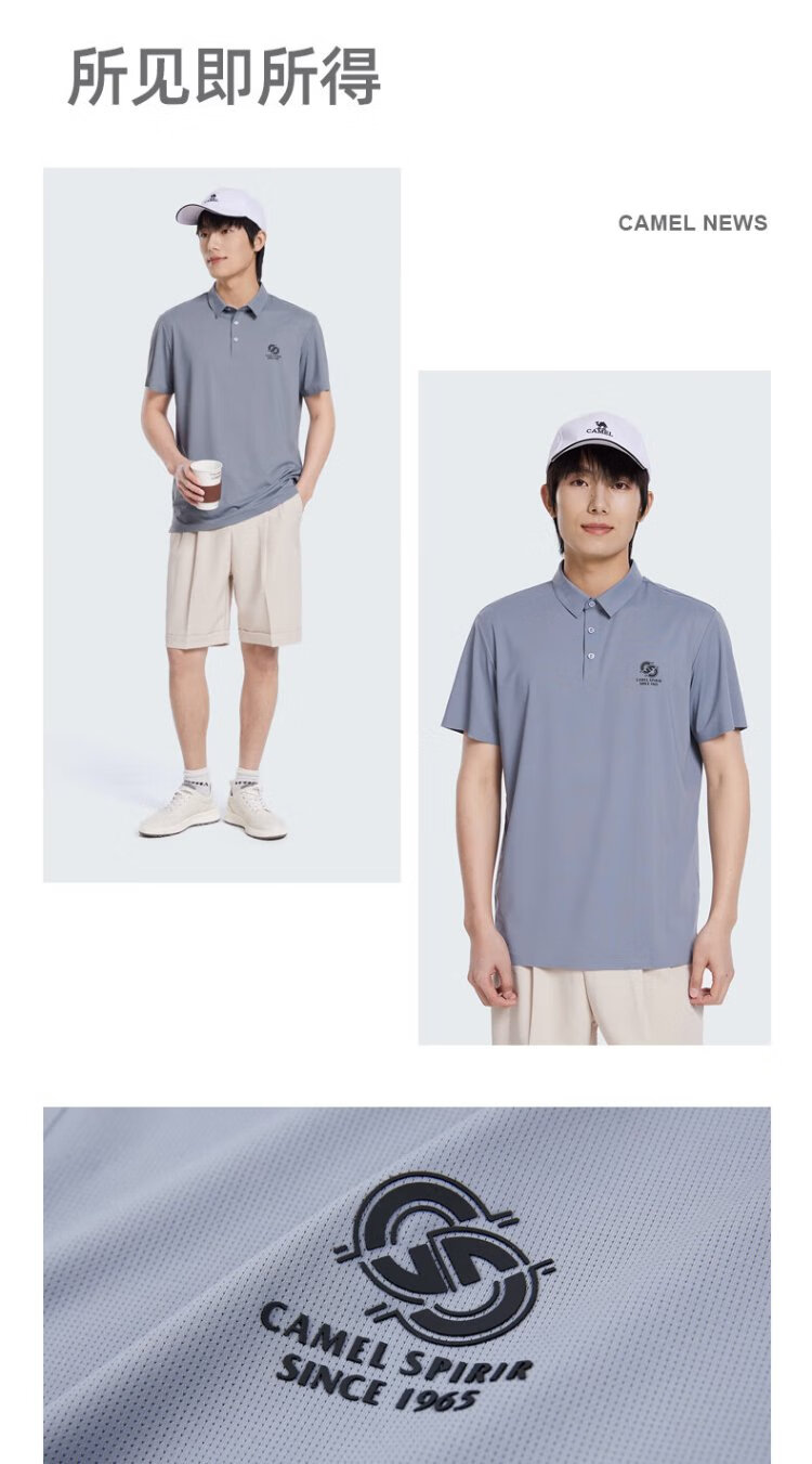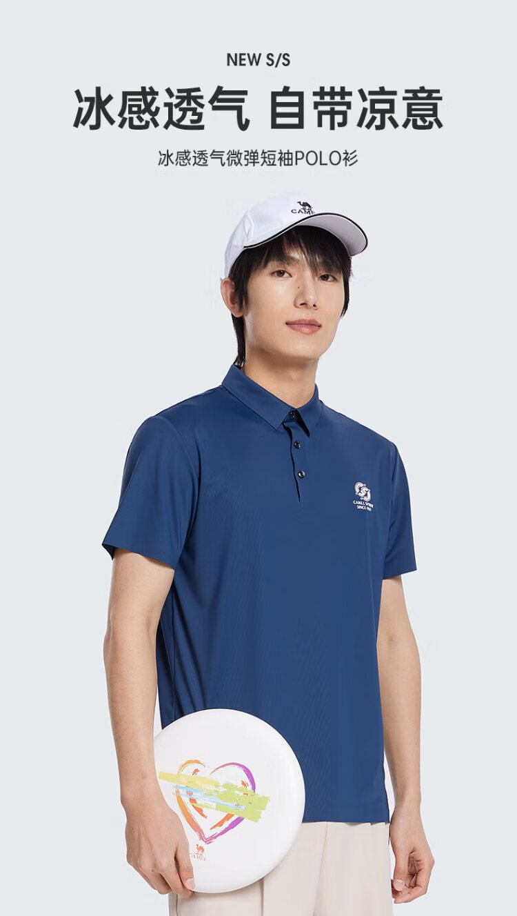 Camel (CAMEL) men's short-sleeved polo shirt men's summer comfortable ice-feel breathable half-sleeve M13BAQR093 sapphire blue M