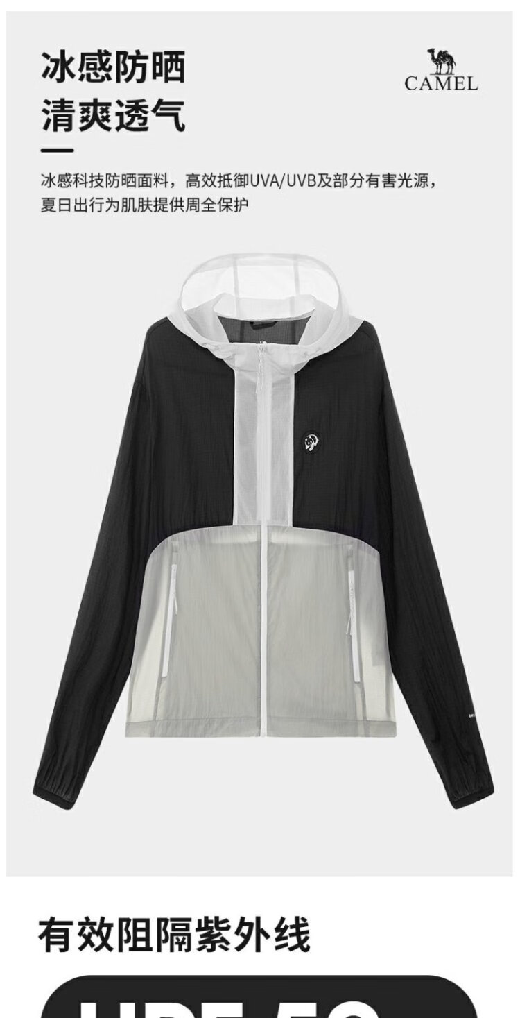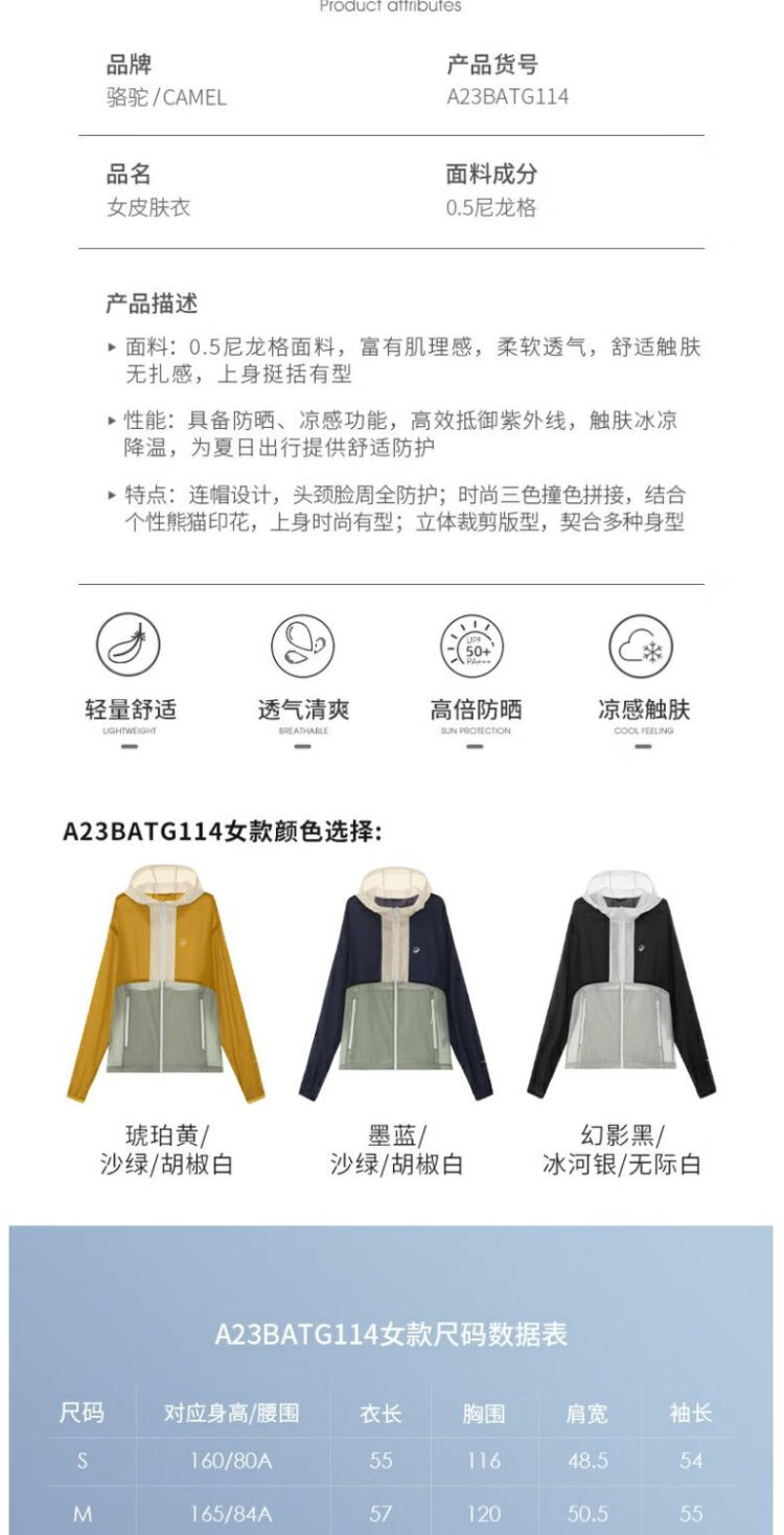 CAMEL [Three-Body] Camel Women's Sun Protection Clothing Spring and Summer New Women's Upf50+ Professional Cooling Sun Protection Clothing G114, Amber Yellow/Sand Green/Pepper White, Female S