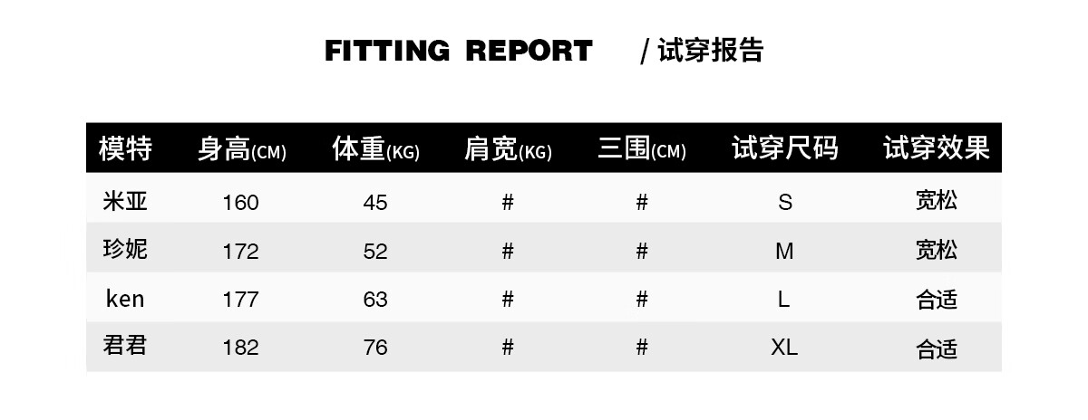 China (cm) 160-165/84-86 165-170 / 88-90 167-172 / 92-96 168-173 / 98-102 170-176 / 106-110