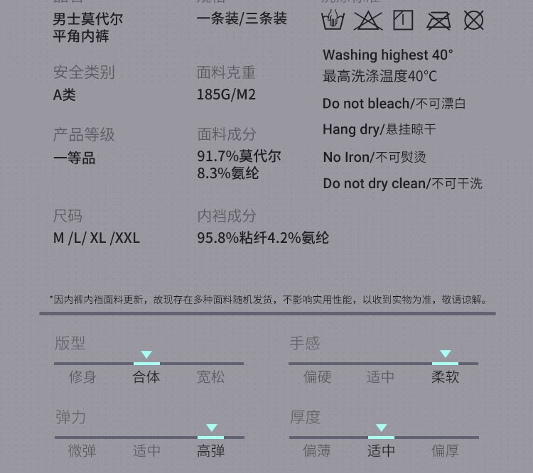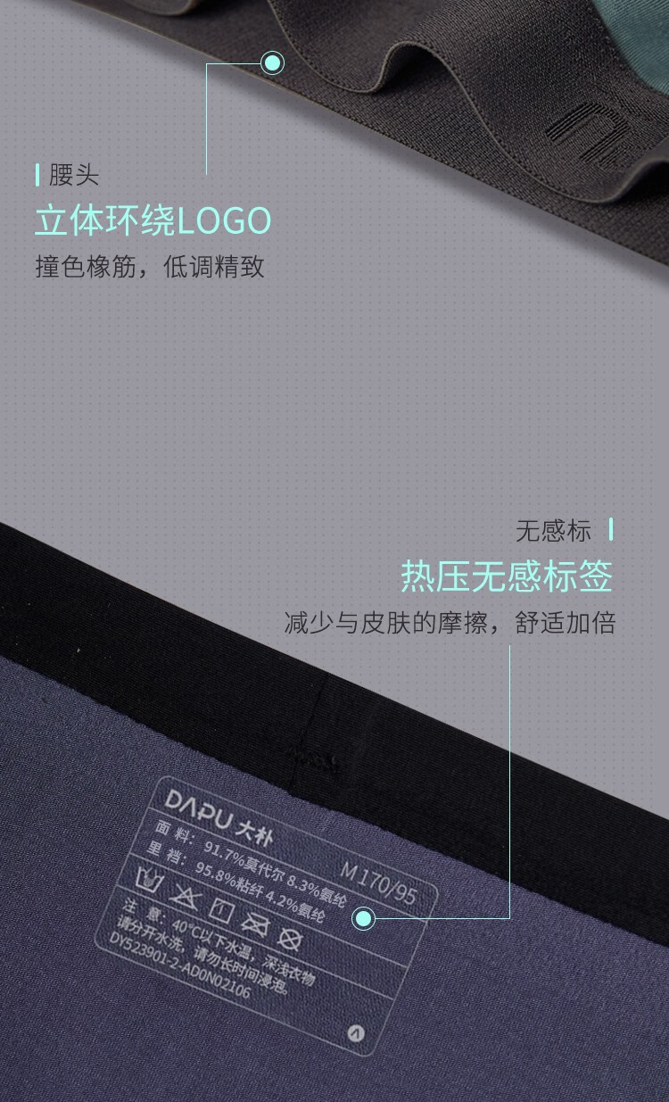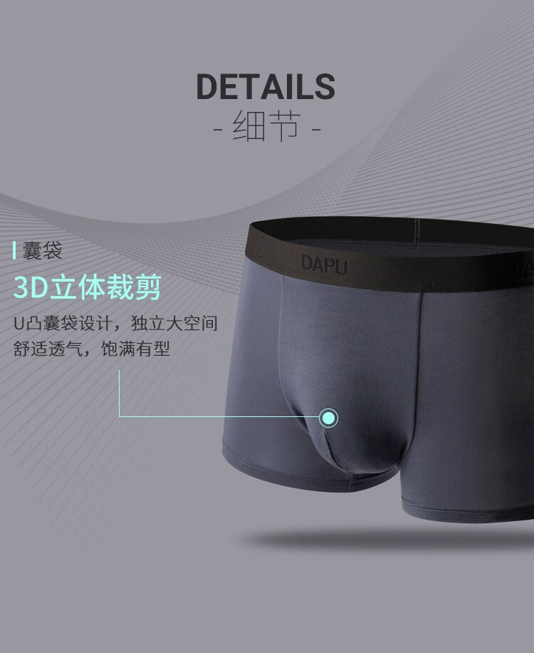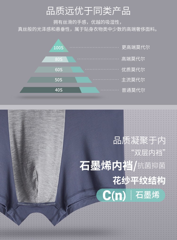 Dapu Neiwai 60s men's modal boxer briefs 3-pack men's underwear Class A safety standard fine denier graphene breathable 3-color pack (one each) 3 pairs in total XXL