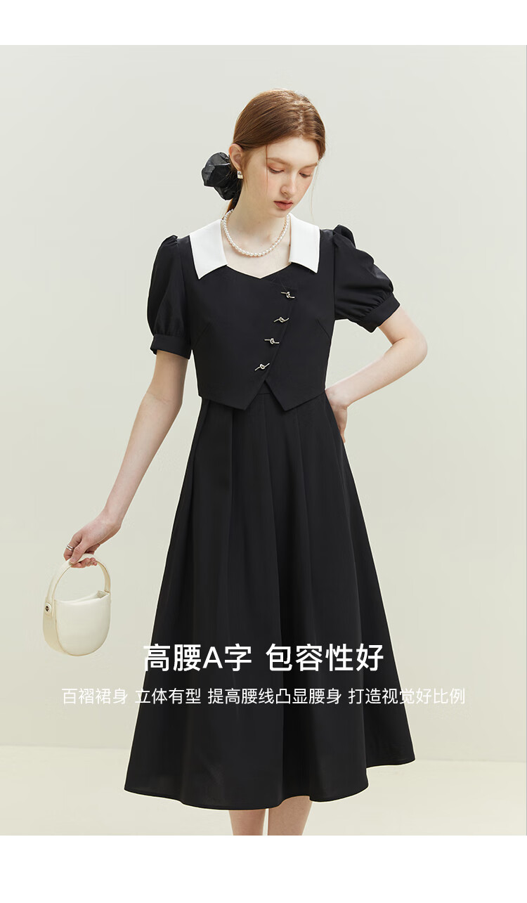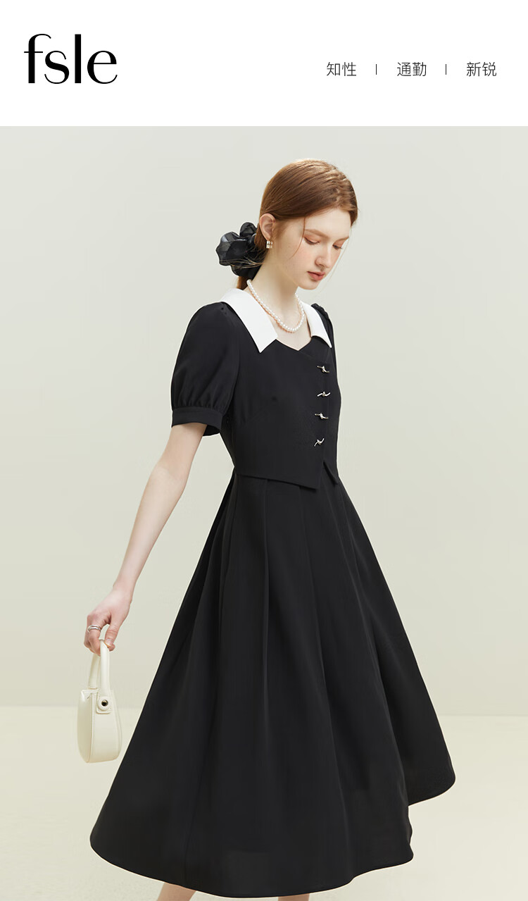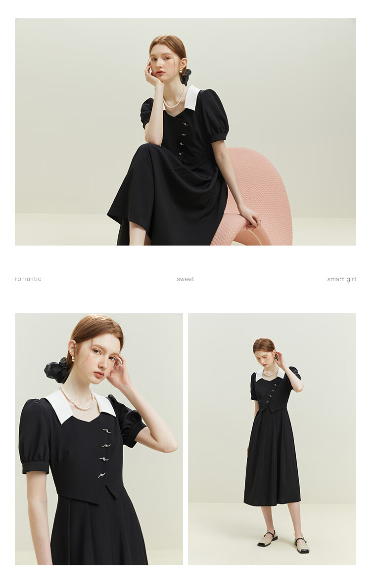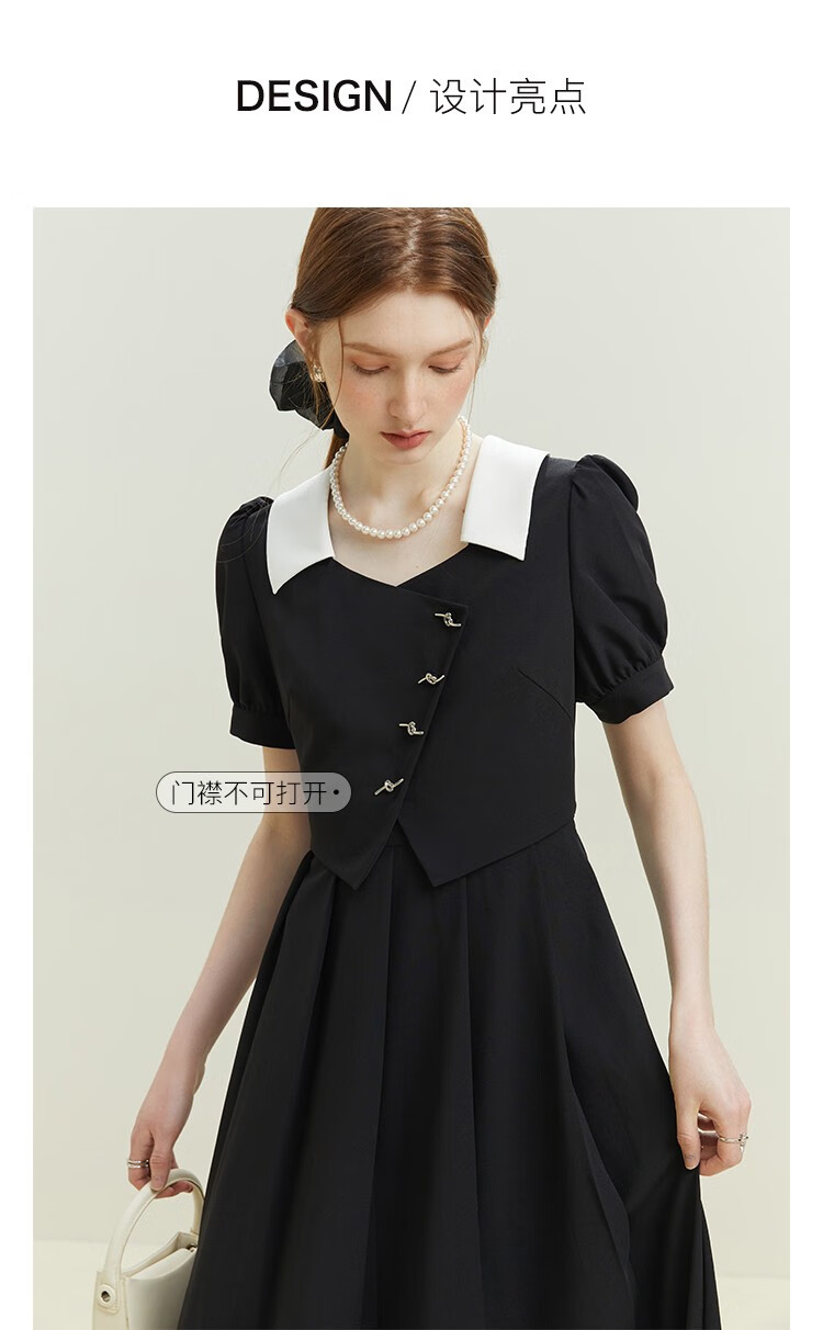 Fanslanen 23FS12399 fake two-piece French style dress for women summer new commuter slimming black XS