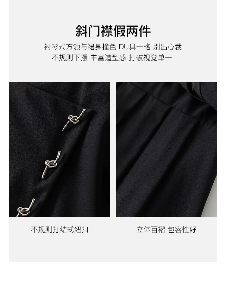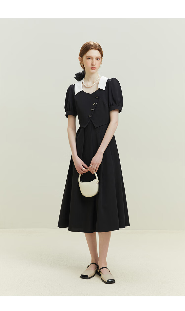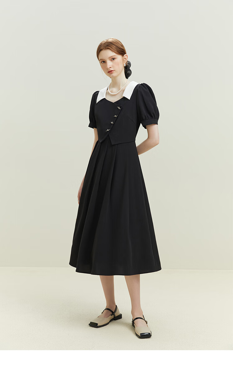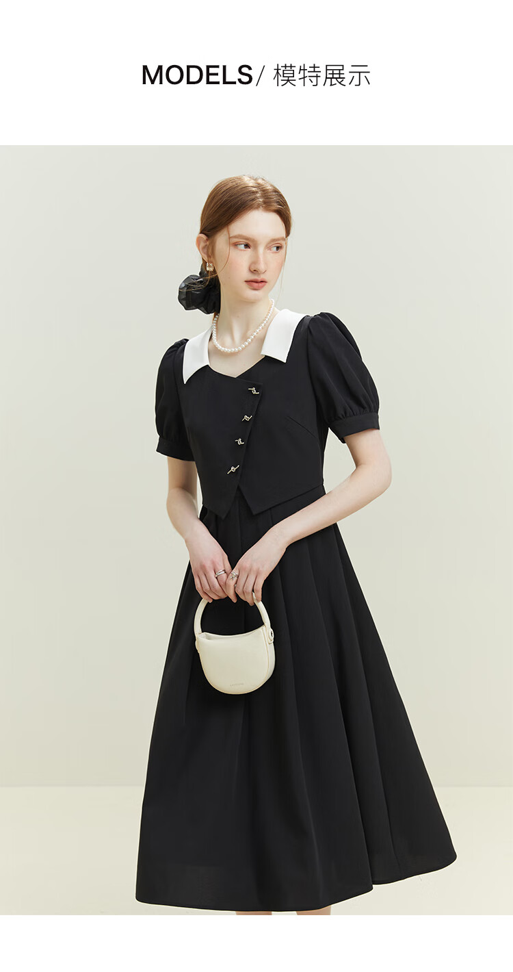 Fanslanen 23FS12399 fake two-piece French style dress for women summer new commuter slimming black XS