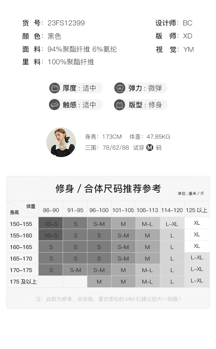 China (cm) 160-165/84-86 165-170 / 88-90 167-172 / 92-96 168-173 / 98-102 170-176 / 106-110