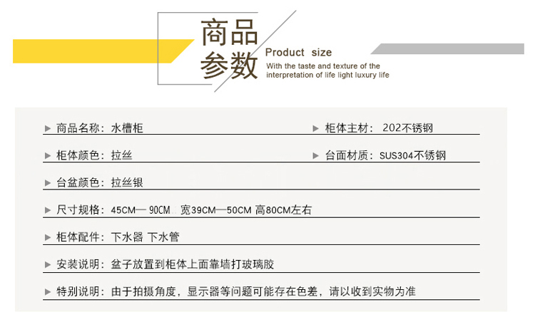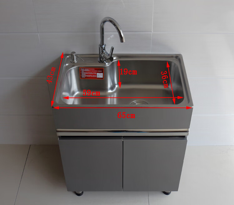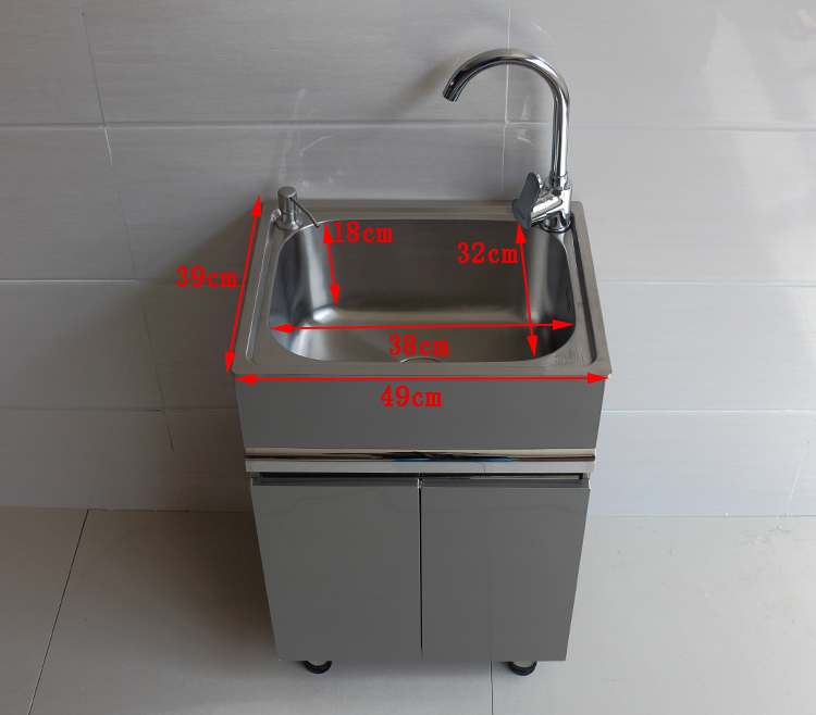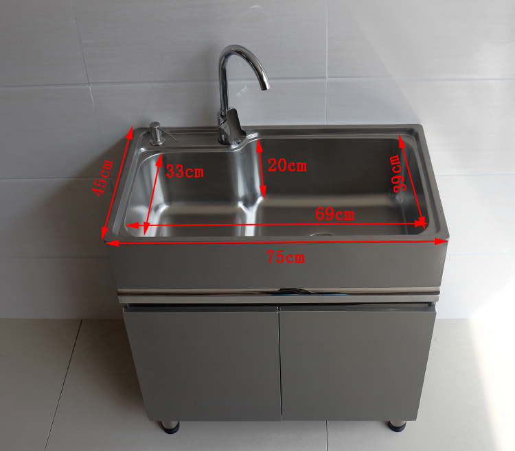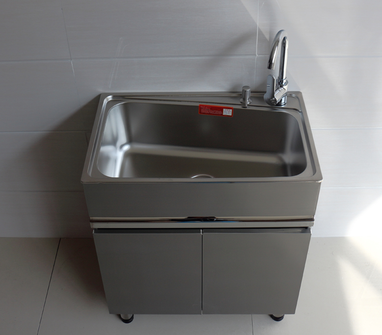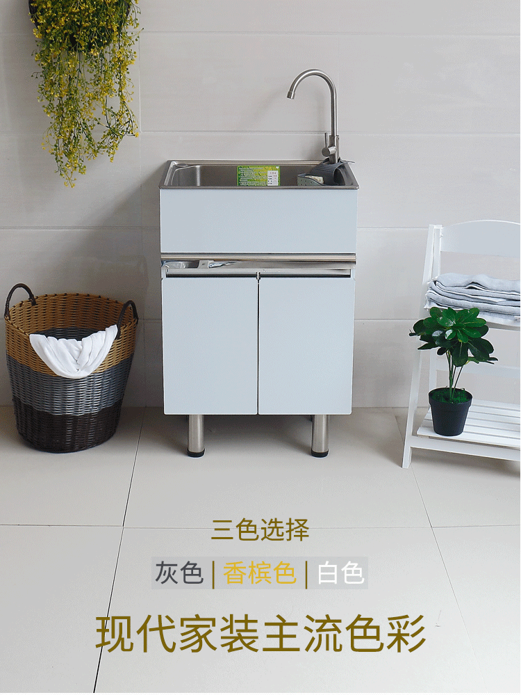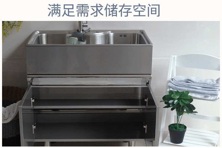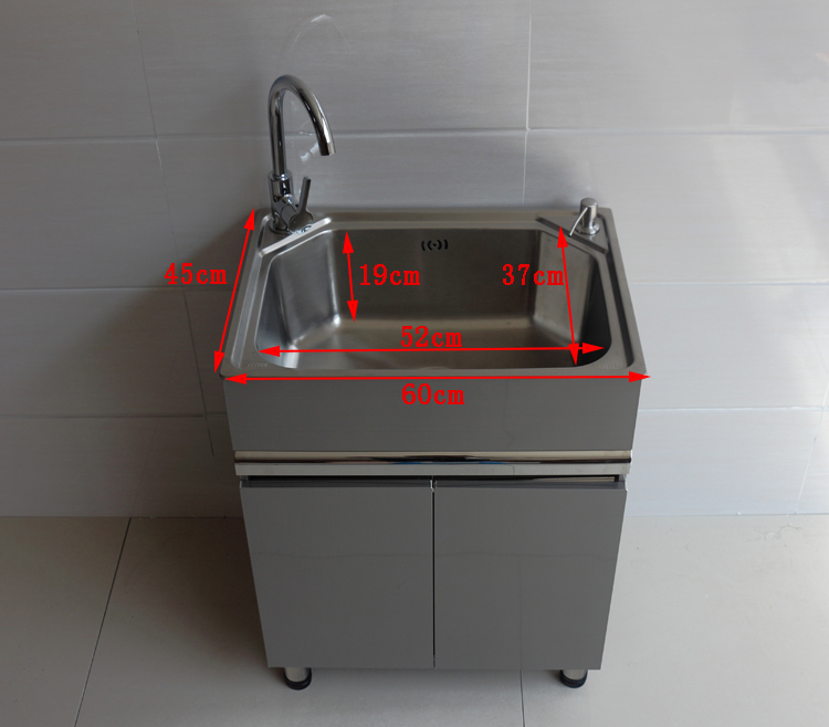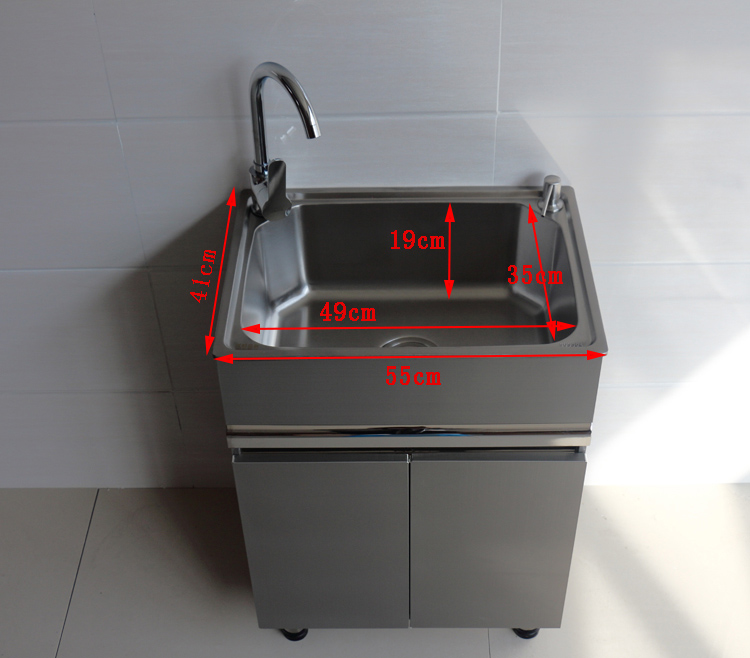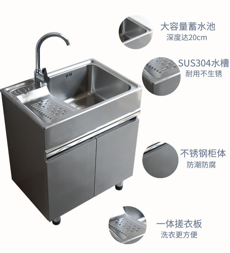 Floor-standing sink cabinet bathroom cabinet combination 304 stainless steel laundry cabinet with washboard wash basin balcony sink cabinet 120 washing machine partner 61cm (inclusive)-90cm (inclusive)