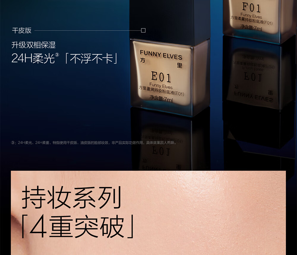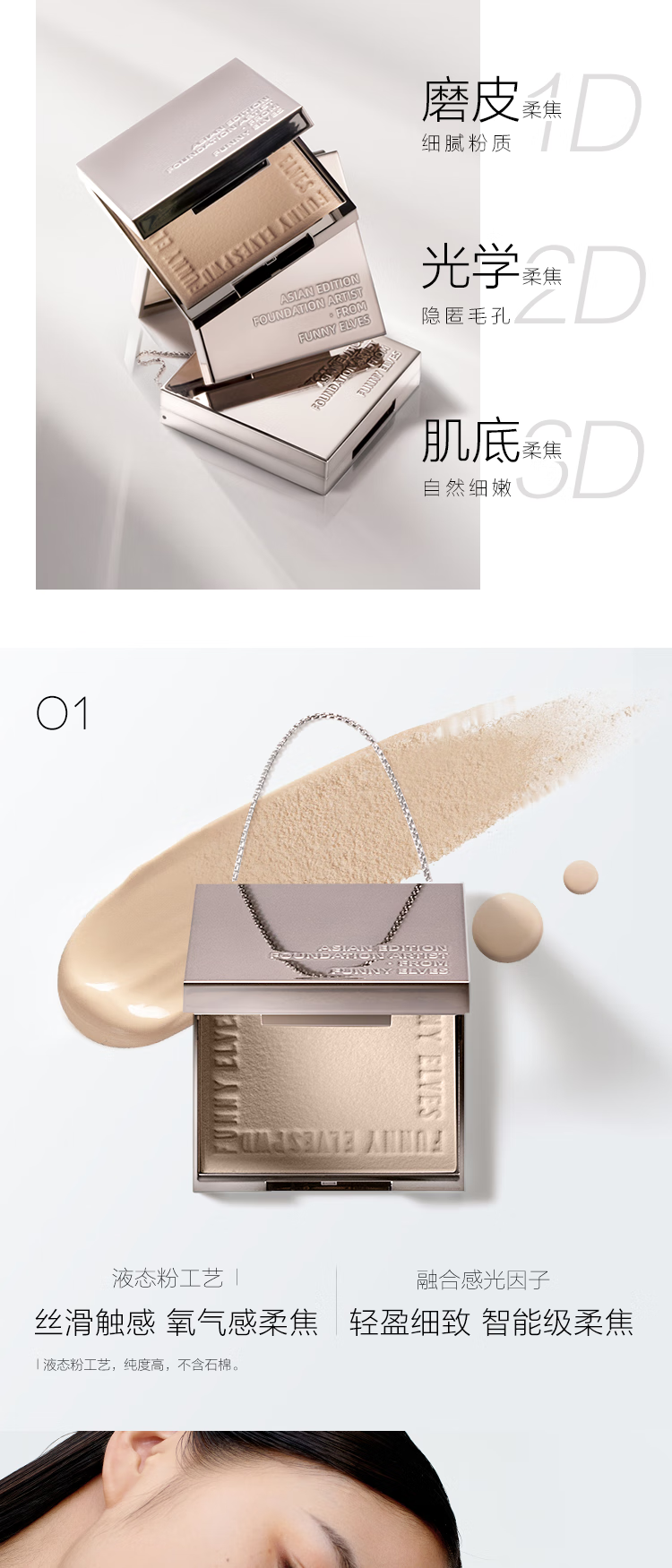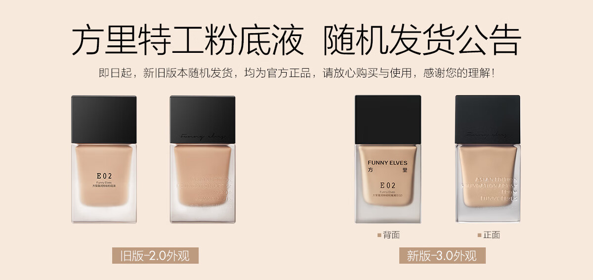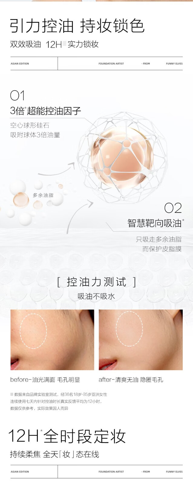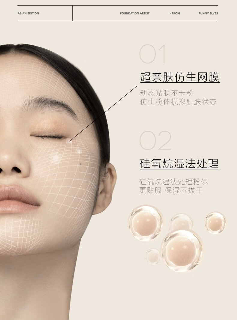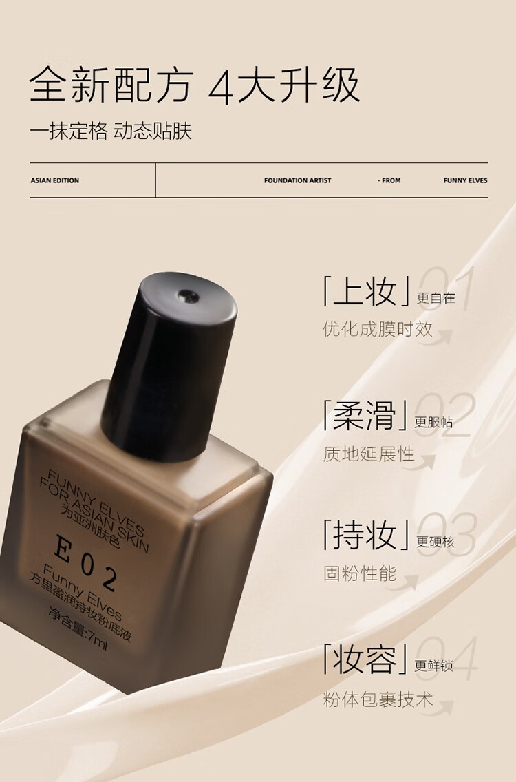 FUNNY ELVES FUNNY ELVES two-part soft focus honey powder, light and soft mist, long-lasting liquid foundation, non-removing makeup, 3.5g+7ml e02
