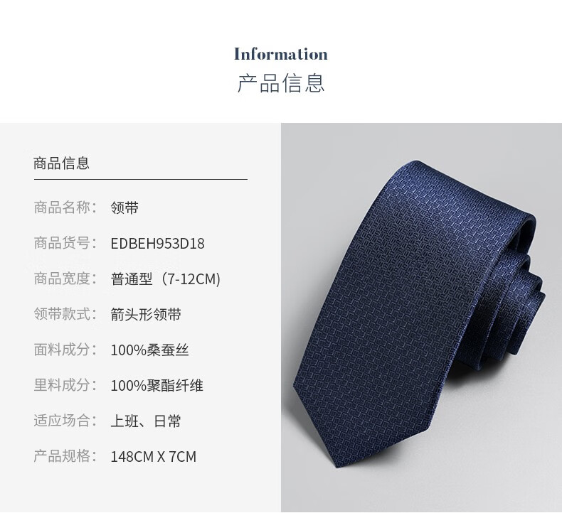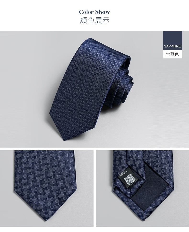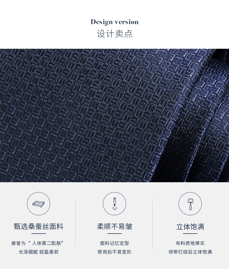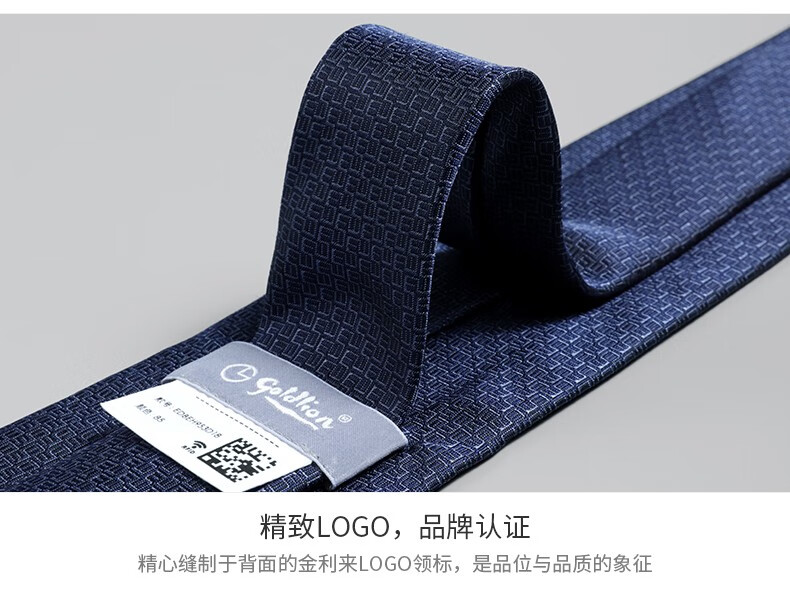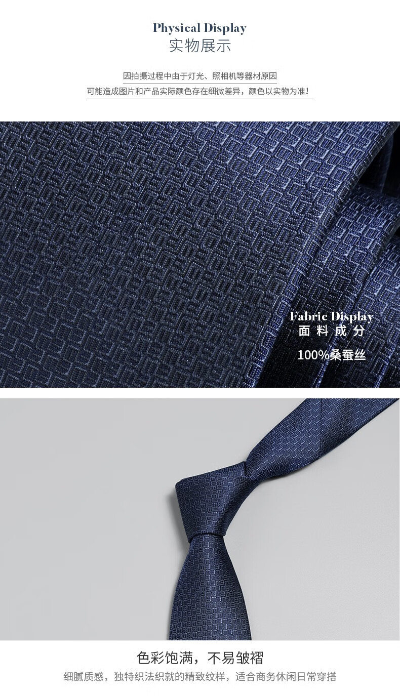 Goldlion Men's Mulberry Silk Geometric Pattern Tie Men's Business Casual Silk Tie Handmade Sapphire Blue-85