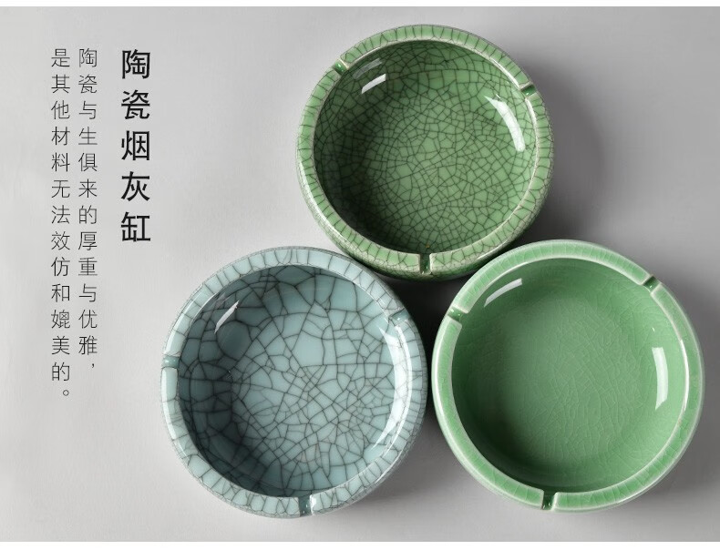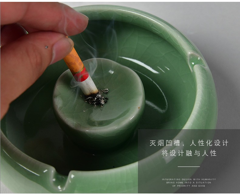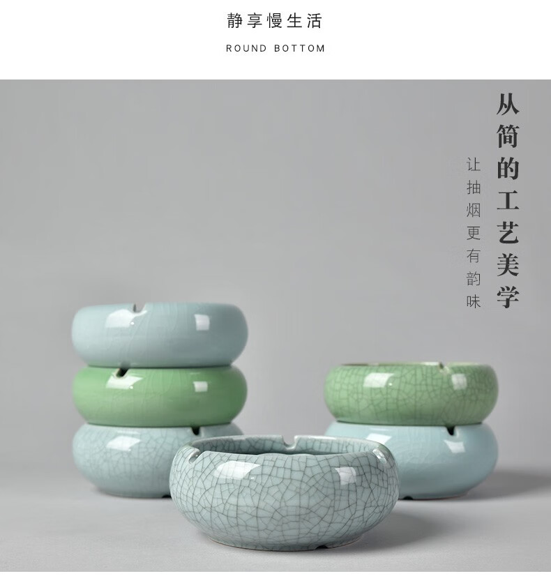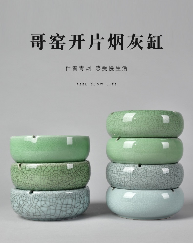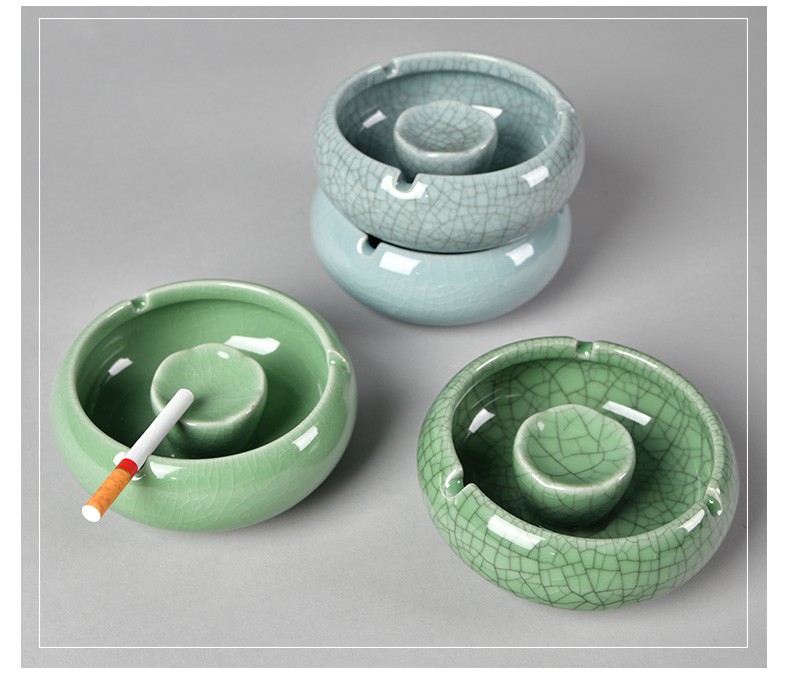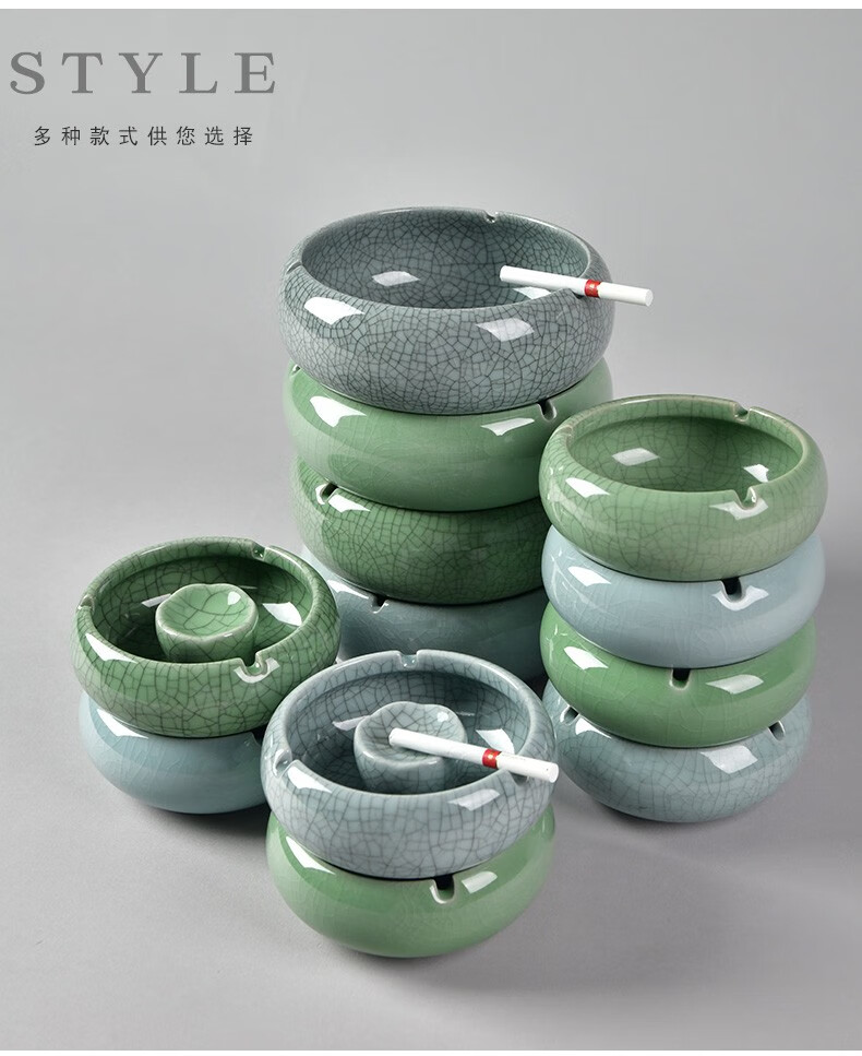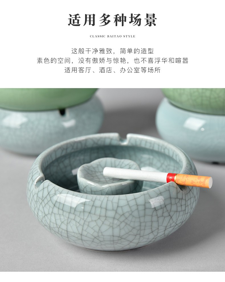 Haoxiang Ge Kiln Open Piece Creative Personality Fashionable Ceramic Ashtray Home Living Room Office Chinese Style Anti-Fly Ash Large - Ge Kiln Open Piece Pink Blue - Ashtray