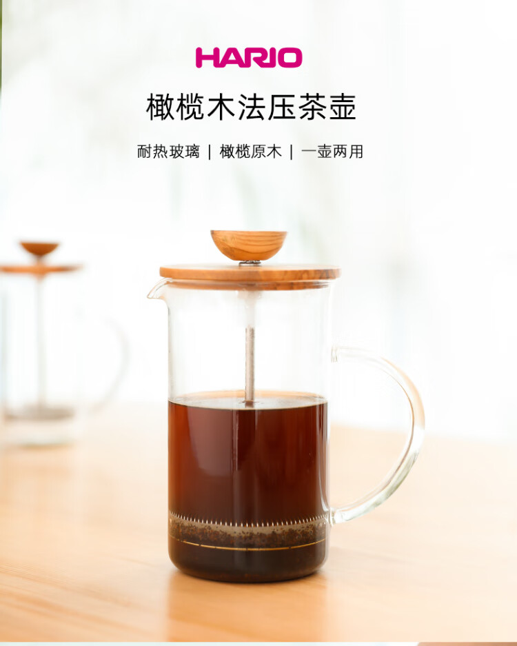 HARIO French press heat-resistant glass olive wood coffee pot teapot imported from Japan THW