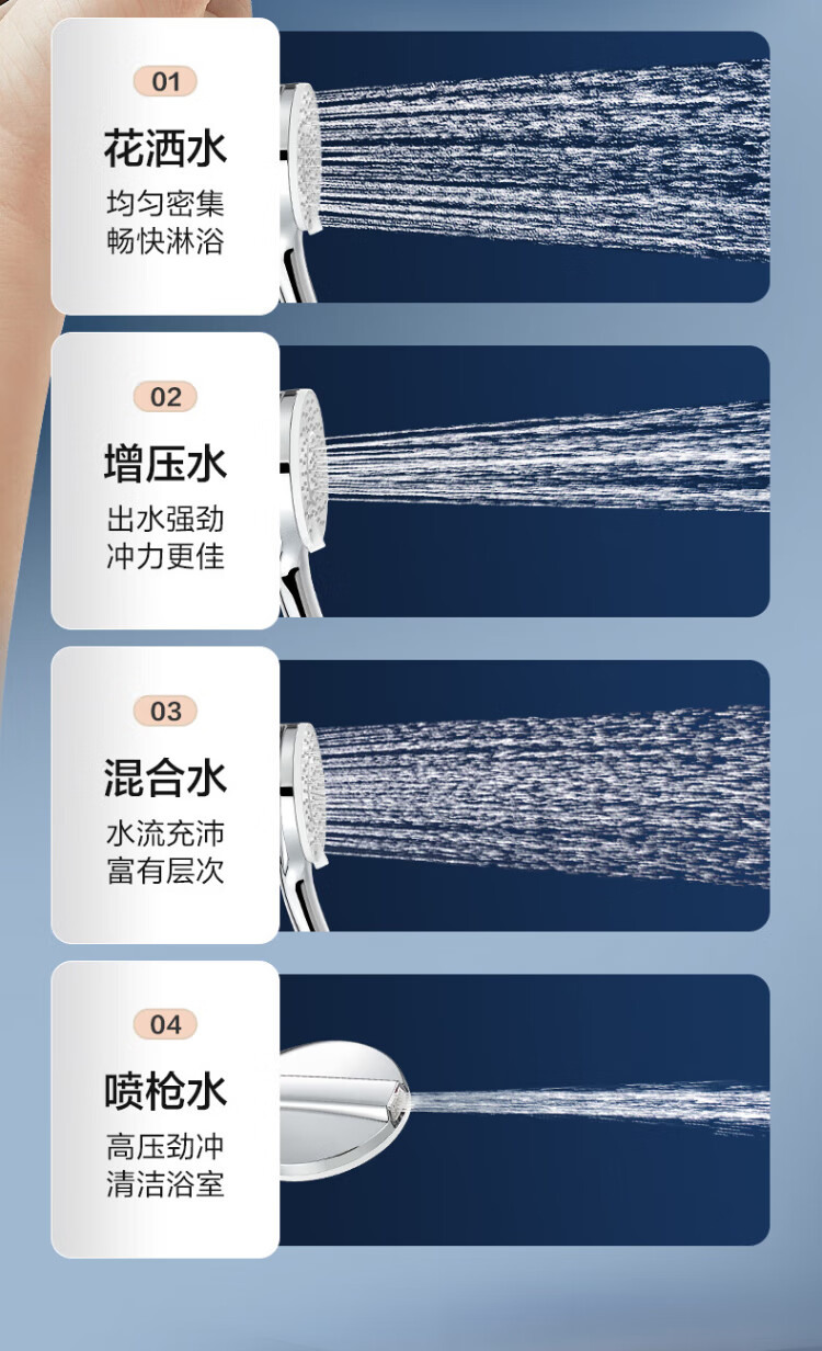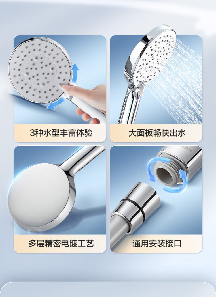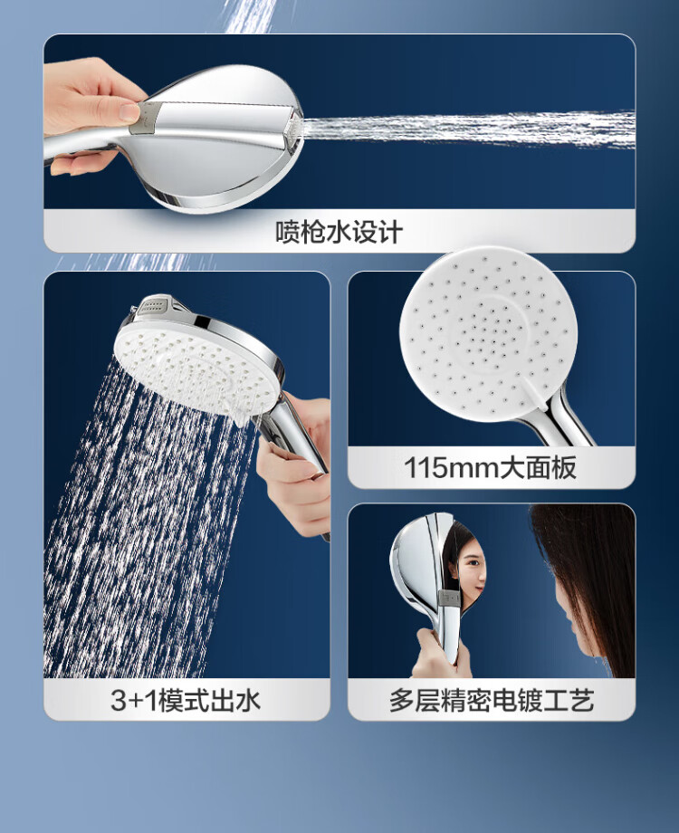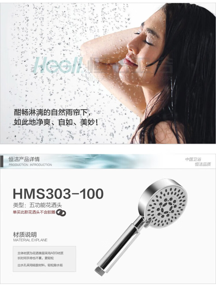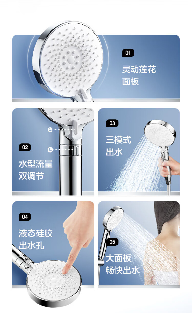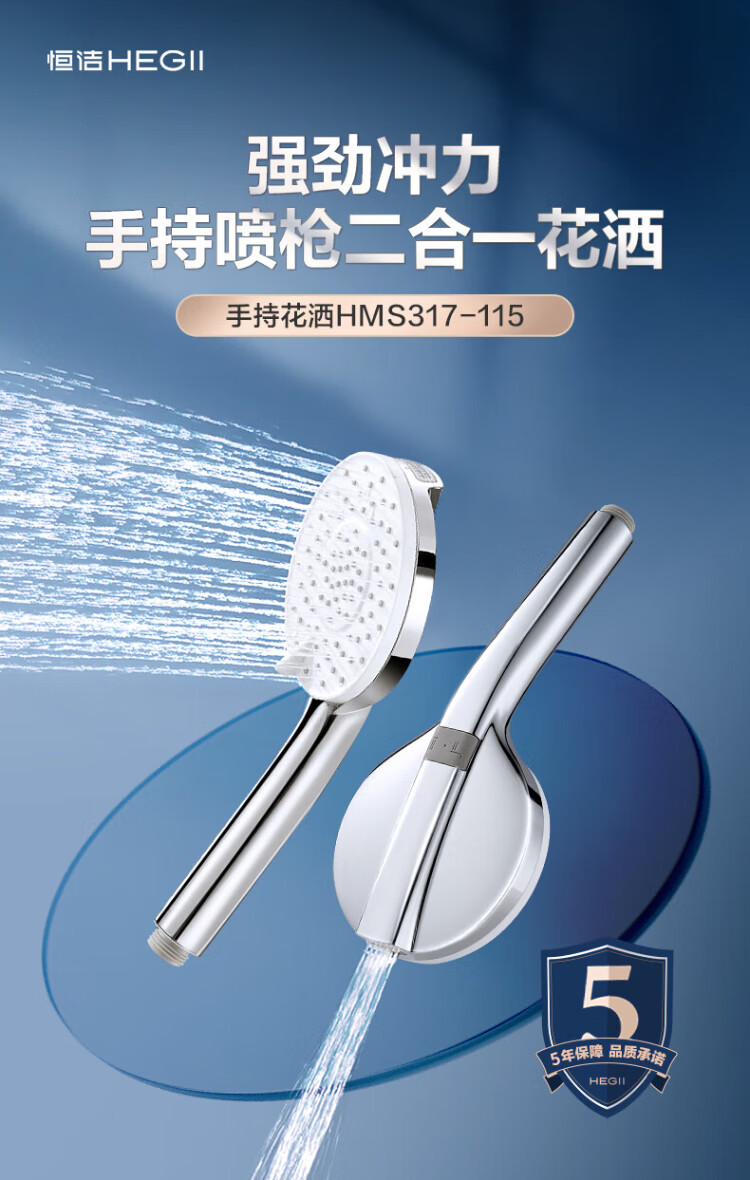 Hengjie shower head convenient descaling silicone outlet precision electroplating nozzle [Five functions + anti-scald shell] HMS303-100