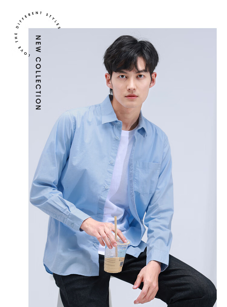 Jeanswest Light Business Men's Casual Shirt Spring and Autumn Youth Simple Solid Color Light Business Stretch Long Sleeve Shirt JW Black 2010 M