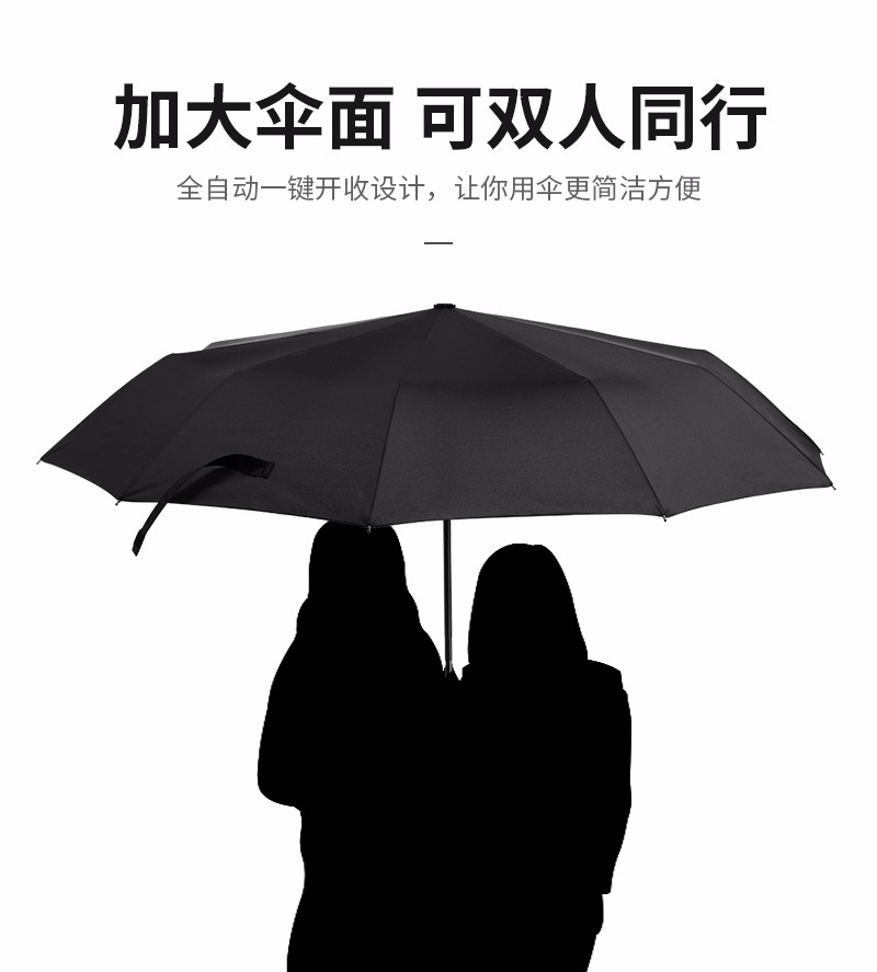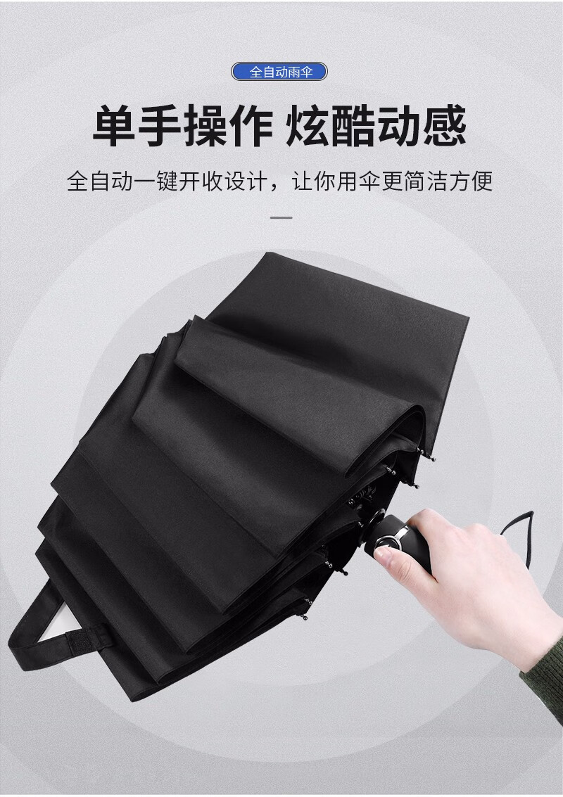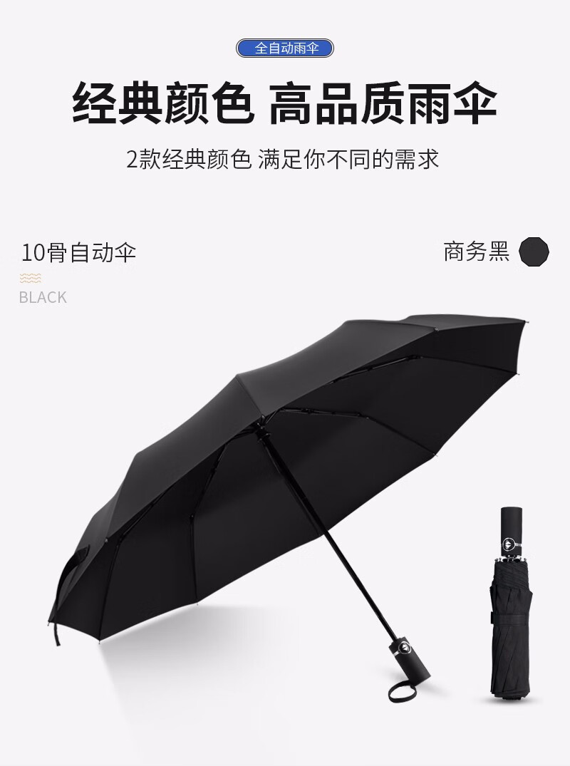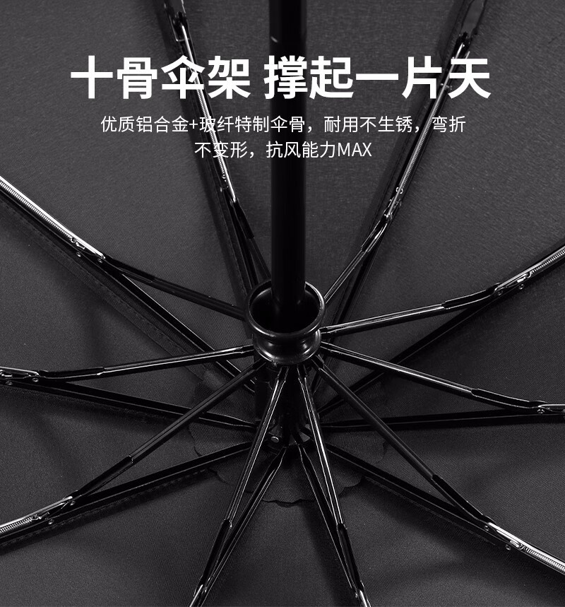 Jingxianju Automatic Umbrella Large Reinforced Thickened Strong Wind-Resistant Umbrella Fully Automatic Super Shade Men's Sun Umbrella Rain or Shine [Noble Black] Fully Automatic Enlargement - 10 Ribs