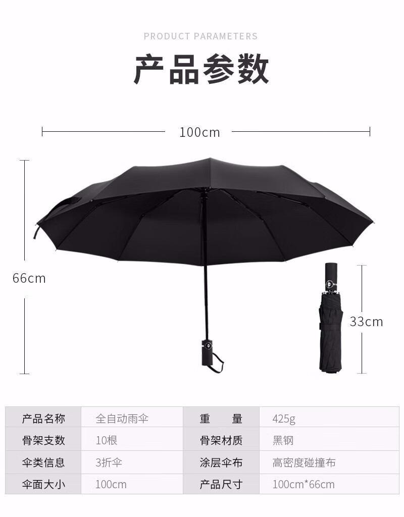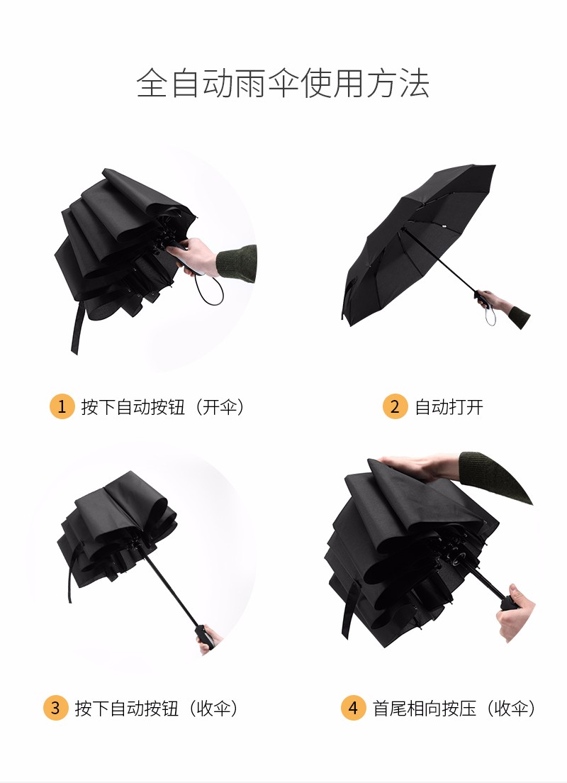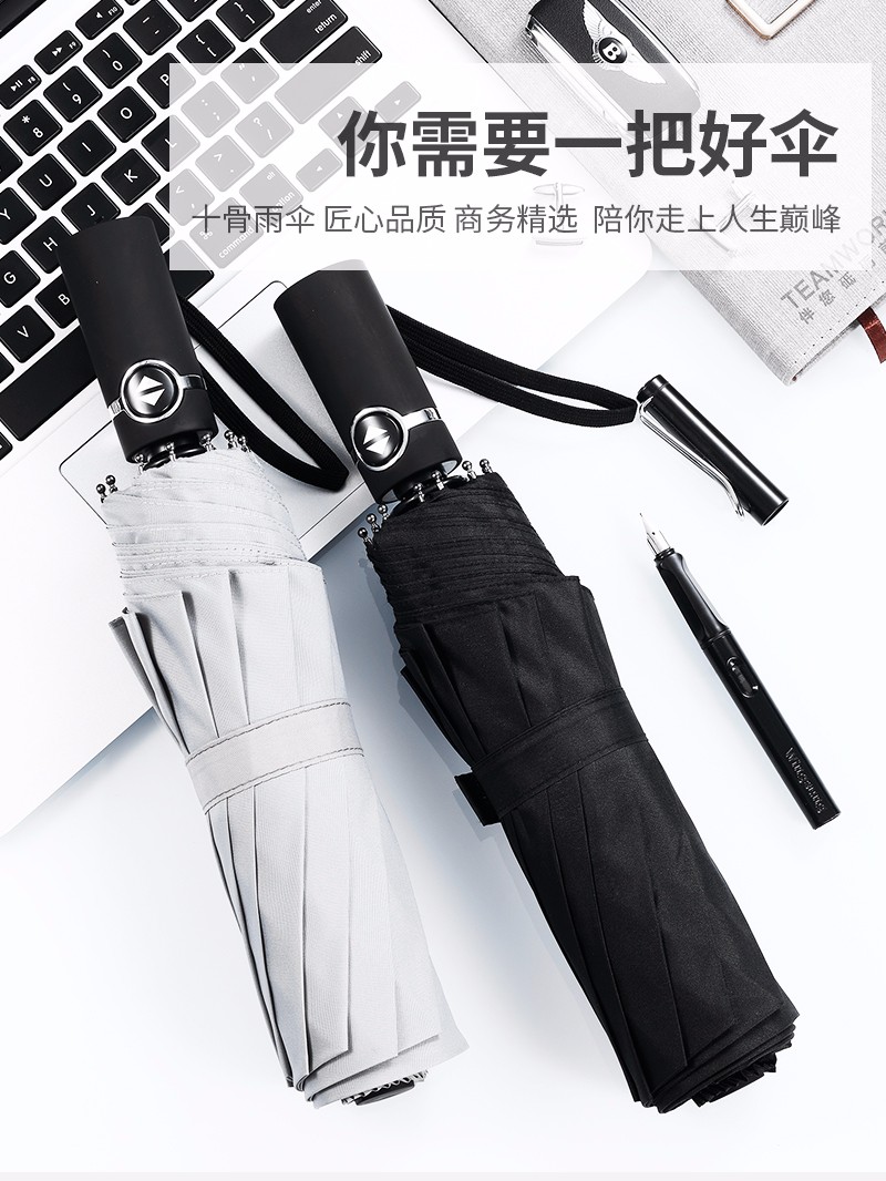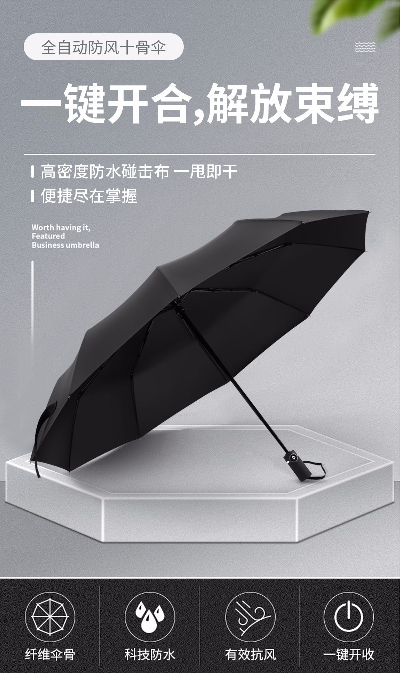 Jingxianju Automatic Umbrella Large Reinforced Thickened Strong Wind-Resistant Umbrella Fully Automatic Super Shade Men's Sun Umbrella Rain or Shine [Noble Black] Fully Automatic Enlargement - 10 Ribs