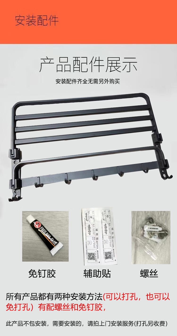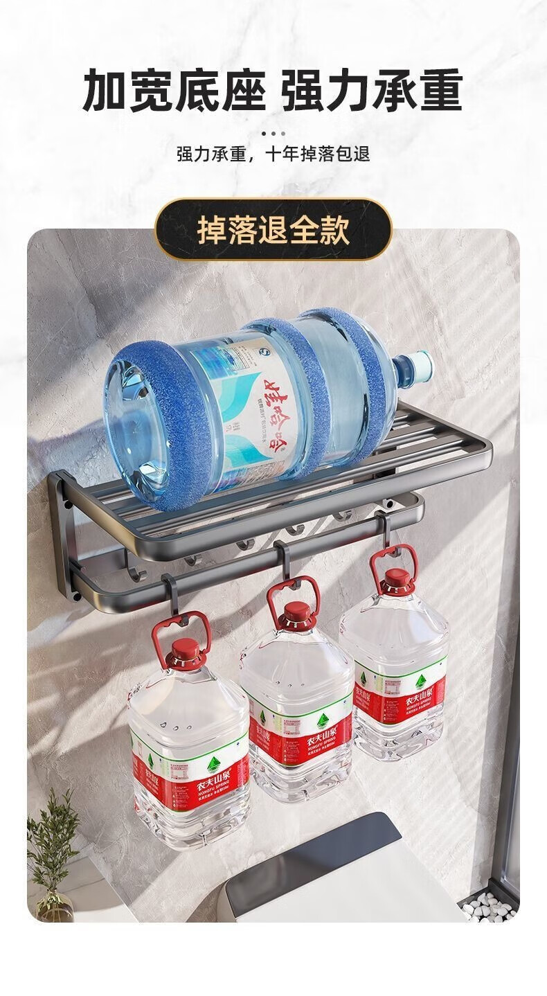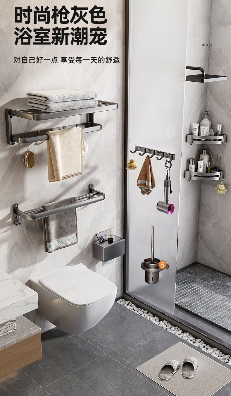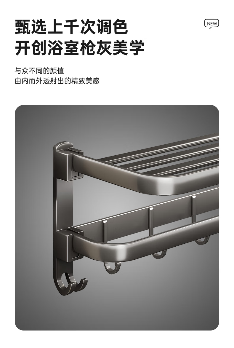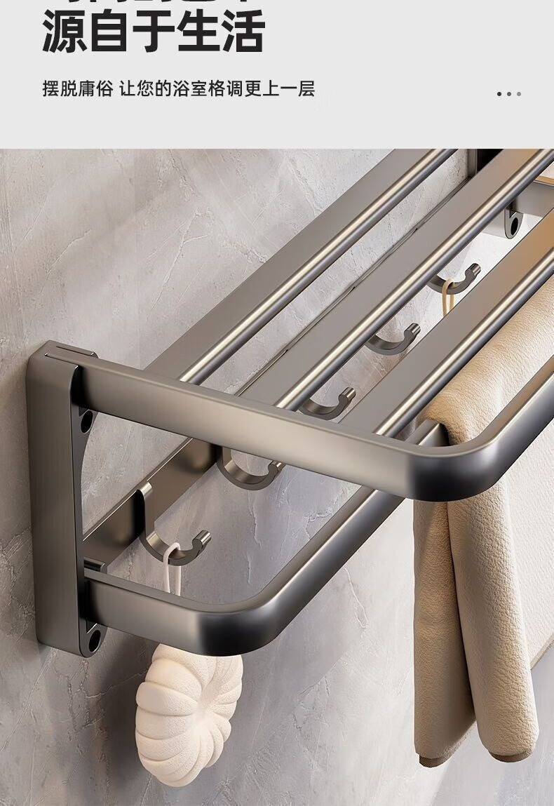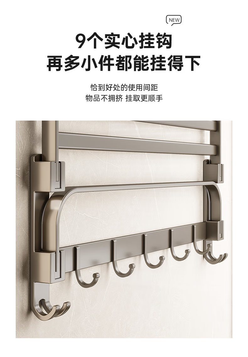 九牧王世家JOMOMW加厚太空铝折叠浴巾架枪灰毛巾架免打孔卫生间壁挂置物角架 枪灰加厚六件套9钩