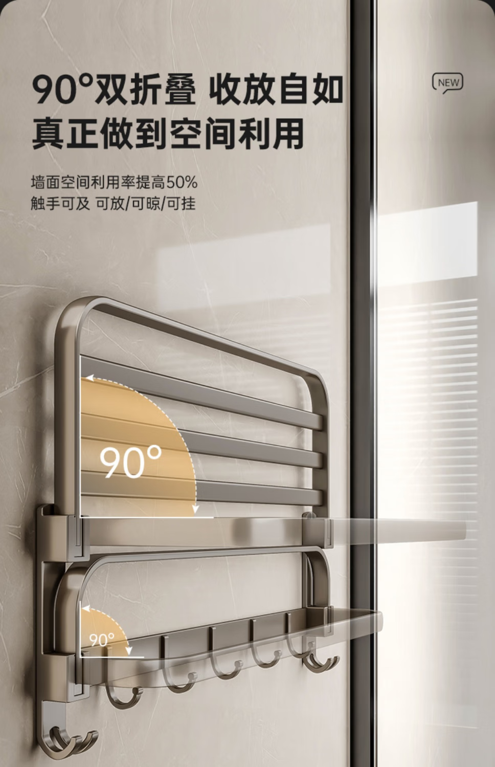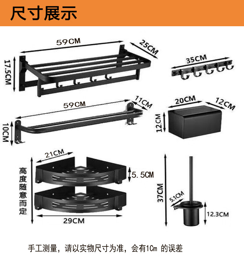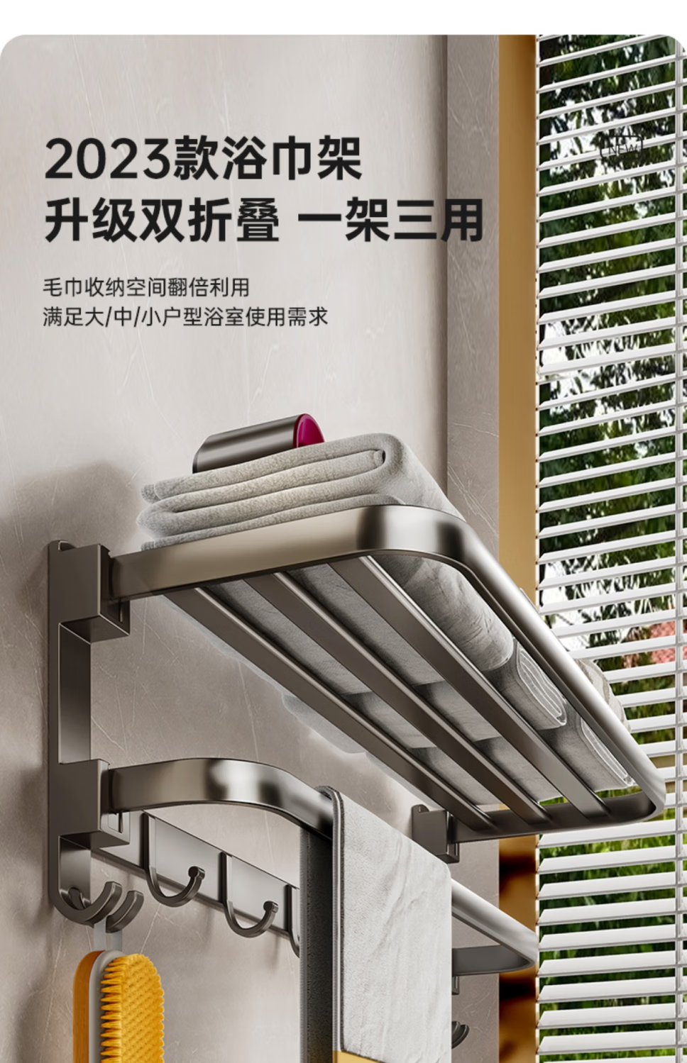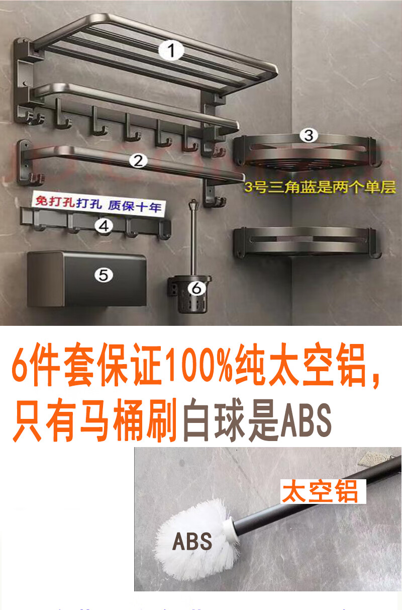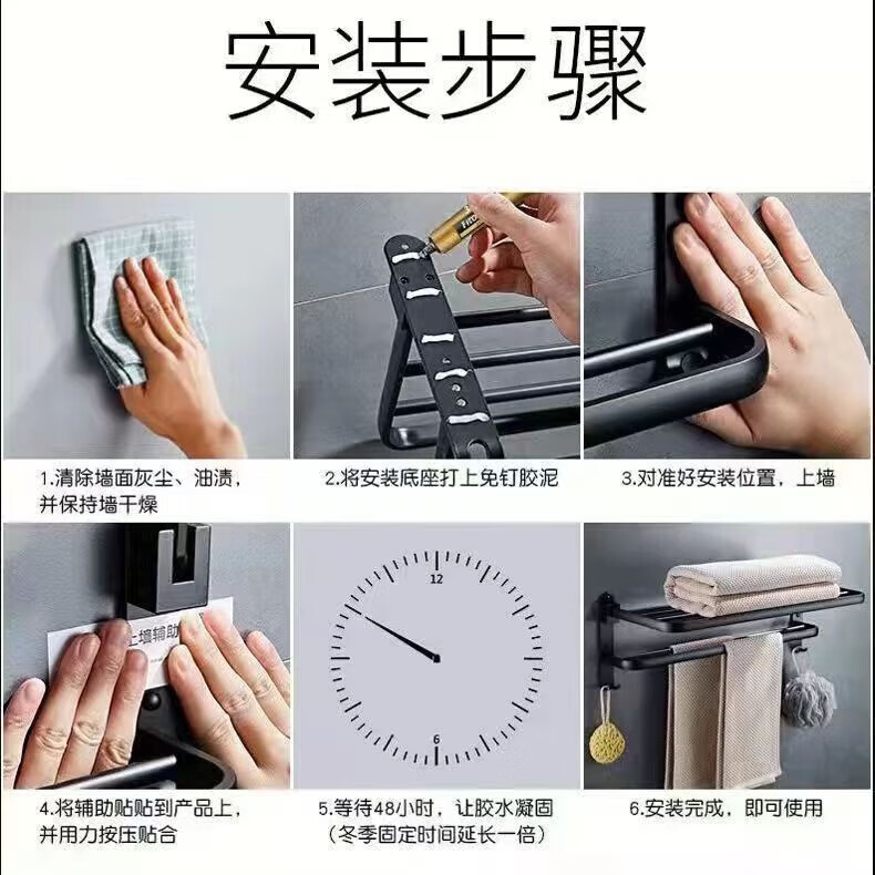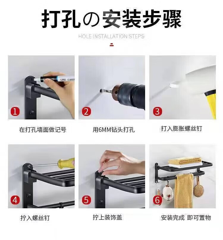 九牧王世家JOMOMW加厚太空铝折叠浴巾架枪灰毛巾架免打孔卫生间壁挂置物角架 枪灰加厚六件套9钩