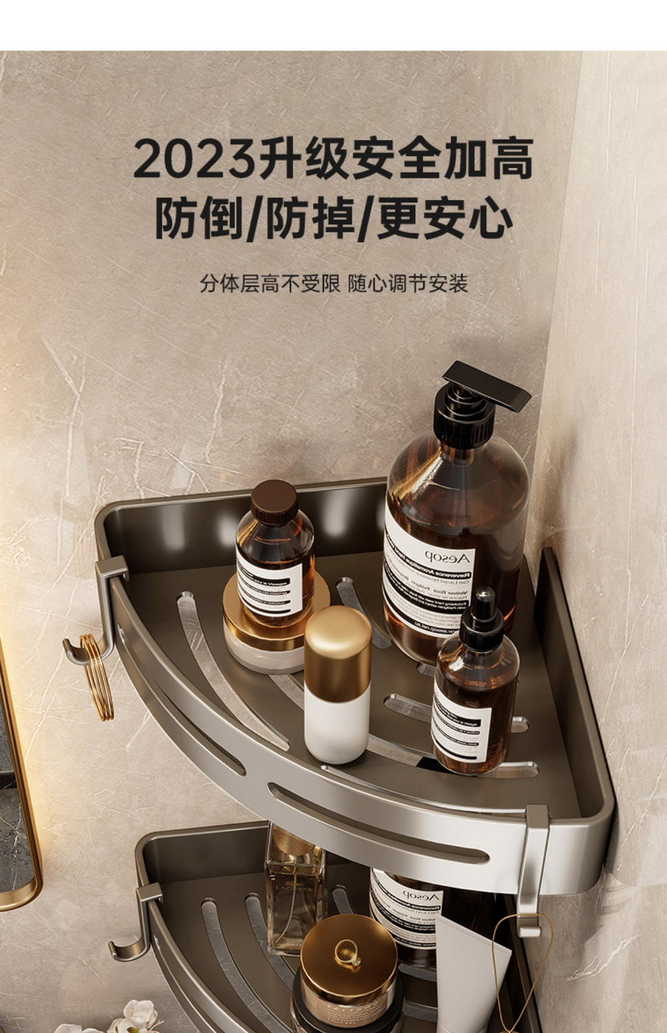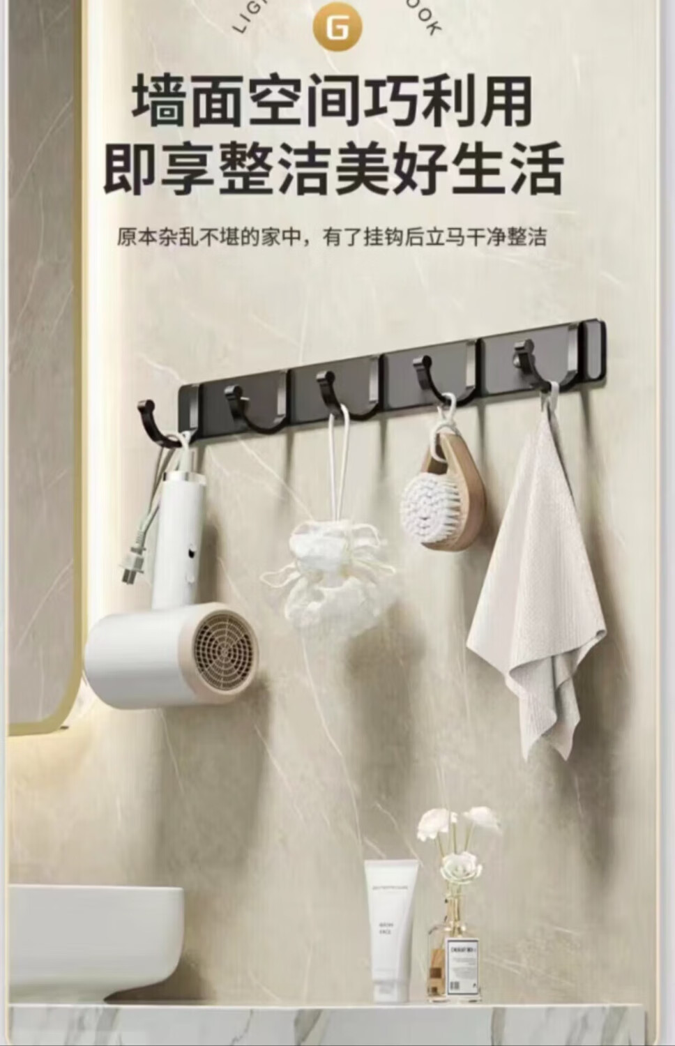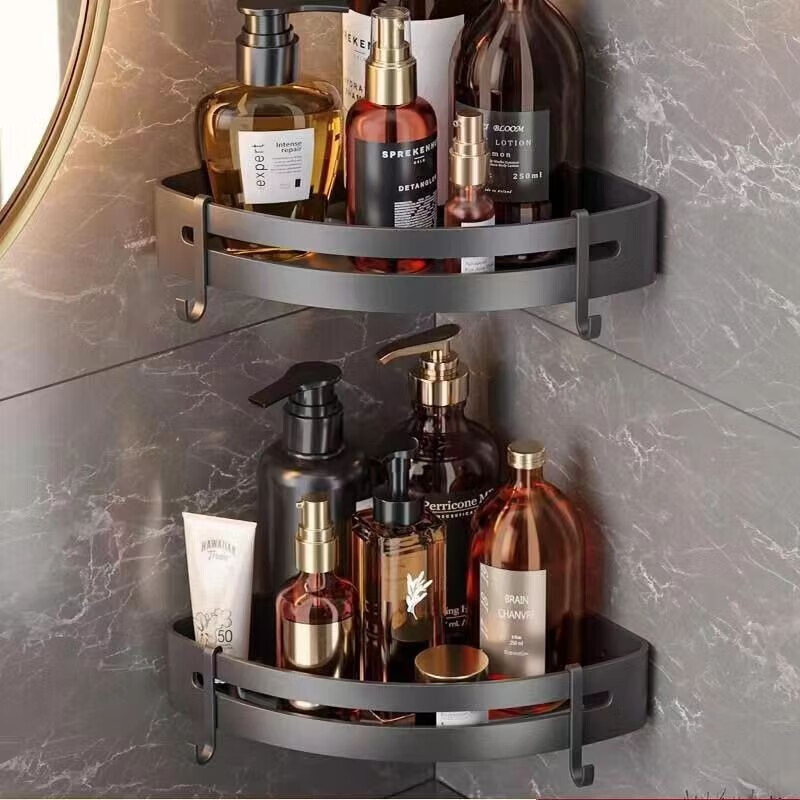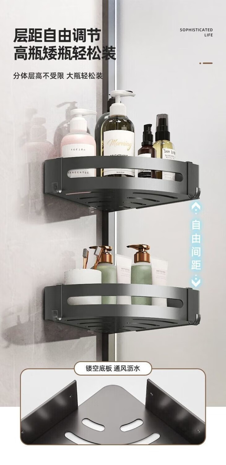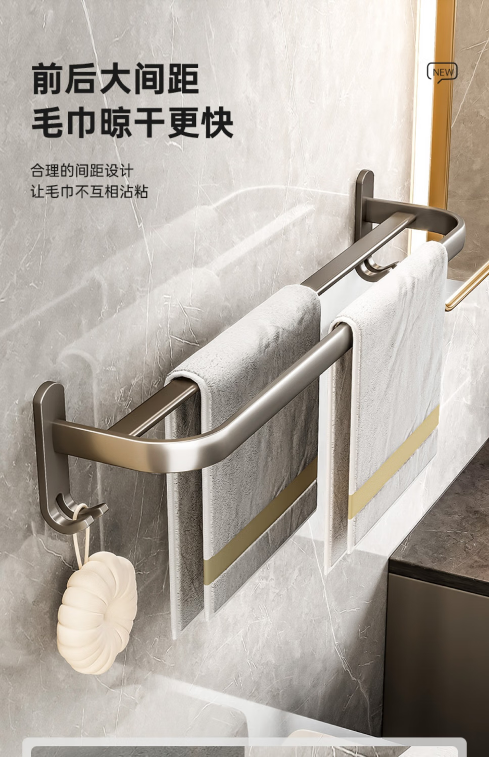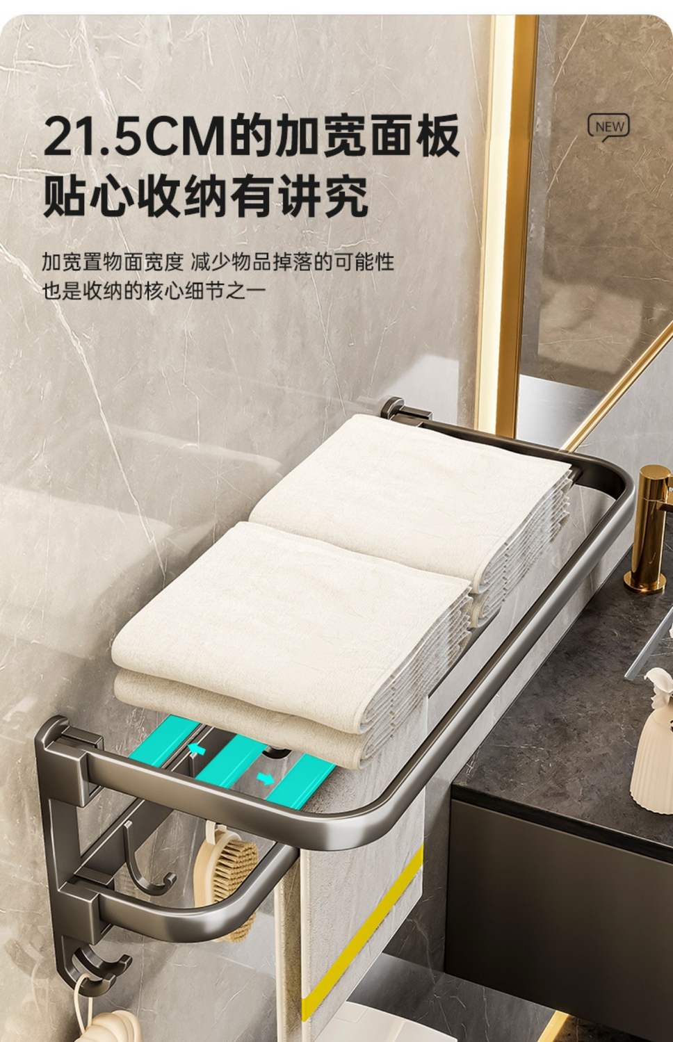 九牧王世家JOMOMW加厚太空铝折叠浴巾架枪灰毛巾架免打孔卫生间壁挂置物角架 枪灰加厚六件套9钩