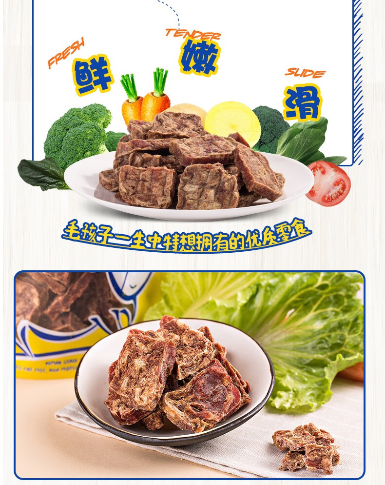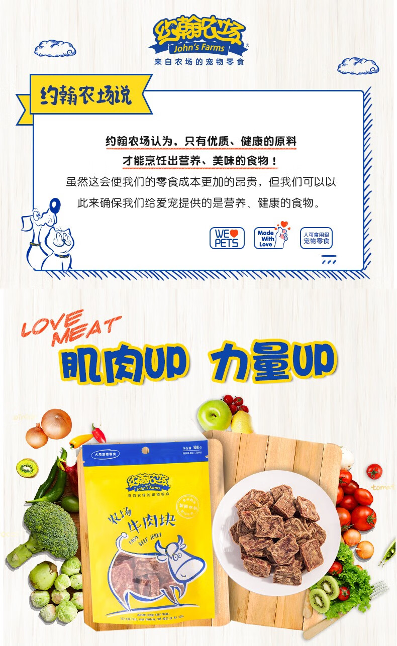 约翰农场 狗狗零食牛肉块100g*2包 磨牙棒牛肉条牛肉粒训犬奖励小型犬宠物零食 牛肉块100g*2包