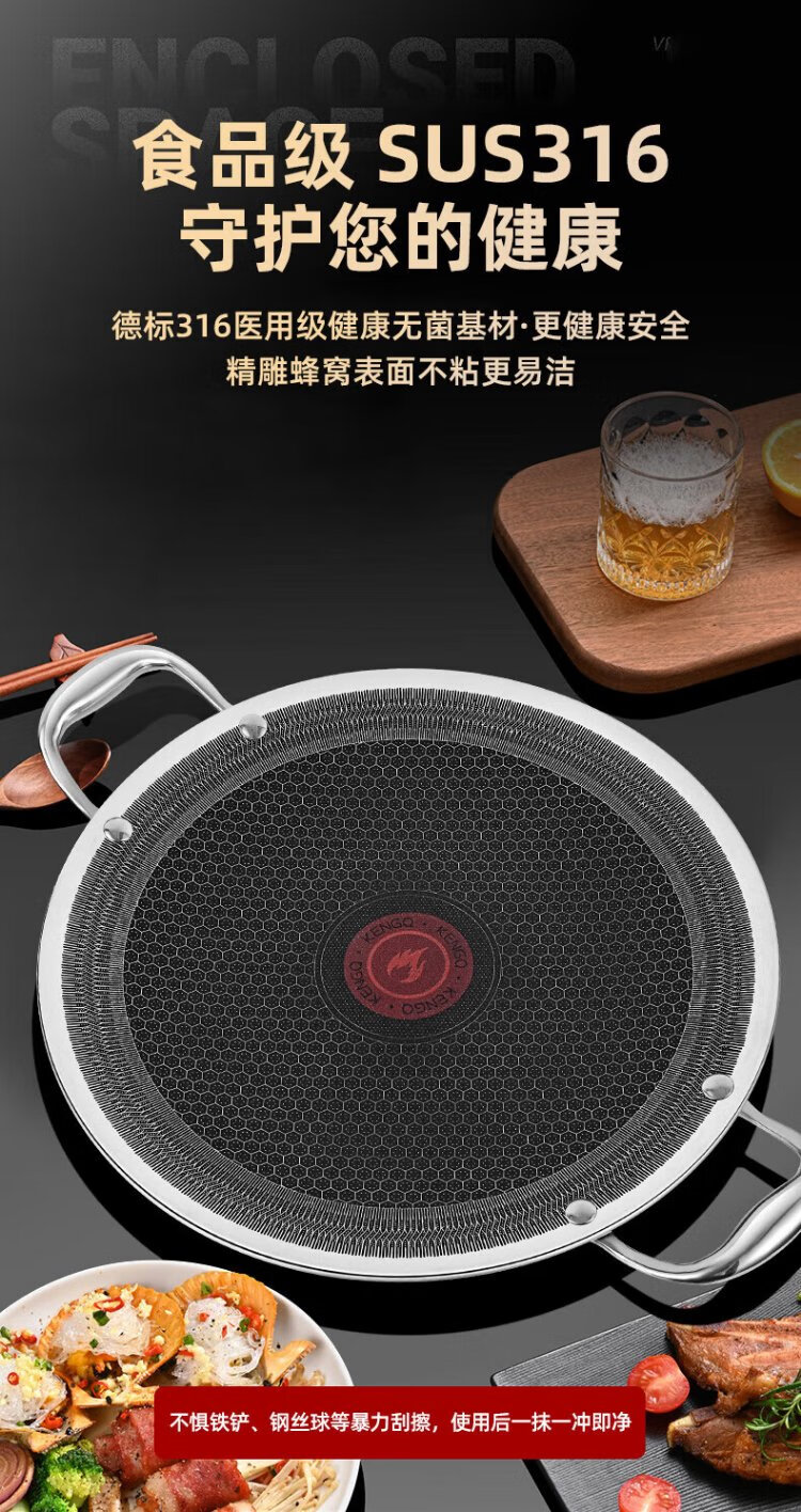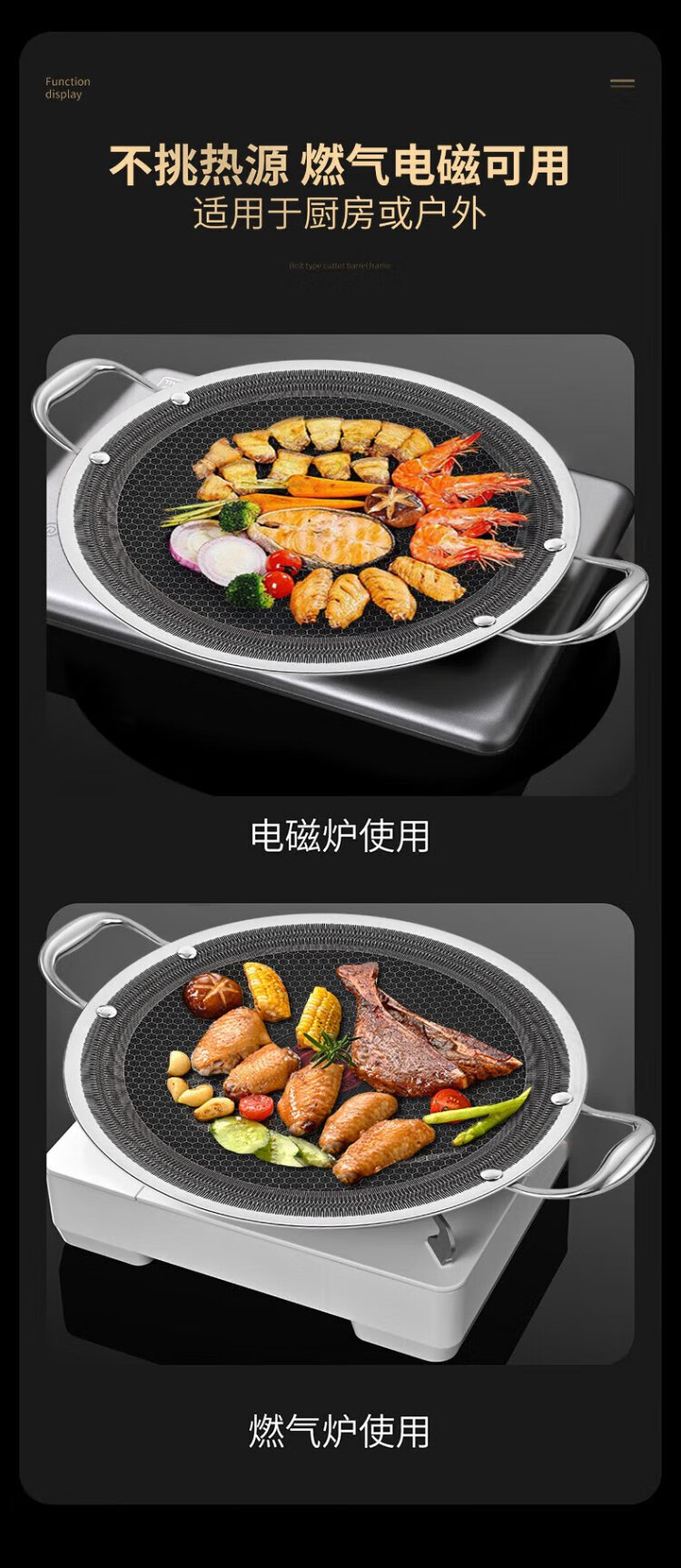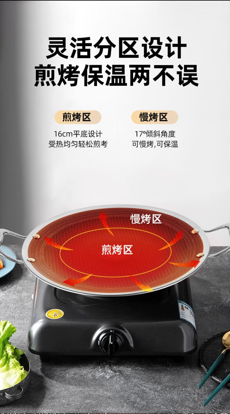 Sonorous 316 stainless steel Korean barbecue plate iron plate barbecue plate commercial outdoor baking pan camping picnic barbecue pot upgraded folding baking pan + four-piece set 34cm