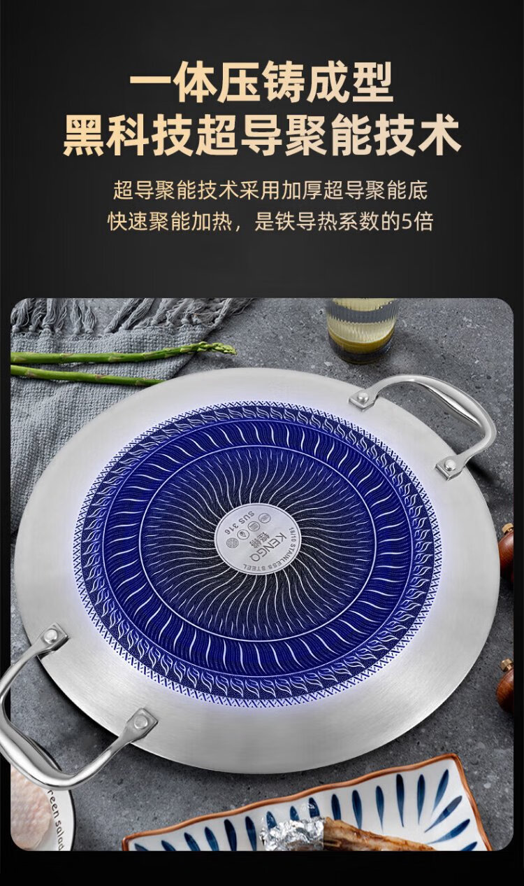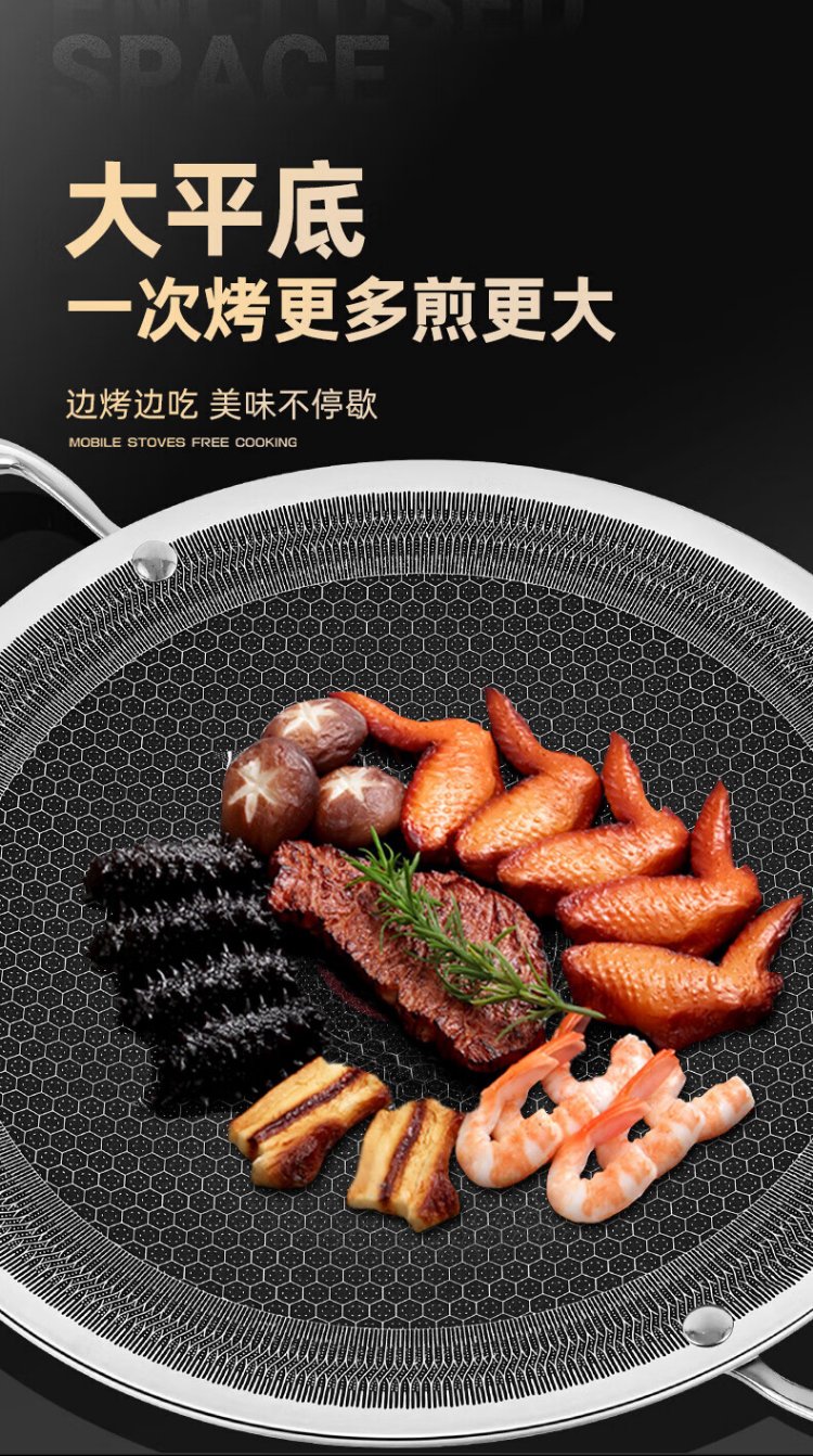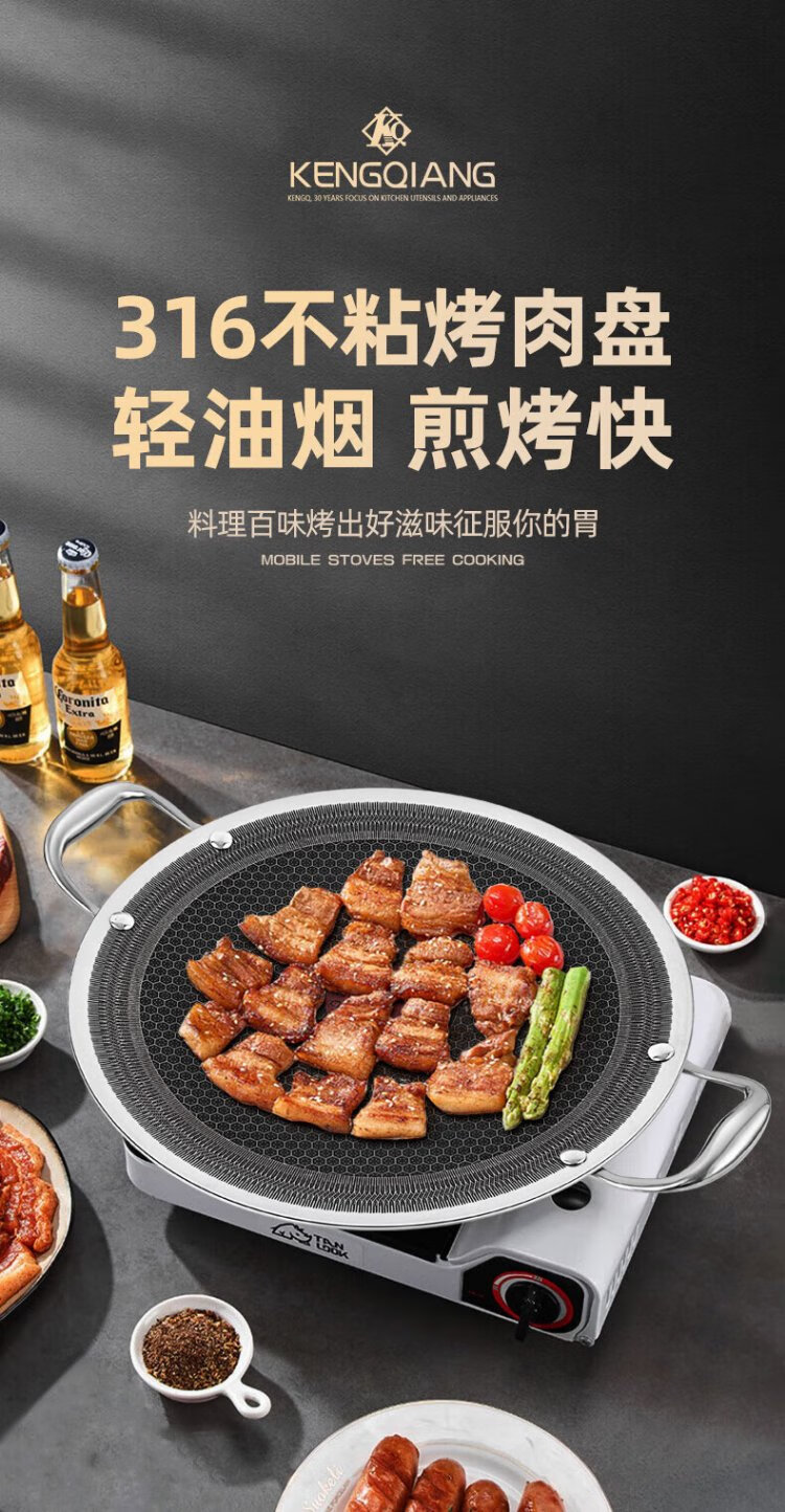 Sonorous 316 stainless steel Korean barbecue plate iron plate barbecue plate commercial outdoor baking pan camping picnic barbecue pot upgraded folding baking pan + four-piece set 34cm